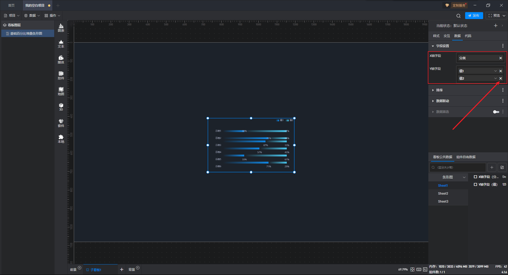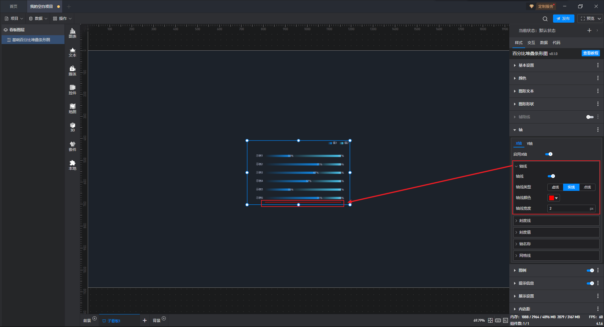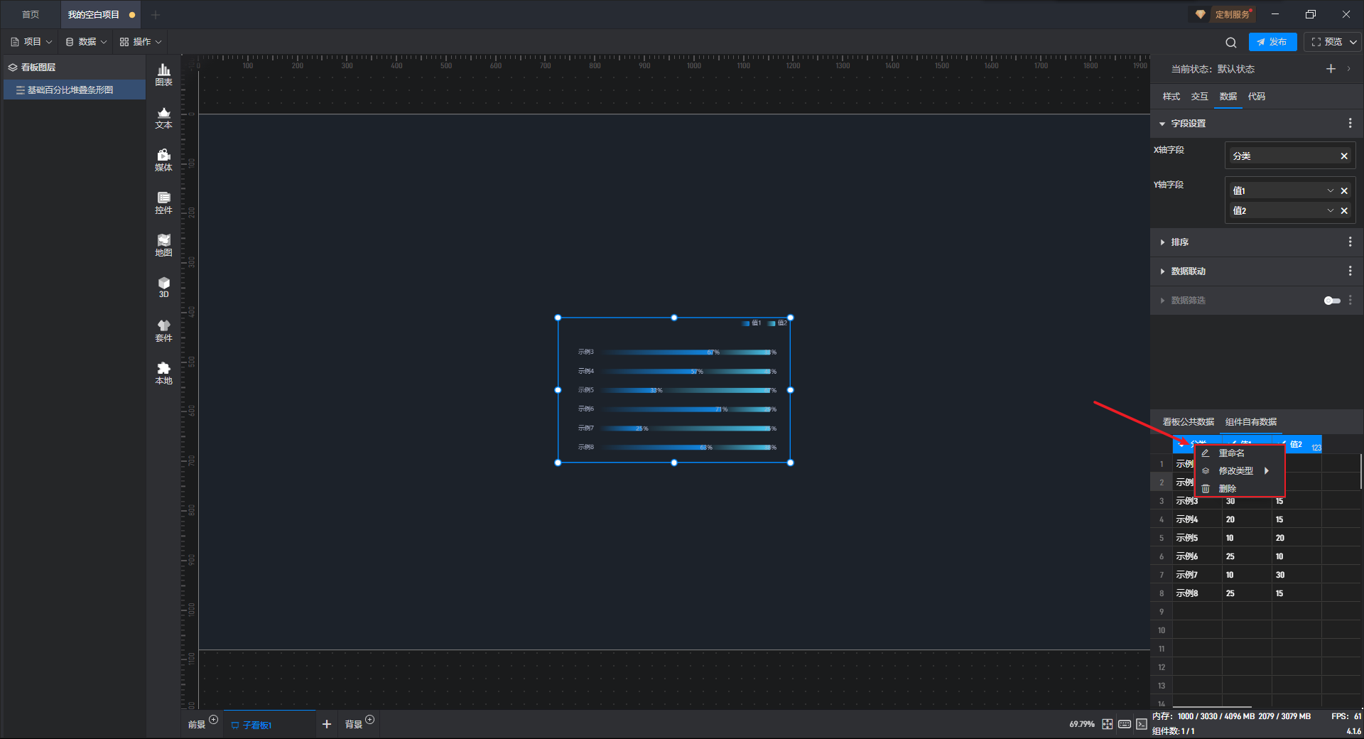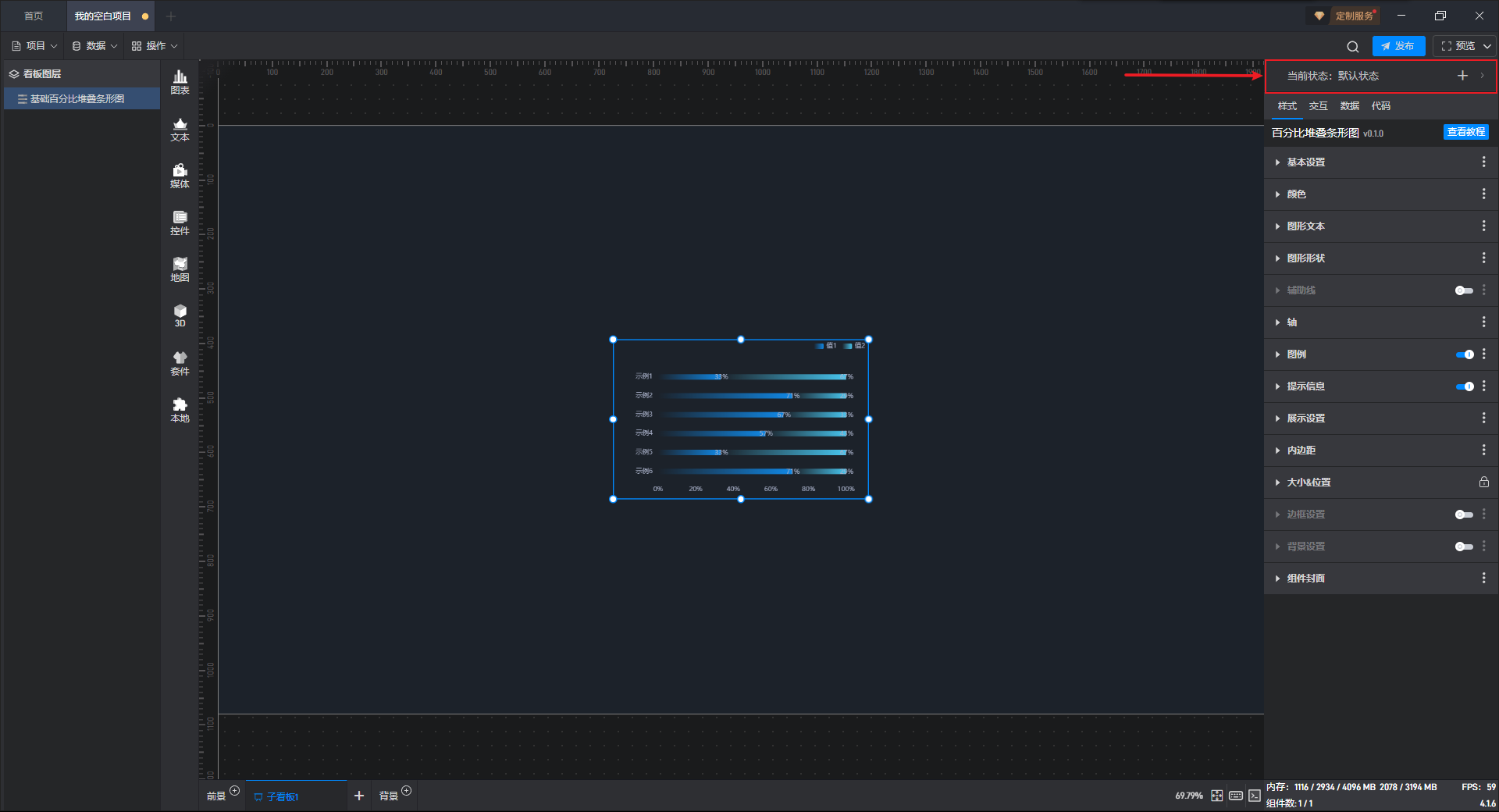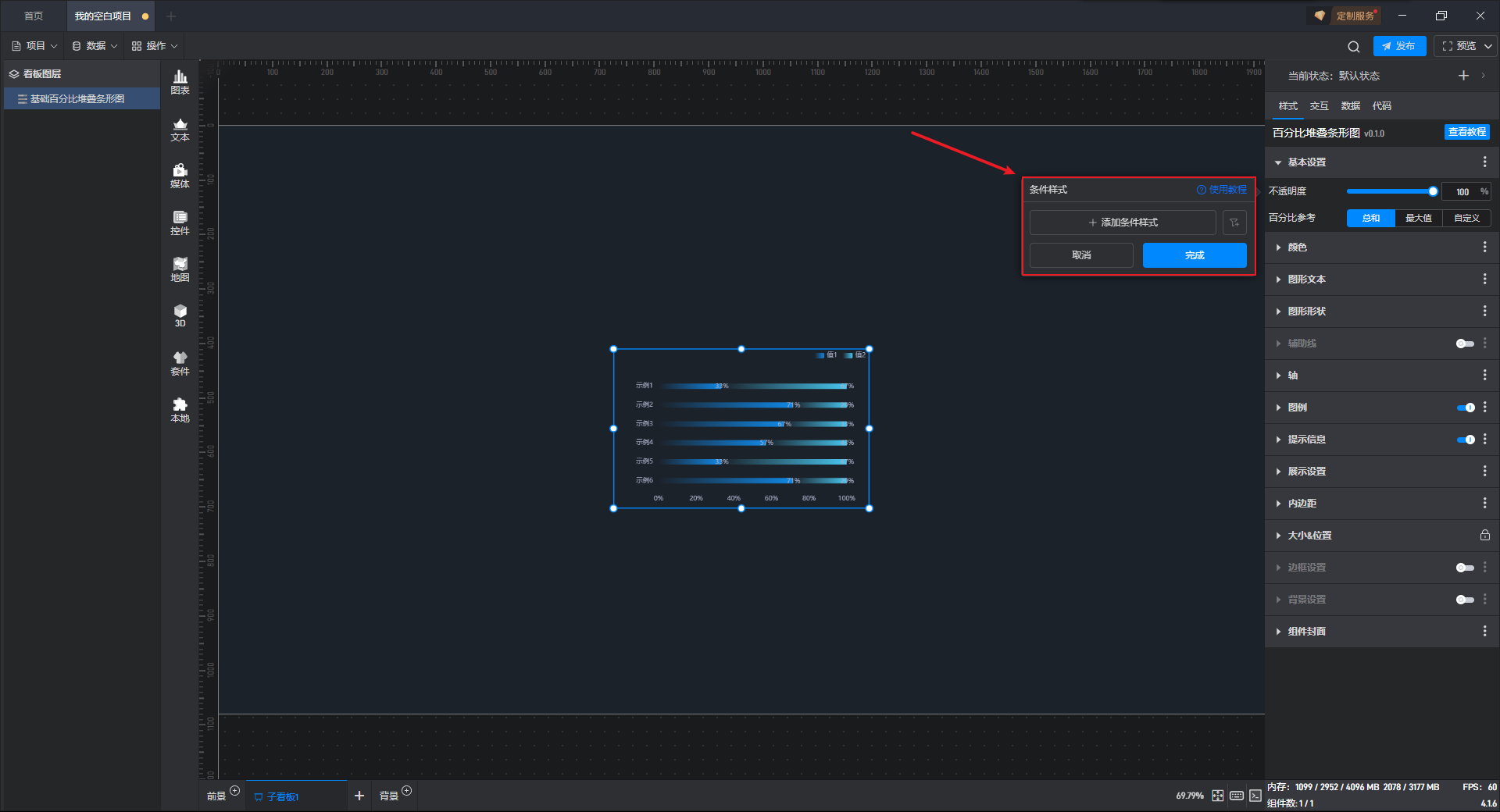 下面我们以基础百分比堆叠条形图为例,给大家介绍一下该组件的使用步骤: