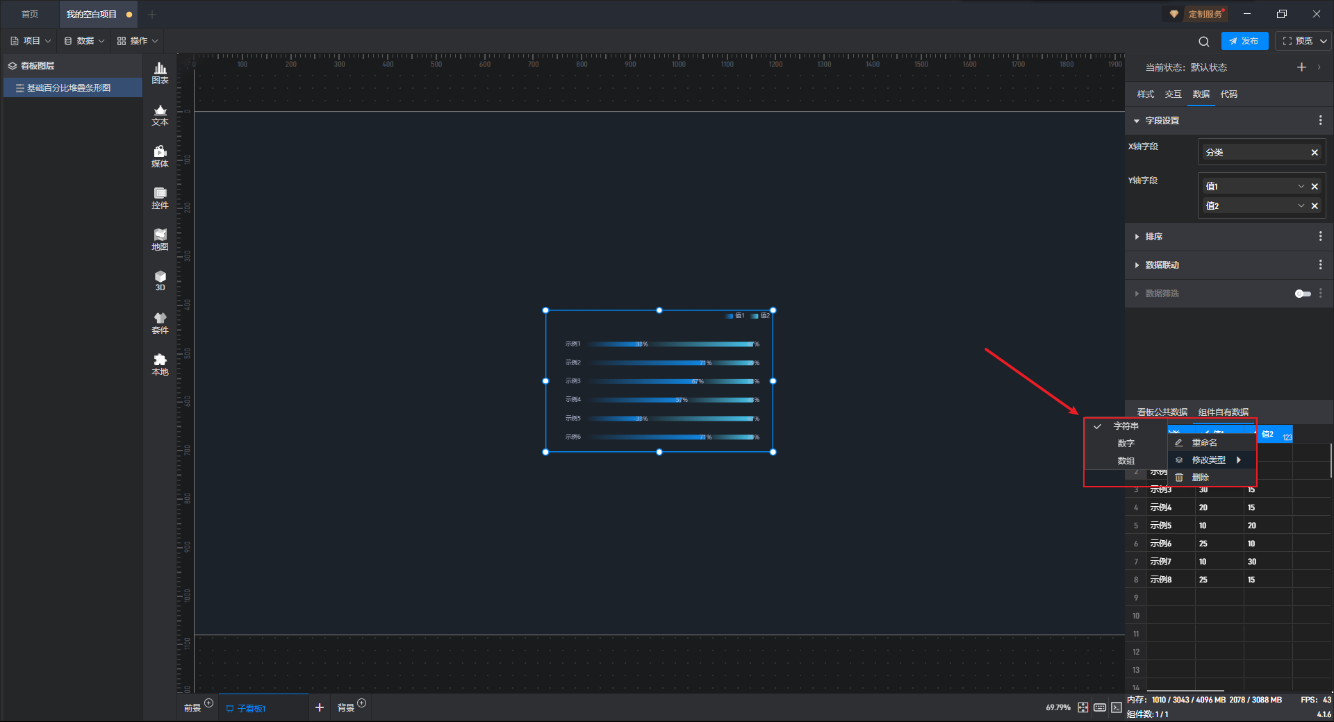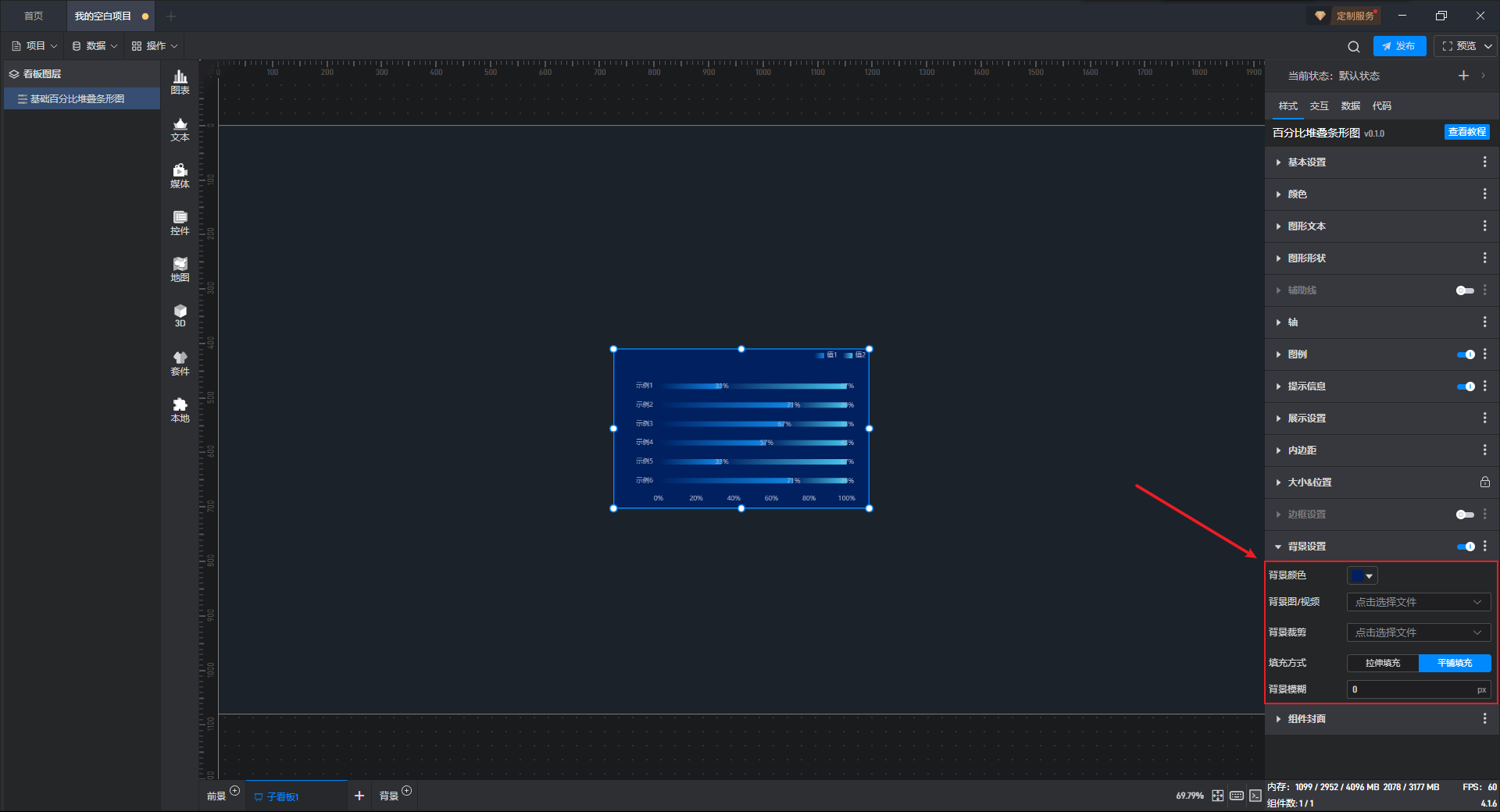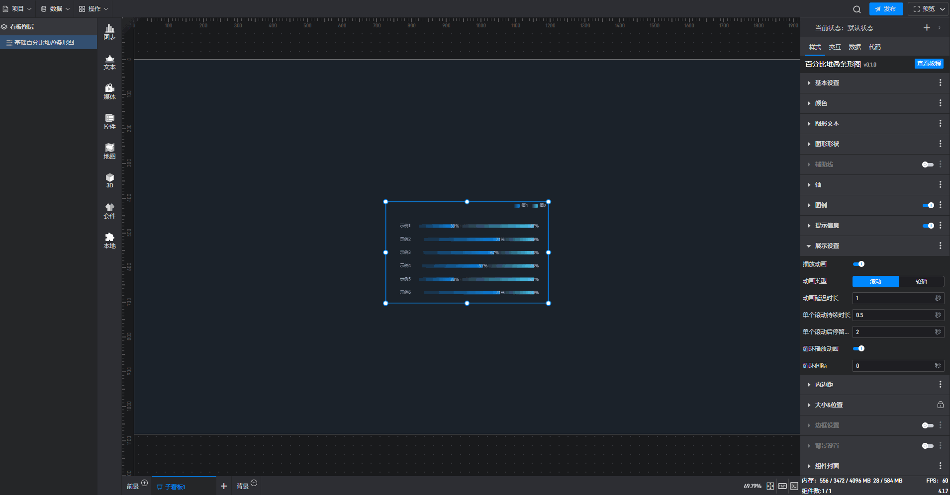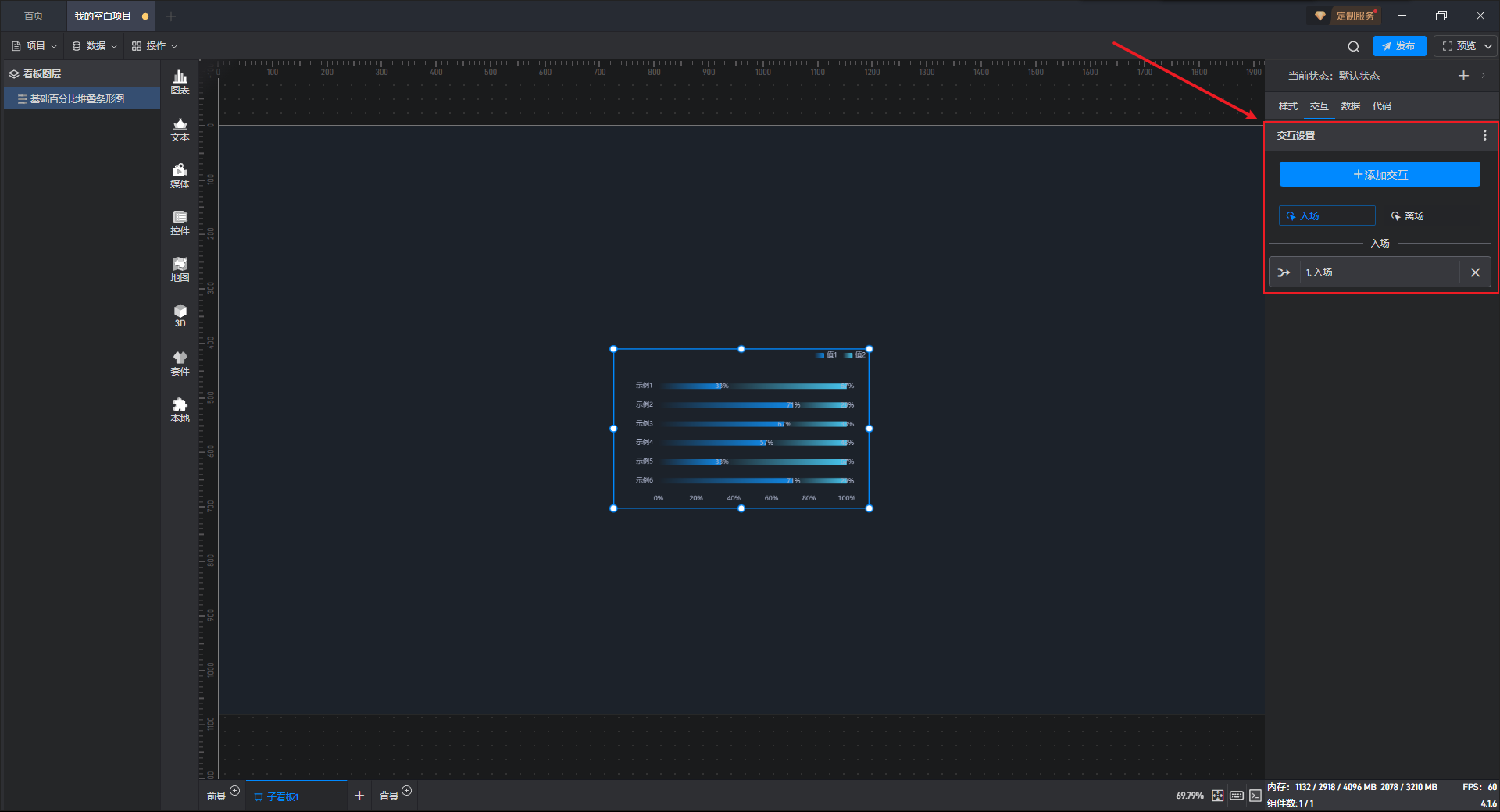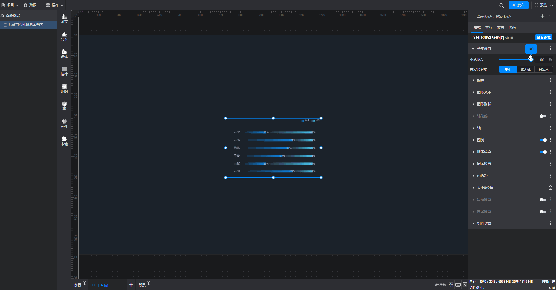 下面我们以基础百分比堆叠条形图为例,给大家介绍一下该组件的使用步骤: