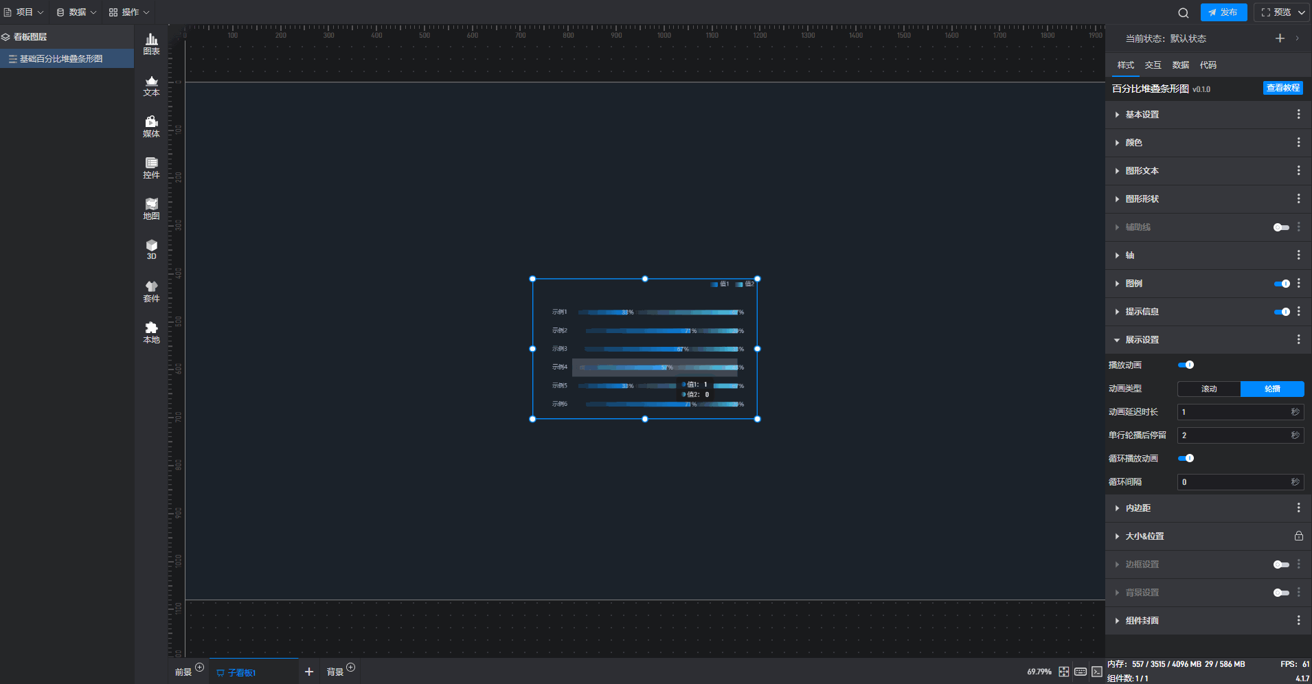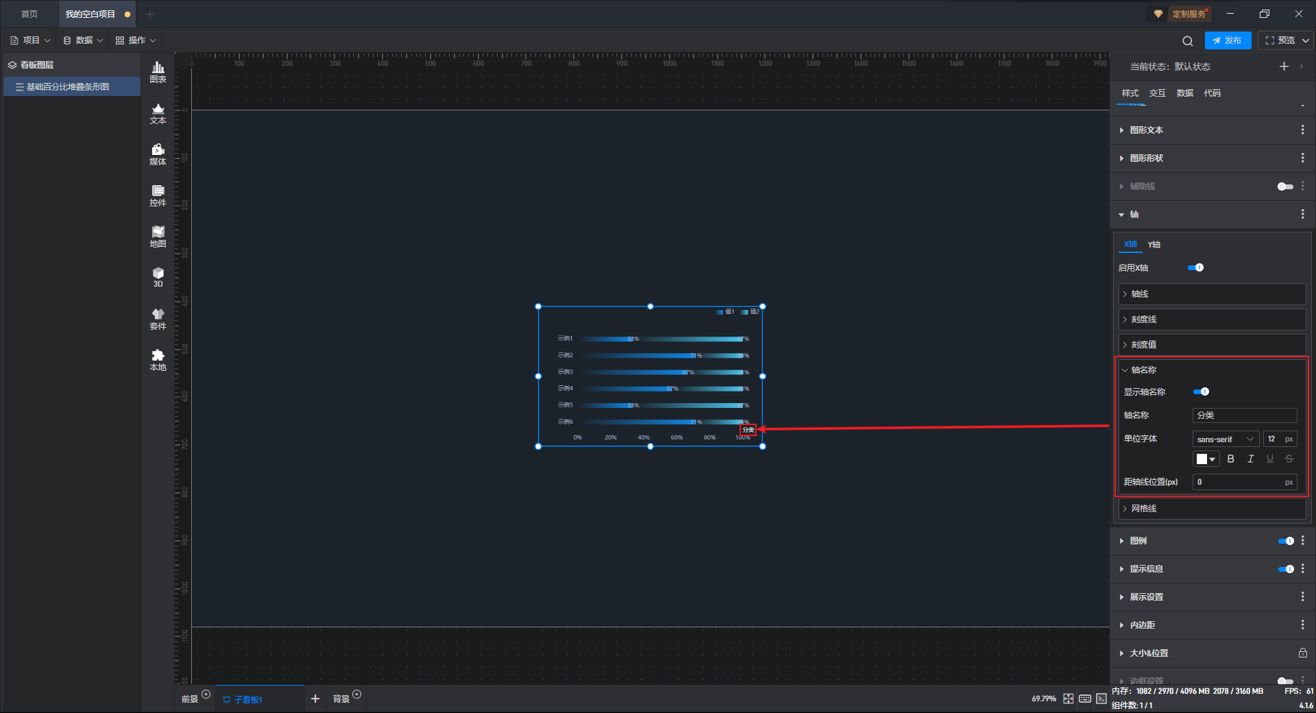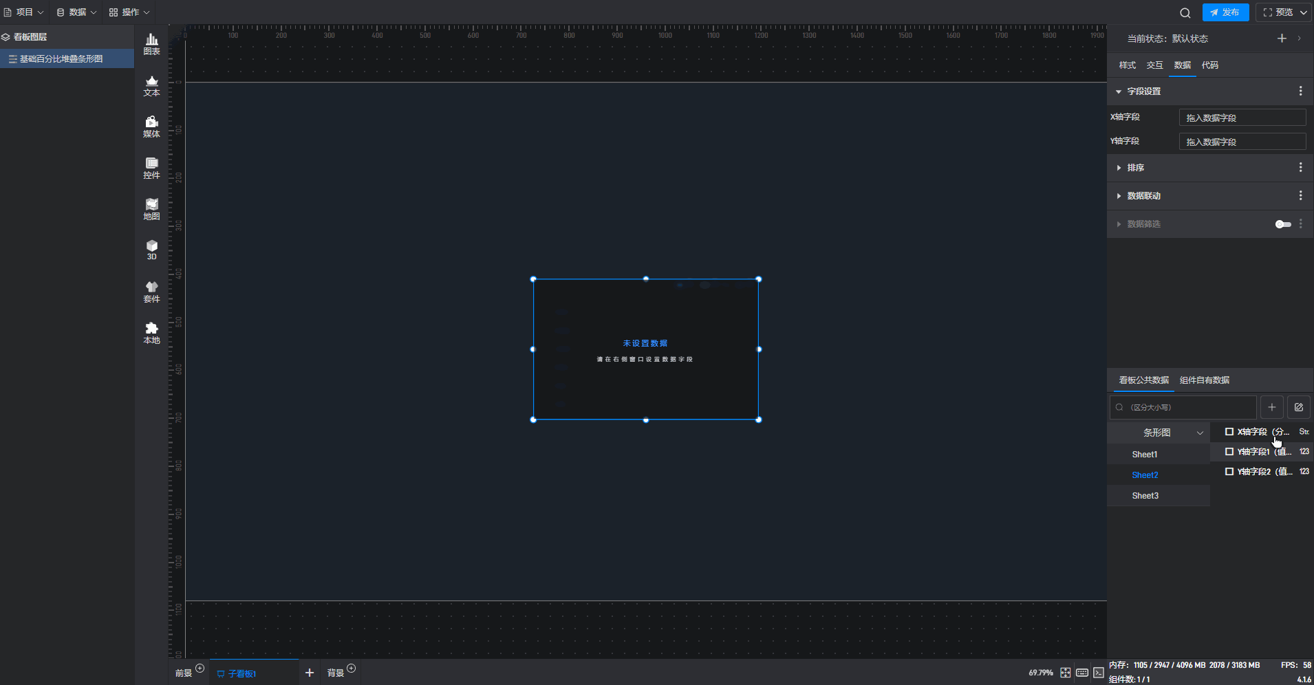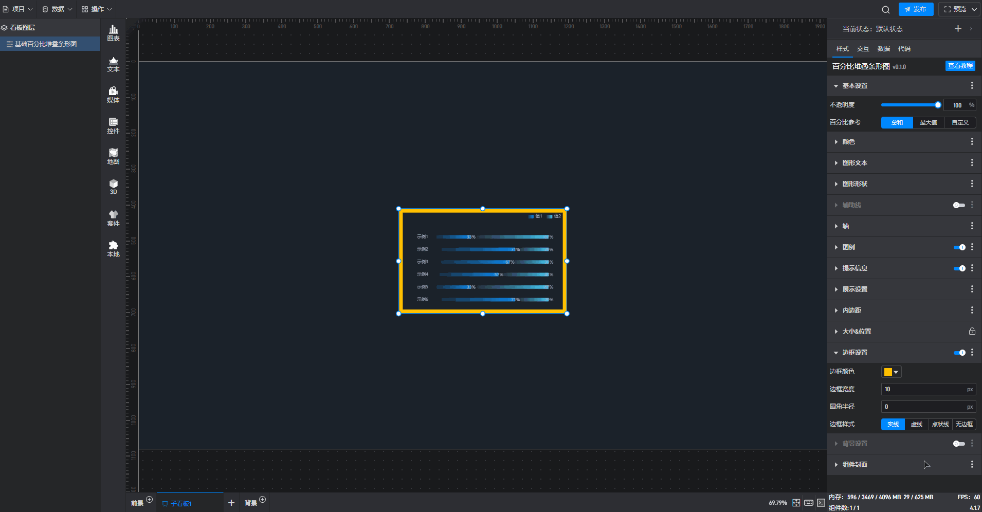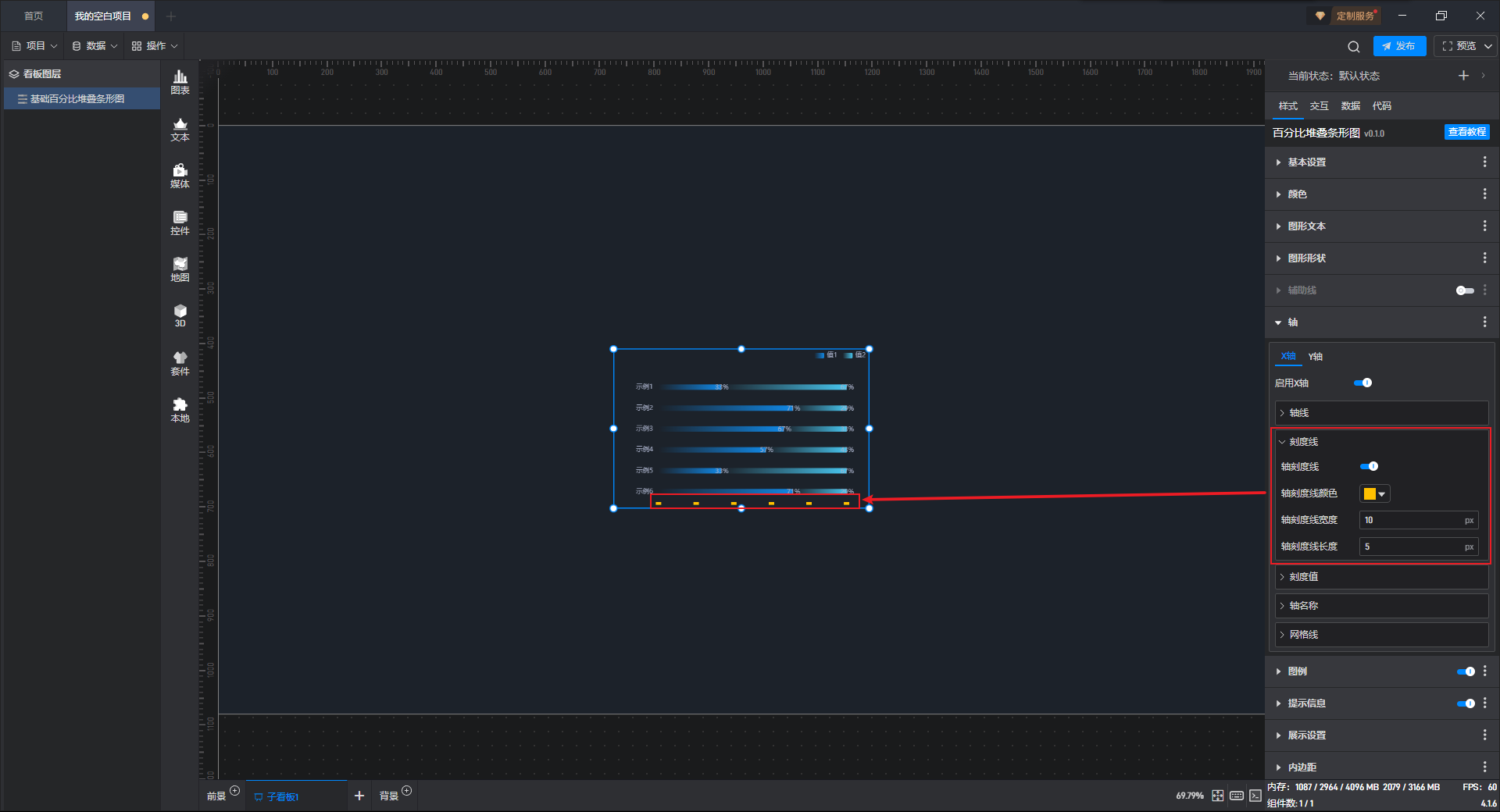 下面我们以基础百分比堆叠条形图为例,给大家介绍一下该组件的使用步骤:
