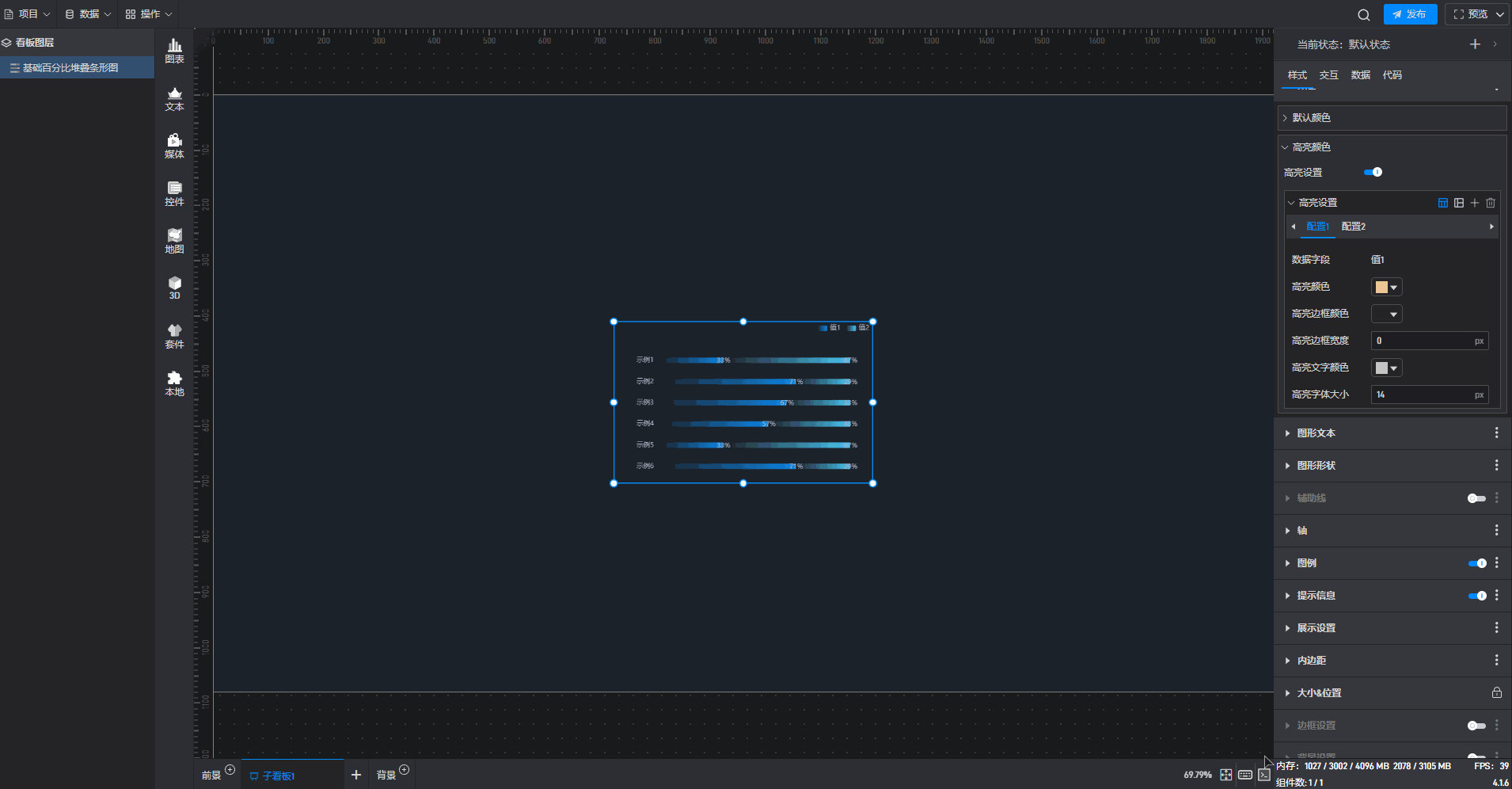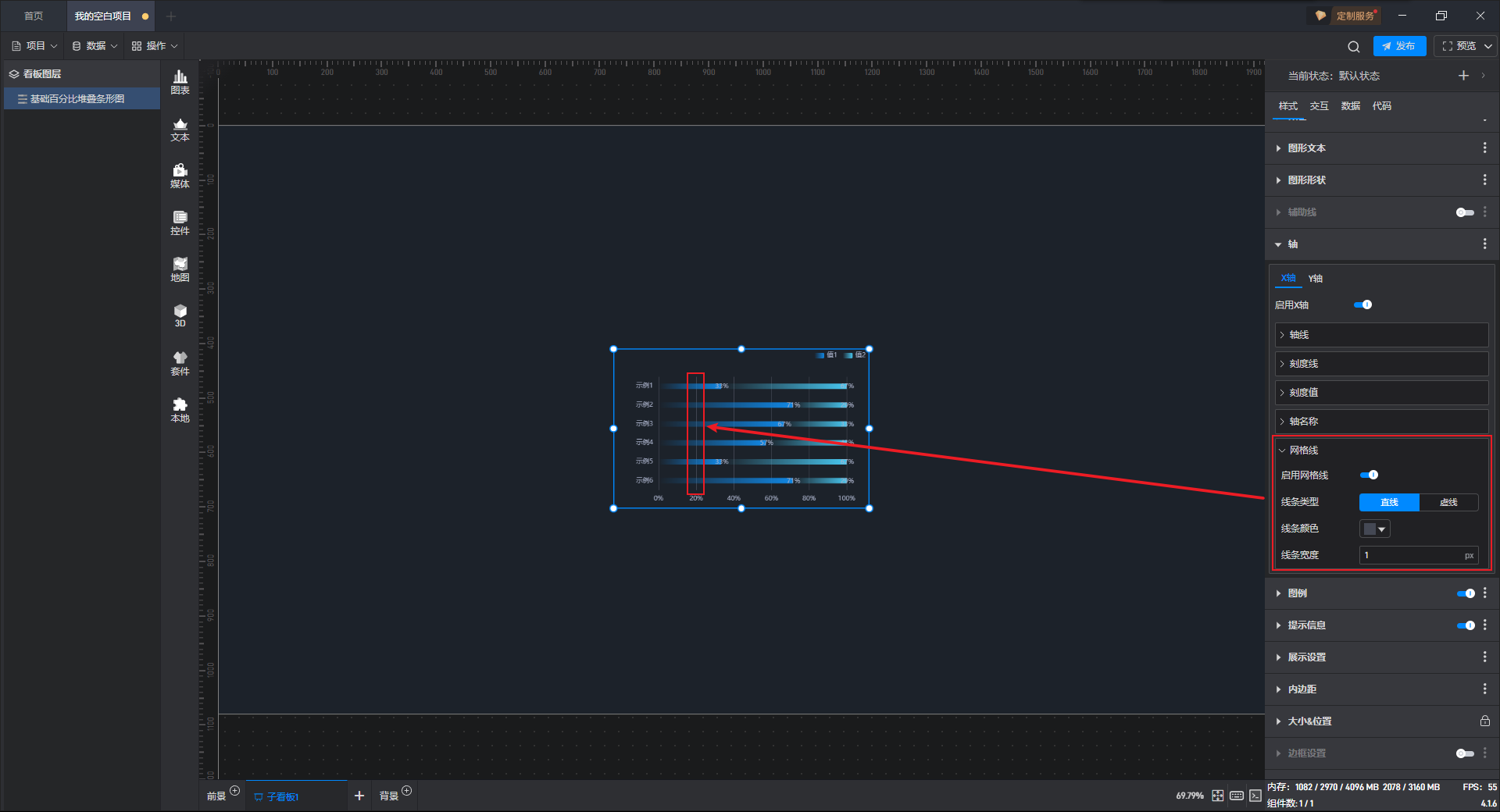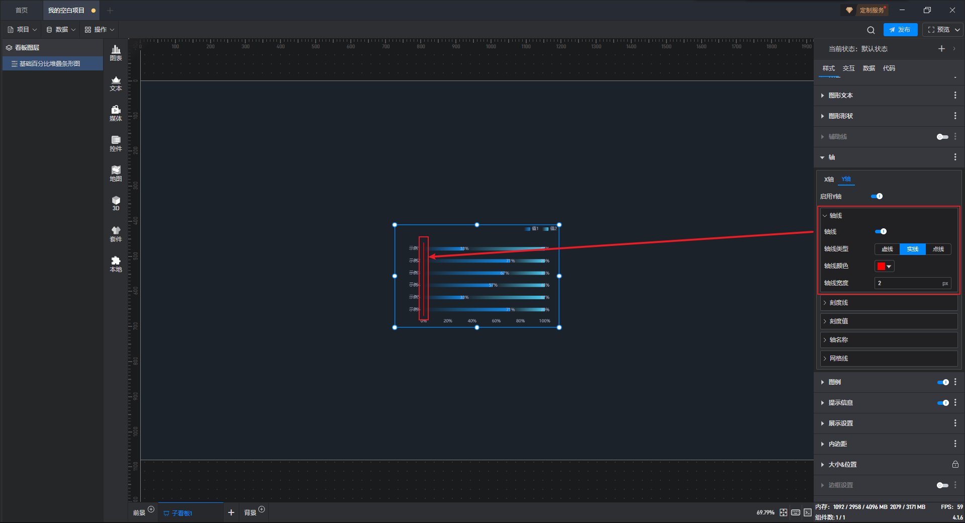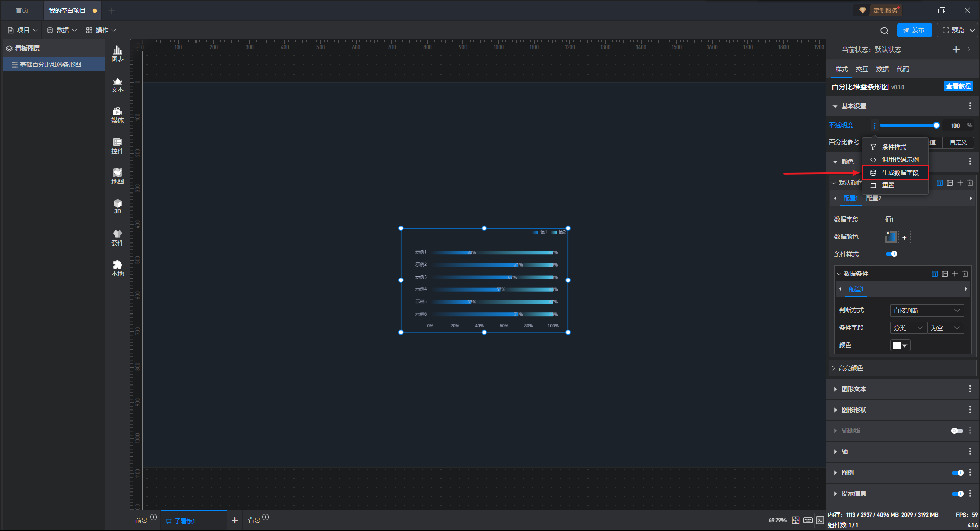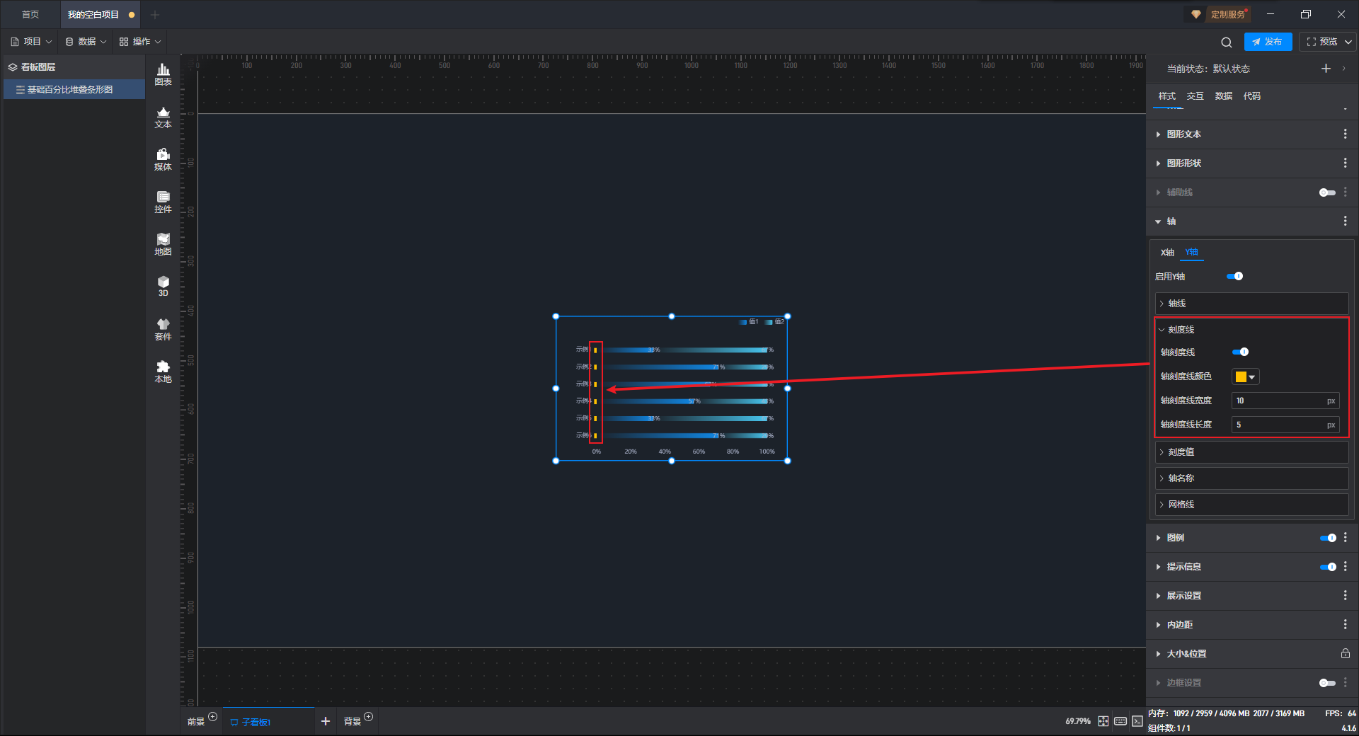 下面我们以基础百分比堆叠条形图为例,给大家介绍一下该组件的使用步骤: