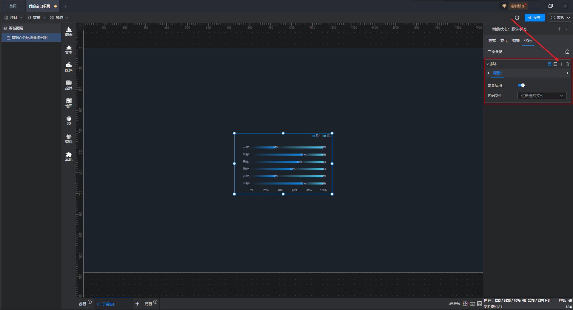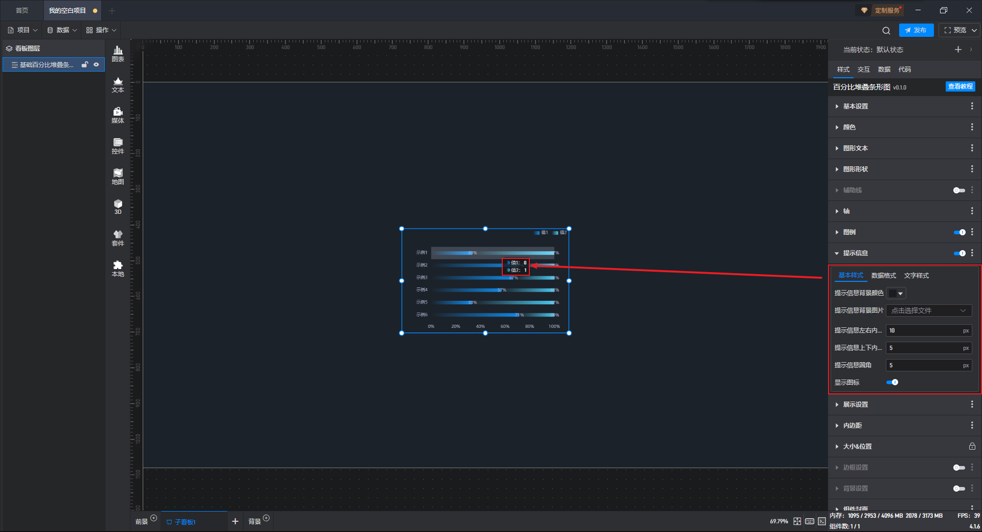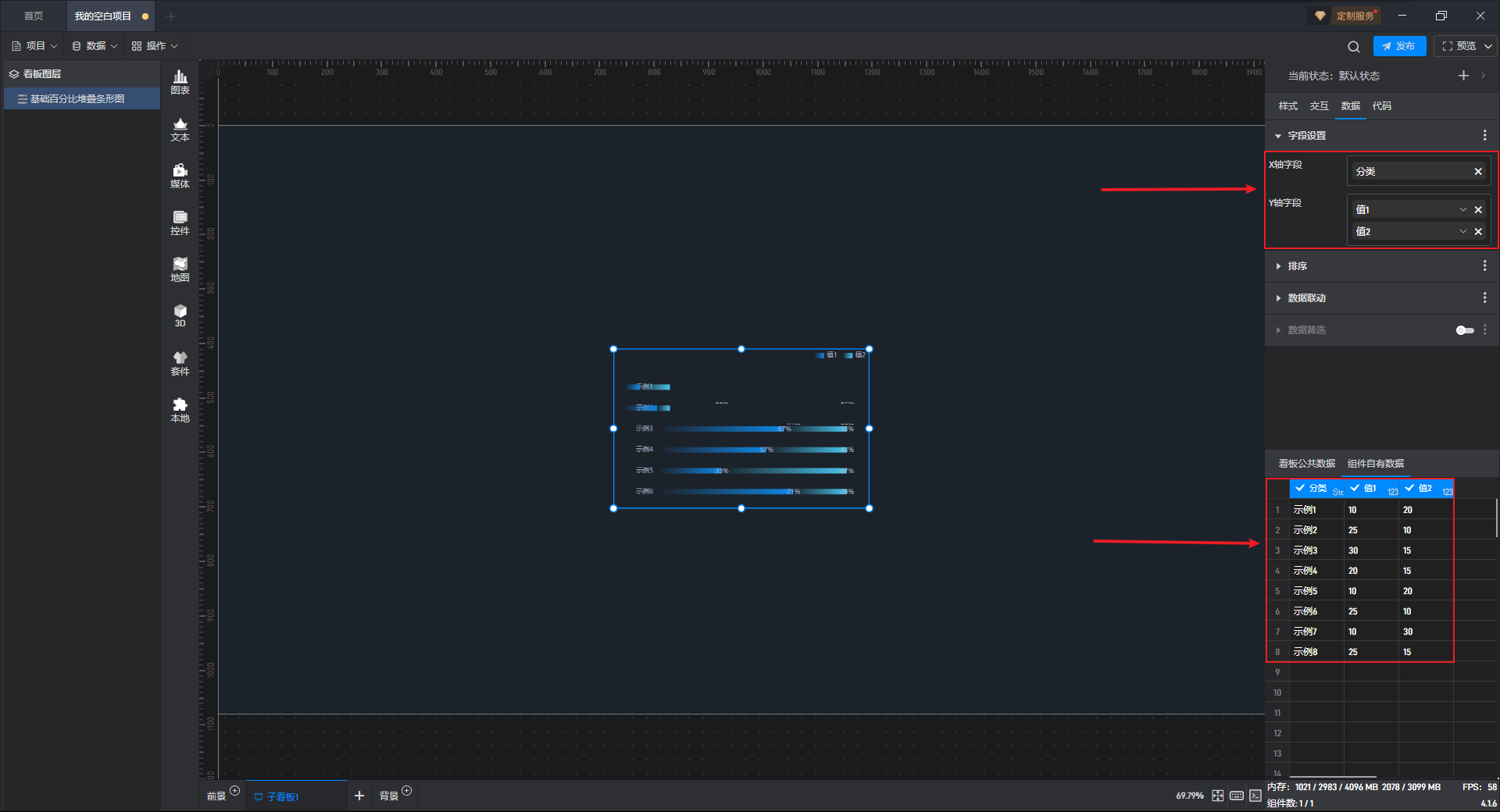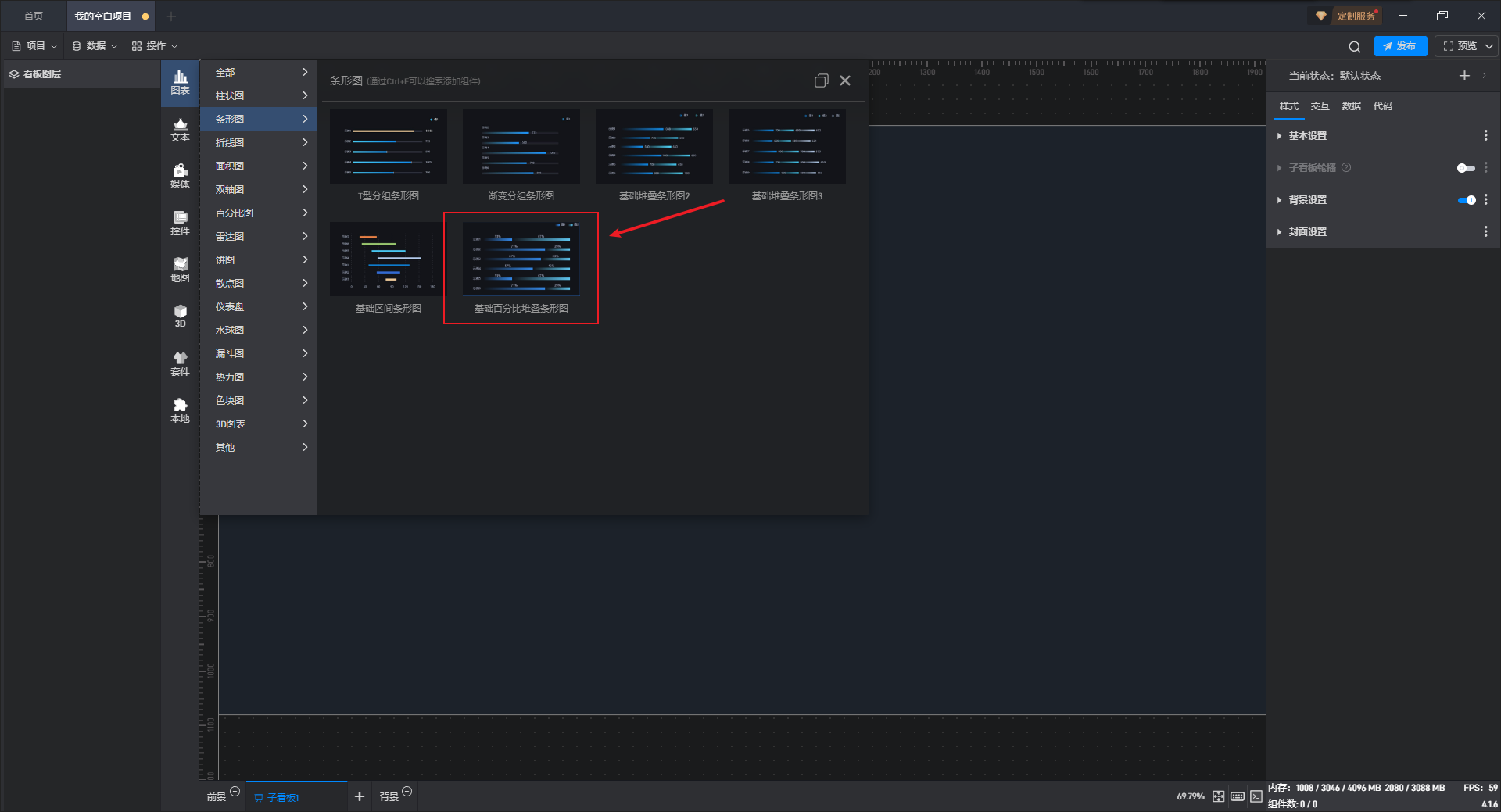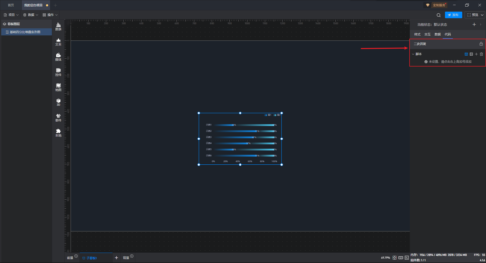 下面我们以基础百分比堆叠条形图为例,给大家介绍一下该组件的使用步骤: