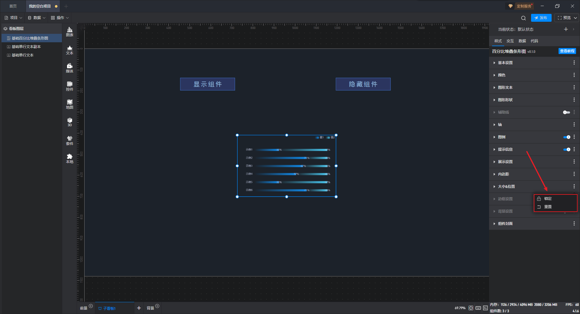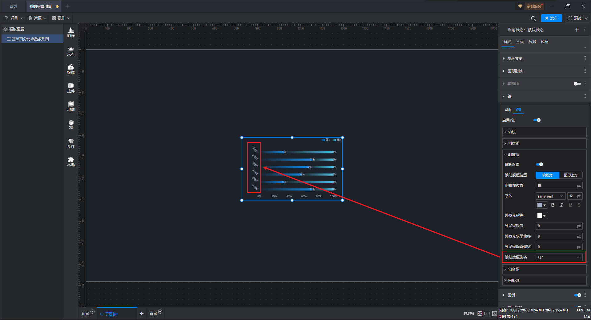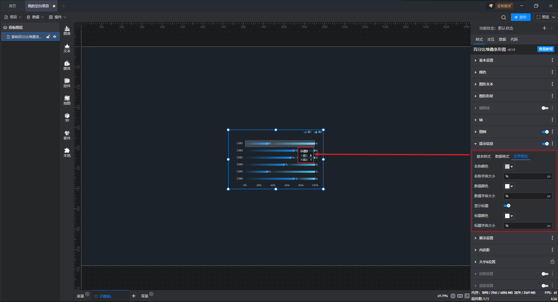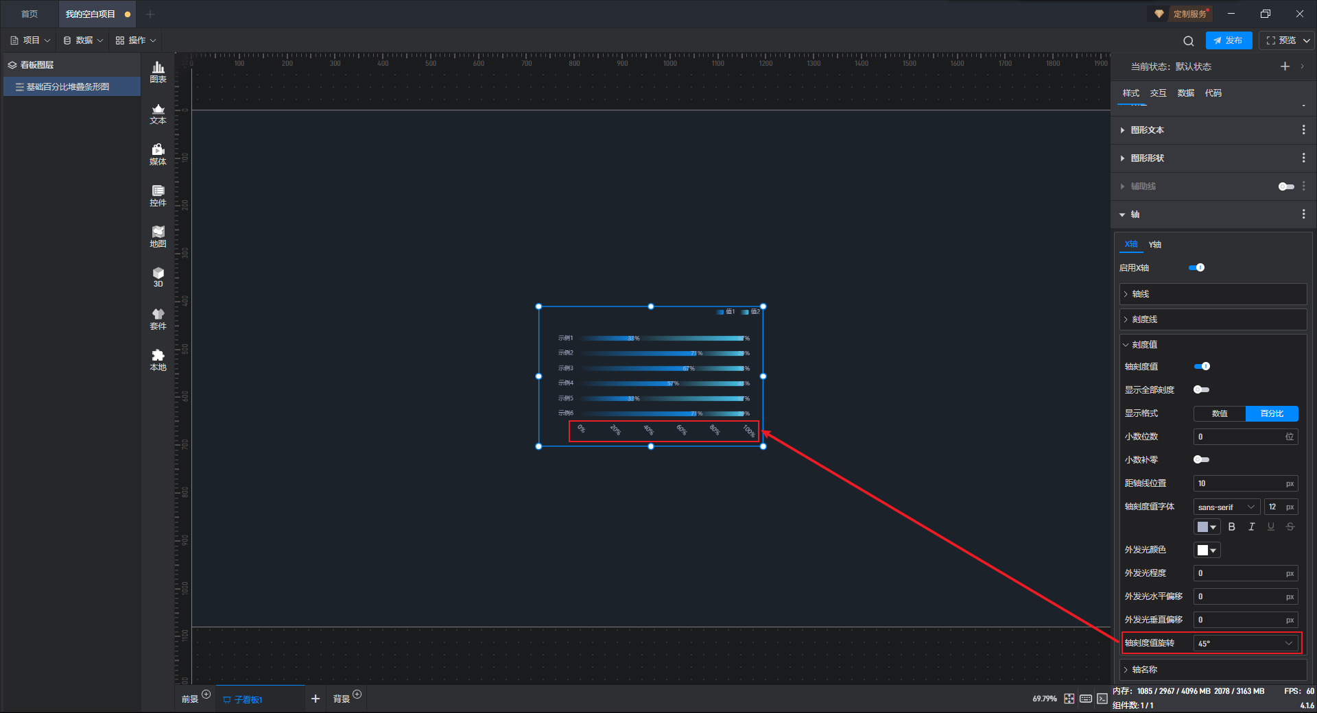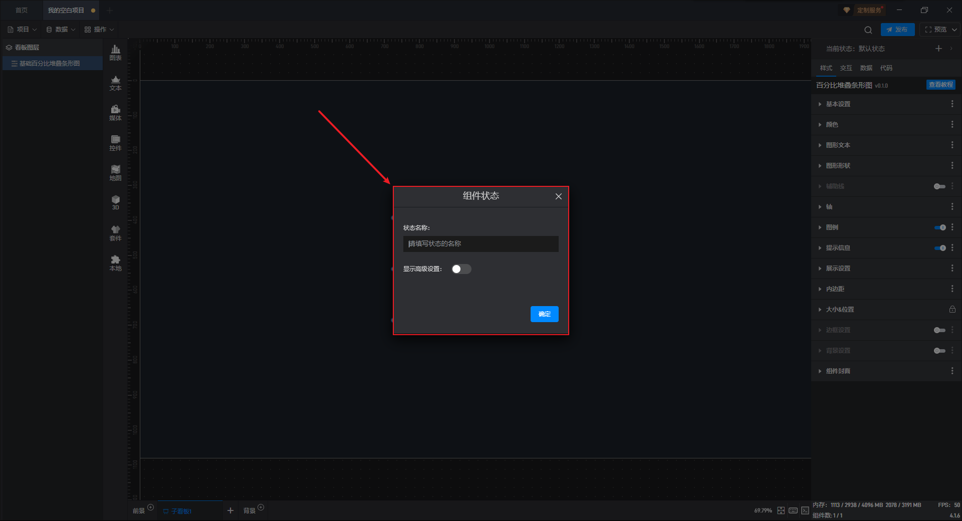 下面我们以基础百分比堆叠条形图为例,给大家介绍一下该组件的使用步骤: