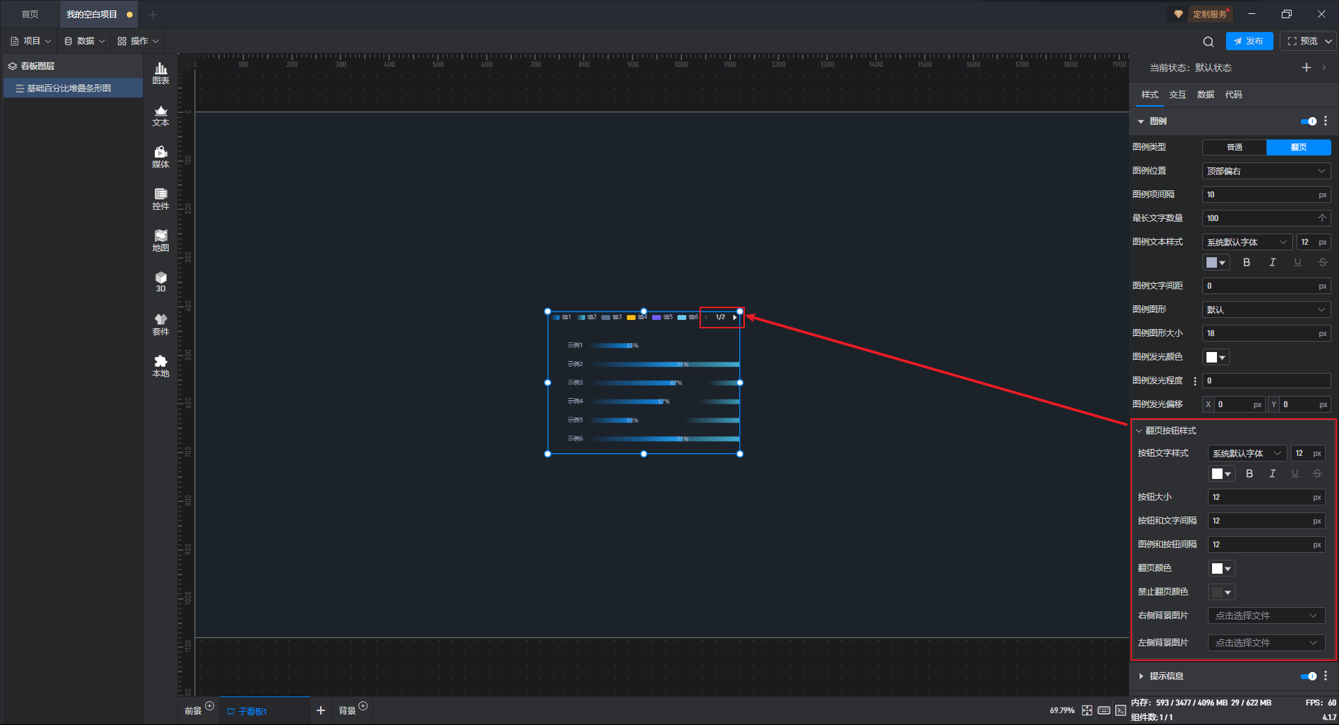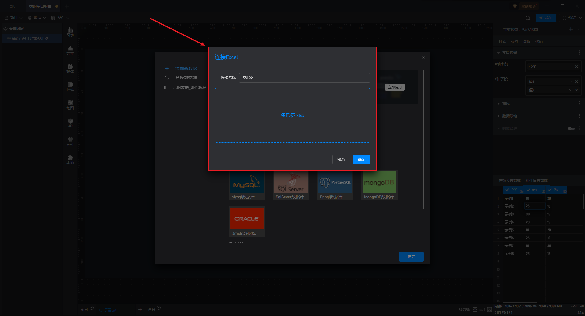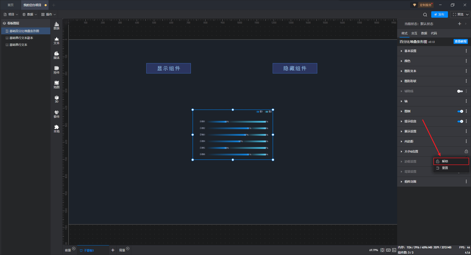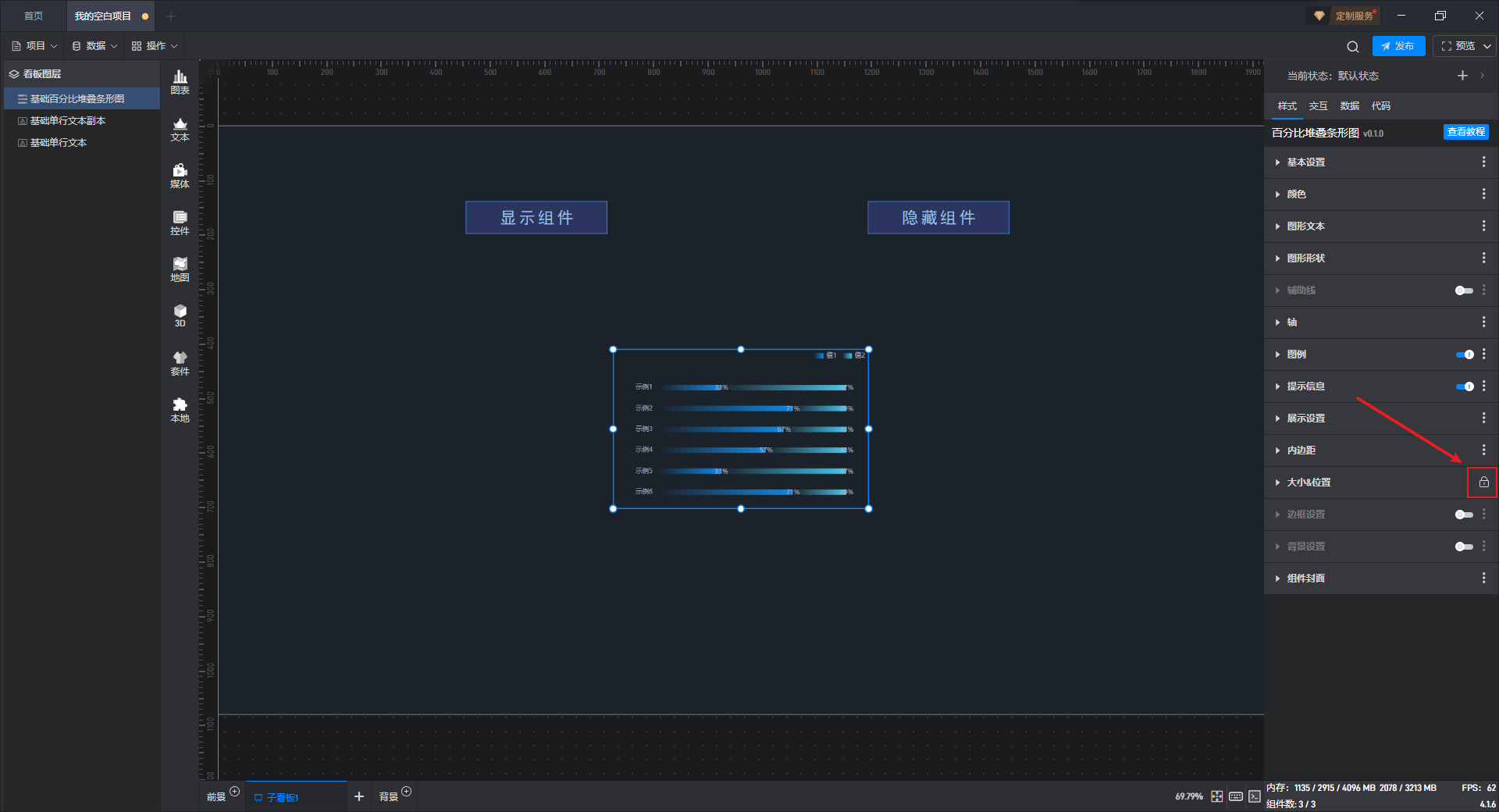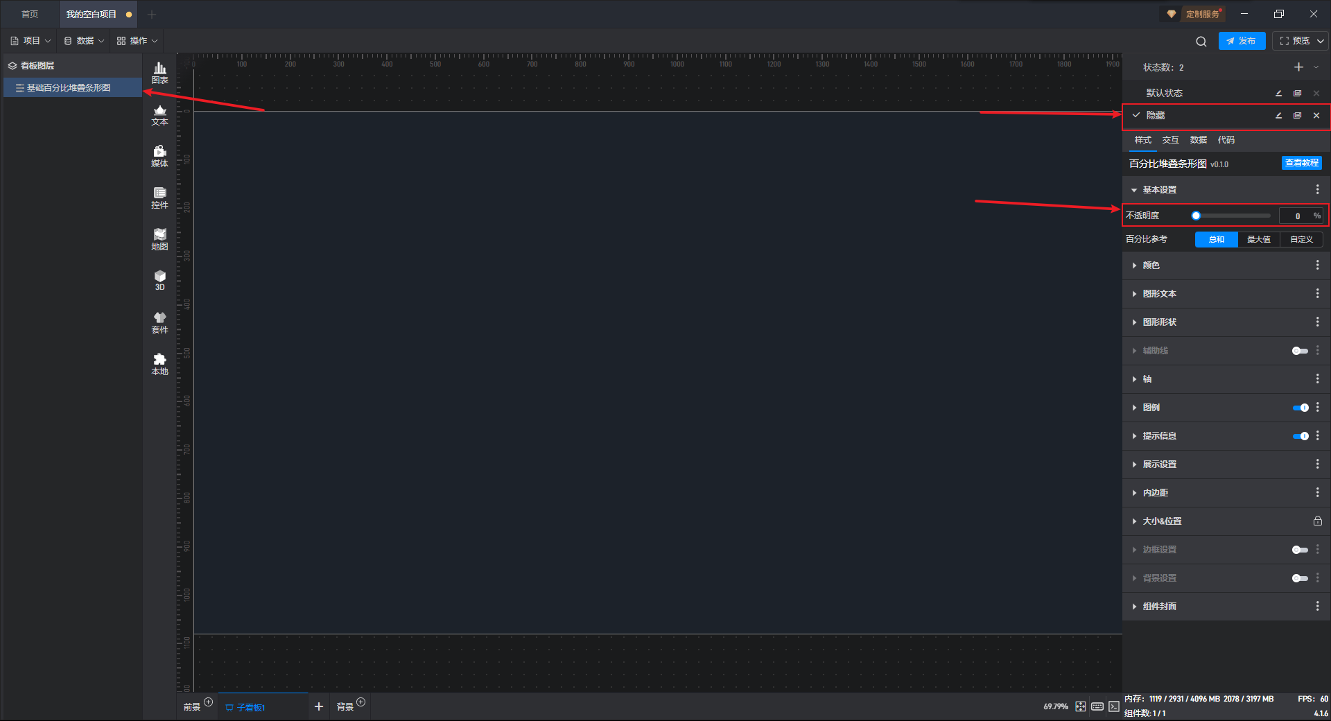 下面我们以基础百分比堆叠条形图为例,给大家介绍一下该组件的使用步骤: