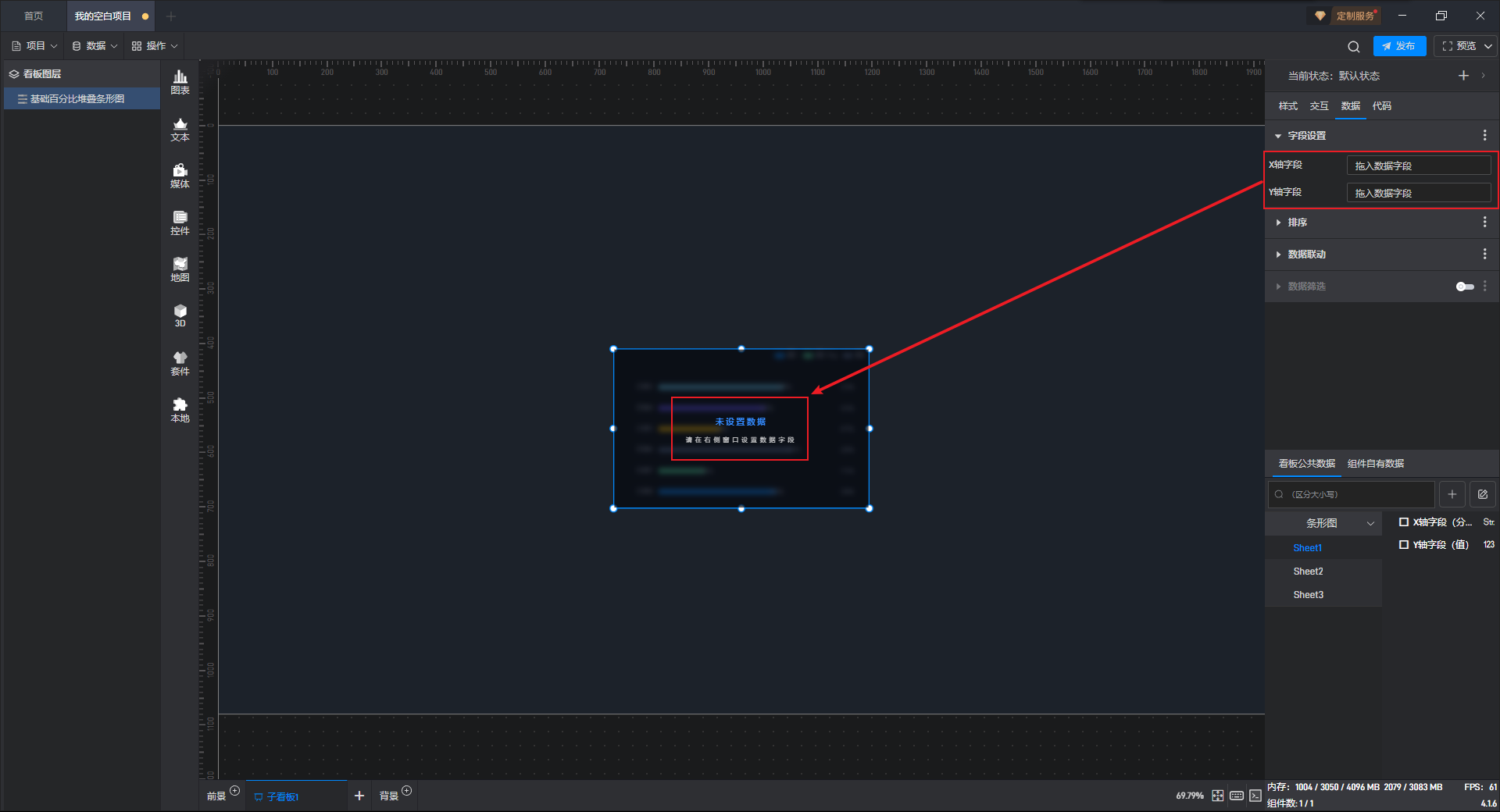 点击后,该设置项就会出现“请设置数据字段”的提示。