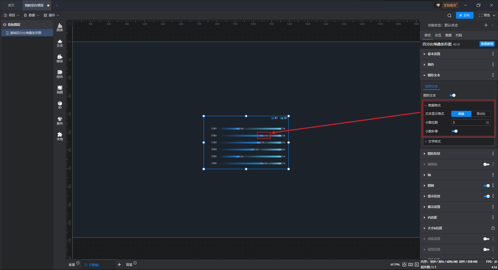 基础百分比堆叠条形图 开启 2 位小数补零,如下图所示: