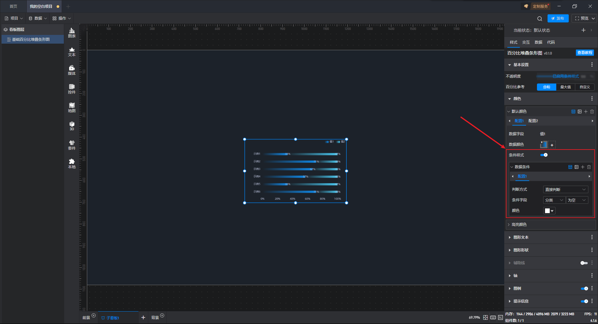 点击选中组件,开启“条件样式”按钮,就可以进行条件样式的设置。