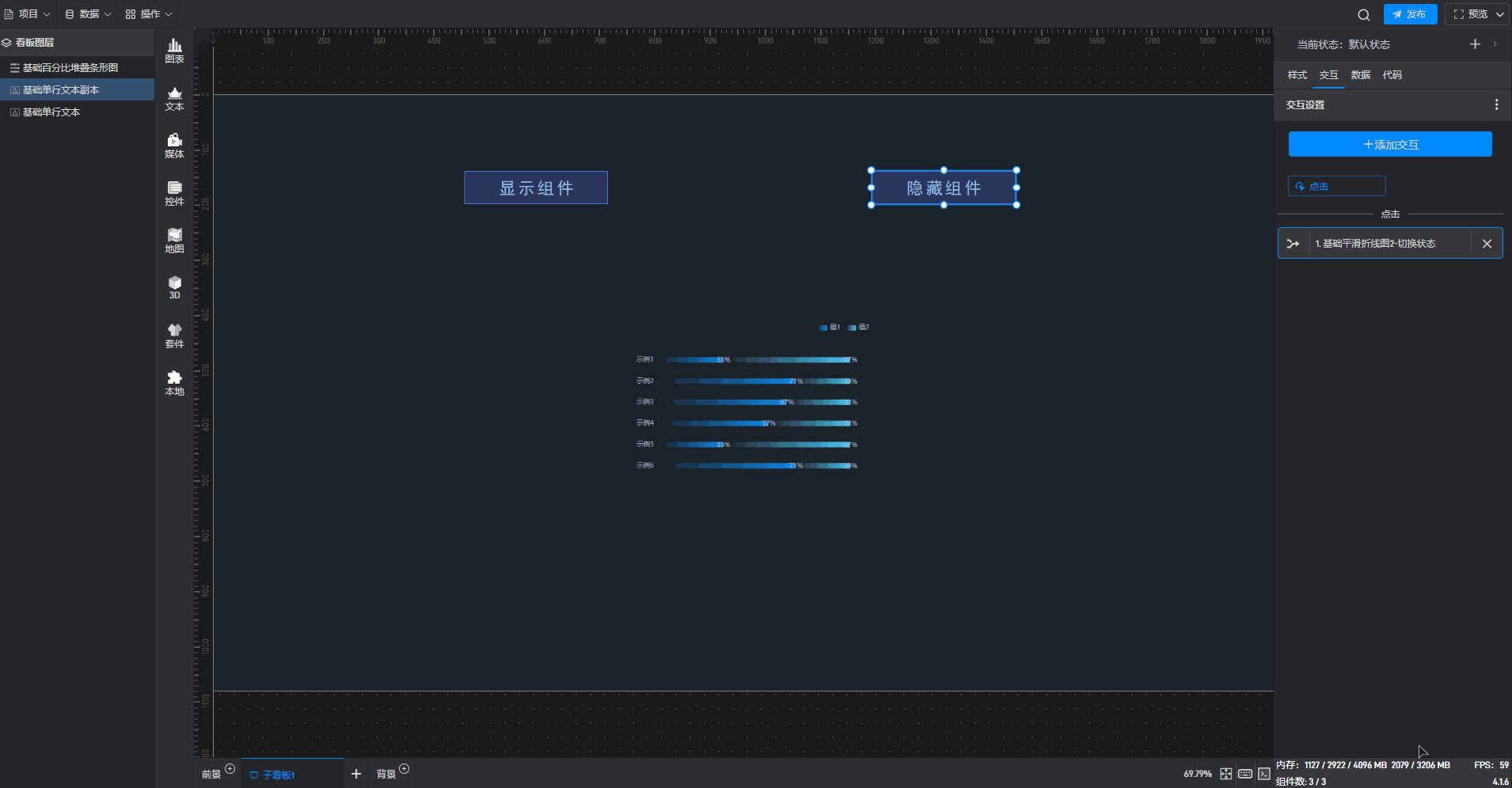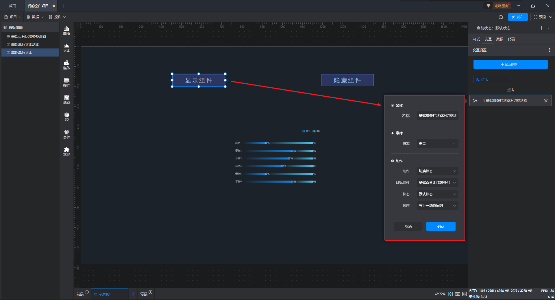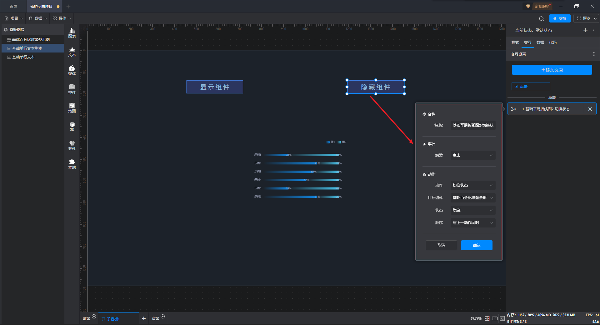 给隐藏按钮组件添加一个交互,点击后切换柱形图组件到隐藏状态。