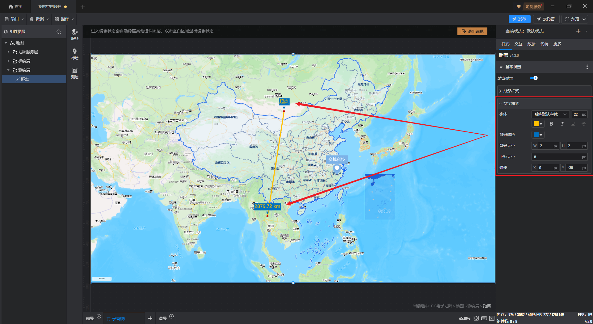 距离** 文字样式**,如下图所示: