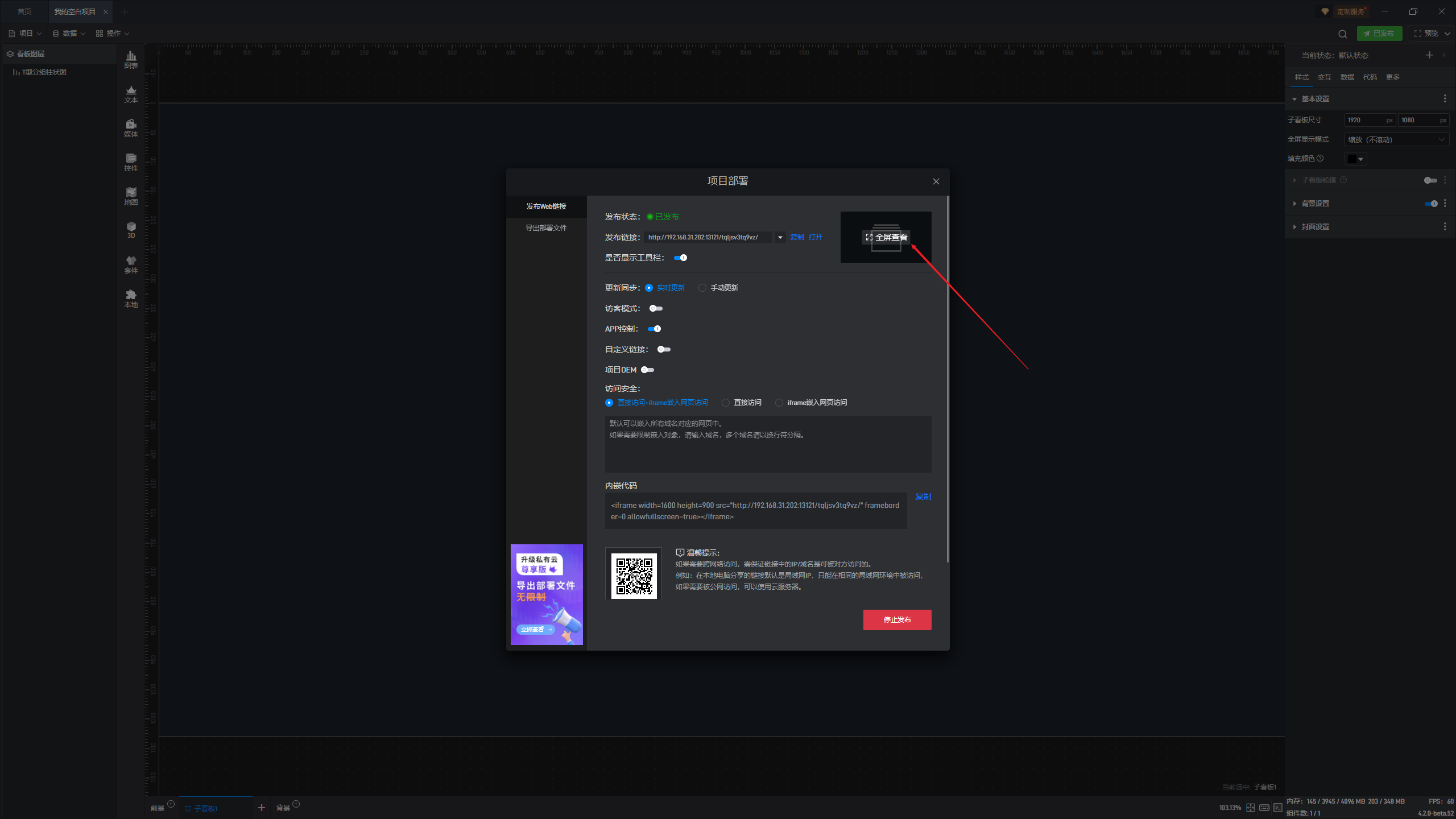 项目发布完成后,可以直接点击“全屏查看”。