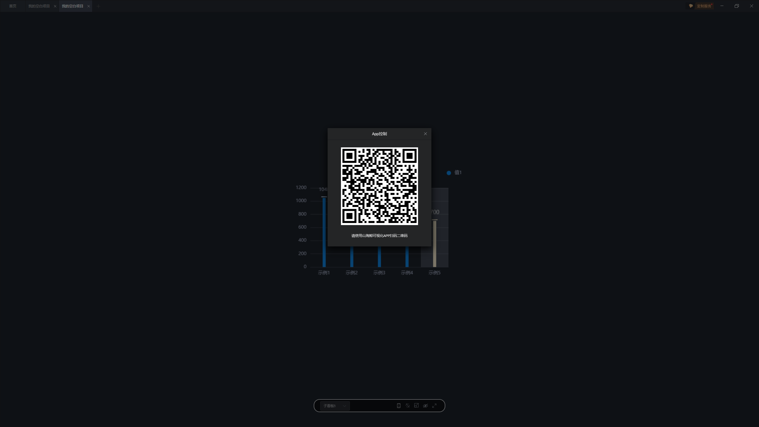 项目发布完成后,在手机/平板中打开山海鲸 App,然后点击扫一扫,扫描上面的二维码。
