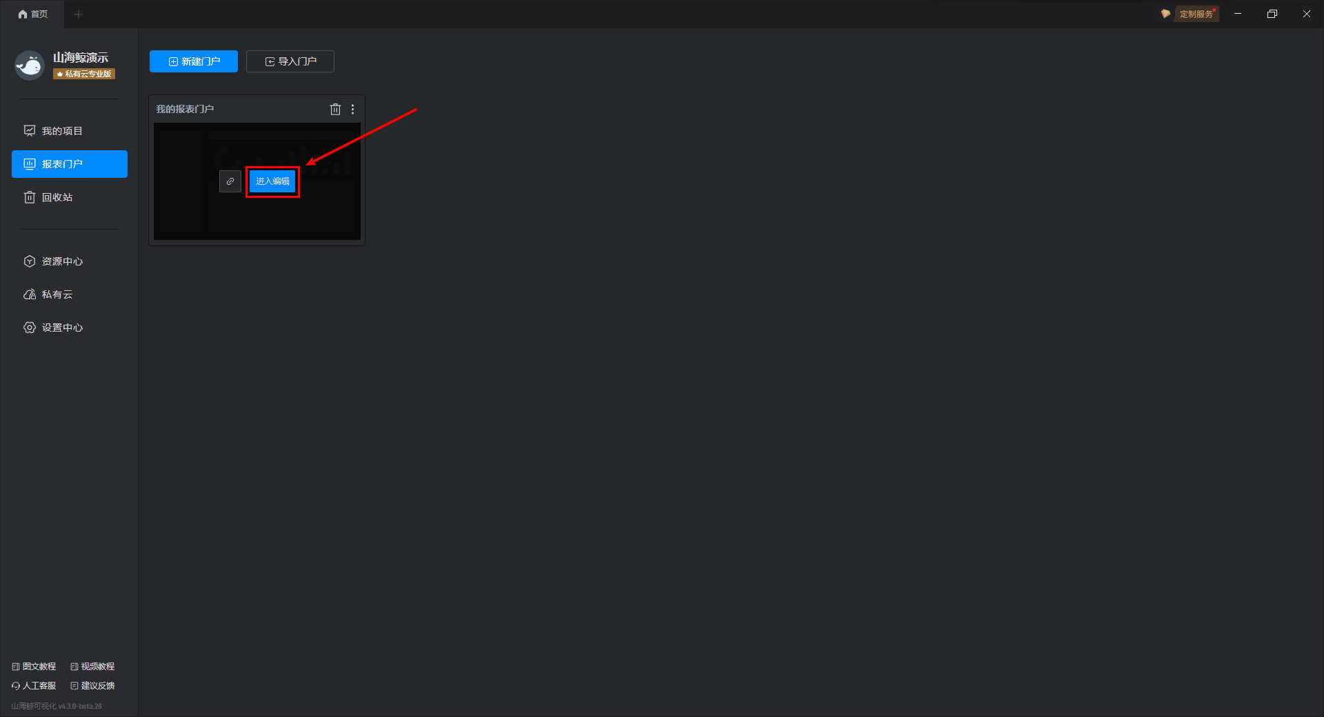 点击“编辑”按钮,将直接进入报表门户的编辑界面。