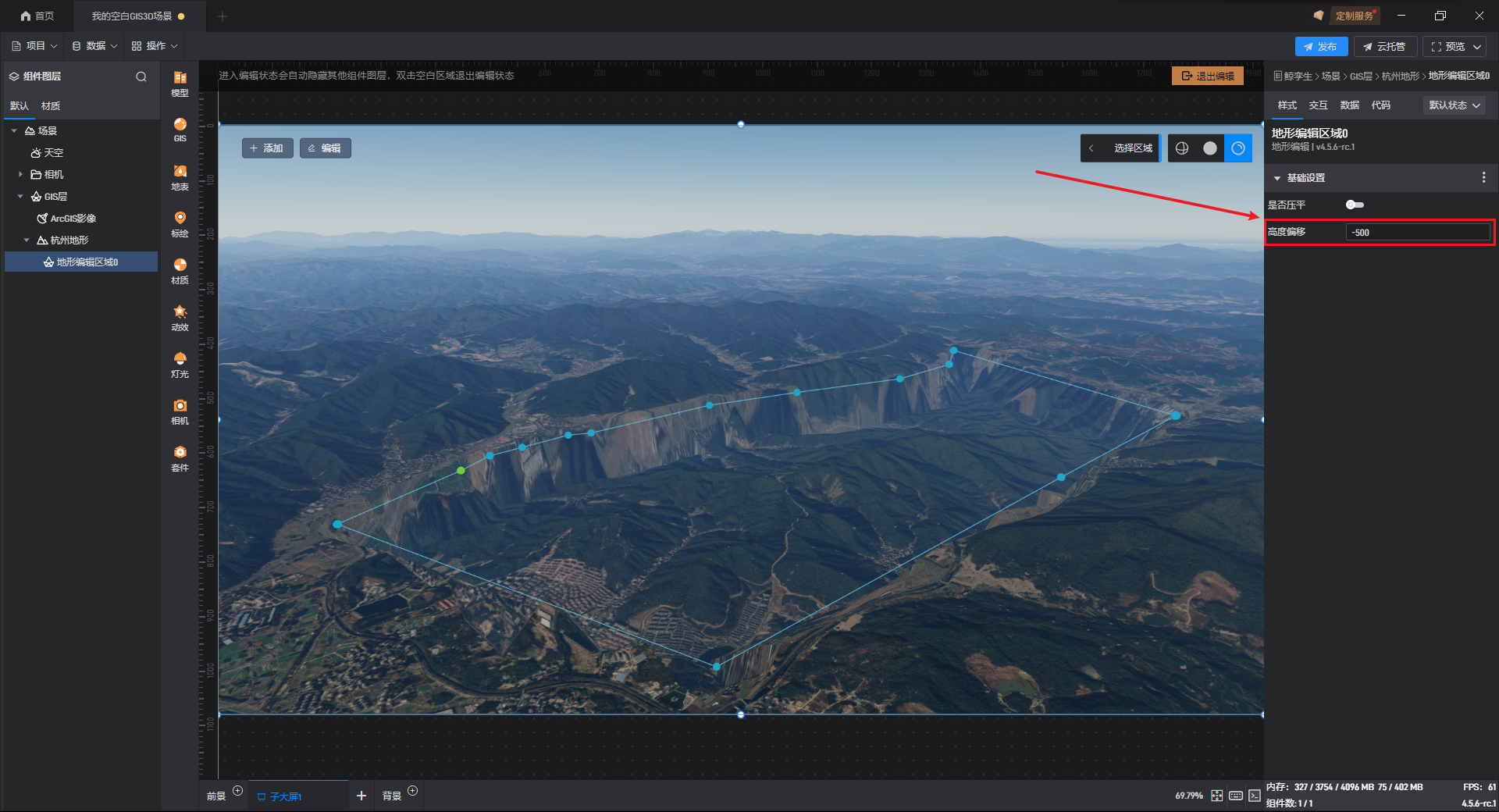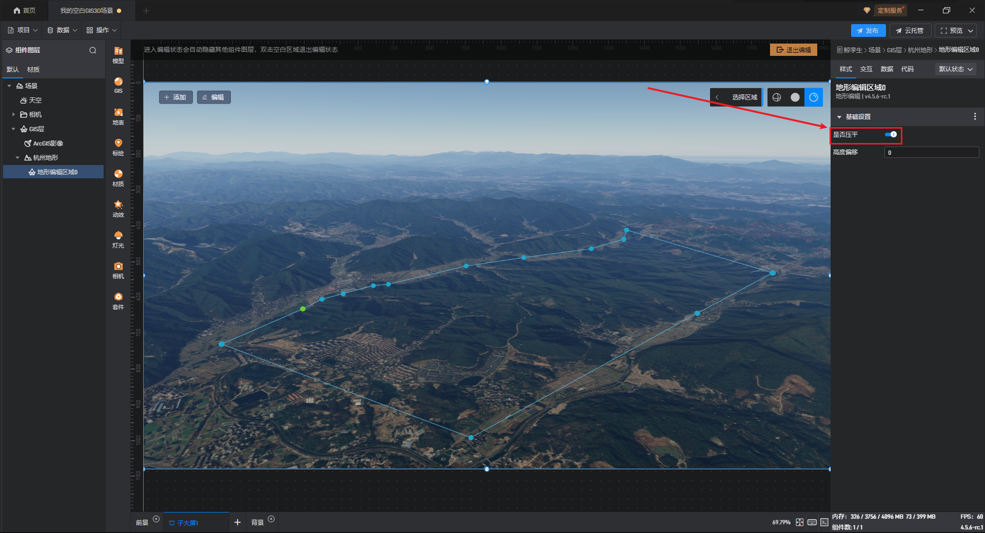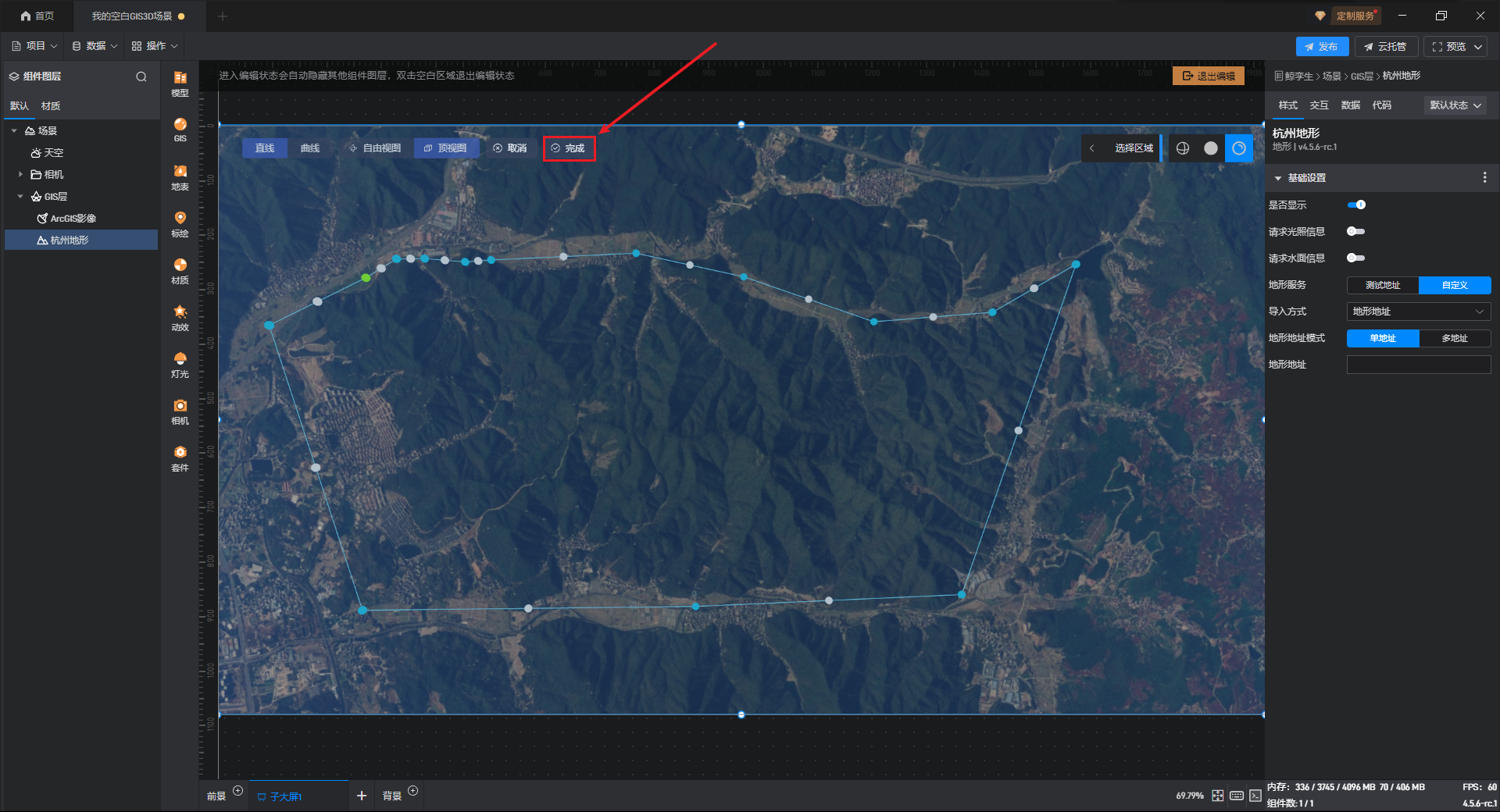 通过鼠标点击的方式,圈选需要编辑的地形,完成后点击右上角的“完成”按钮。