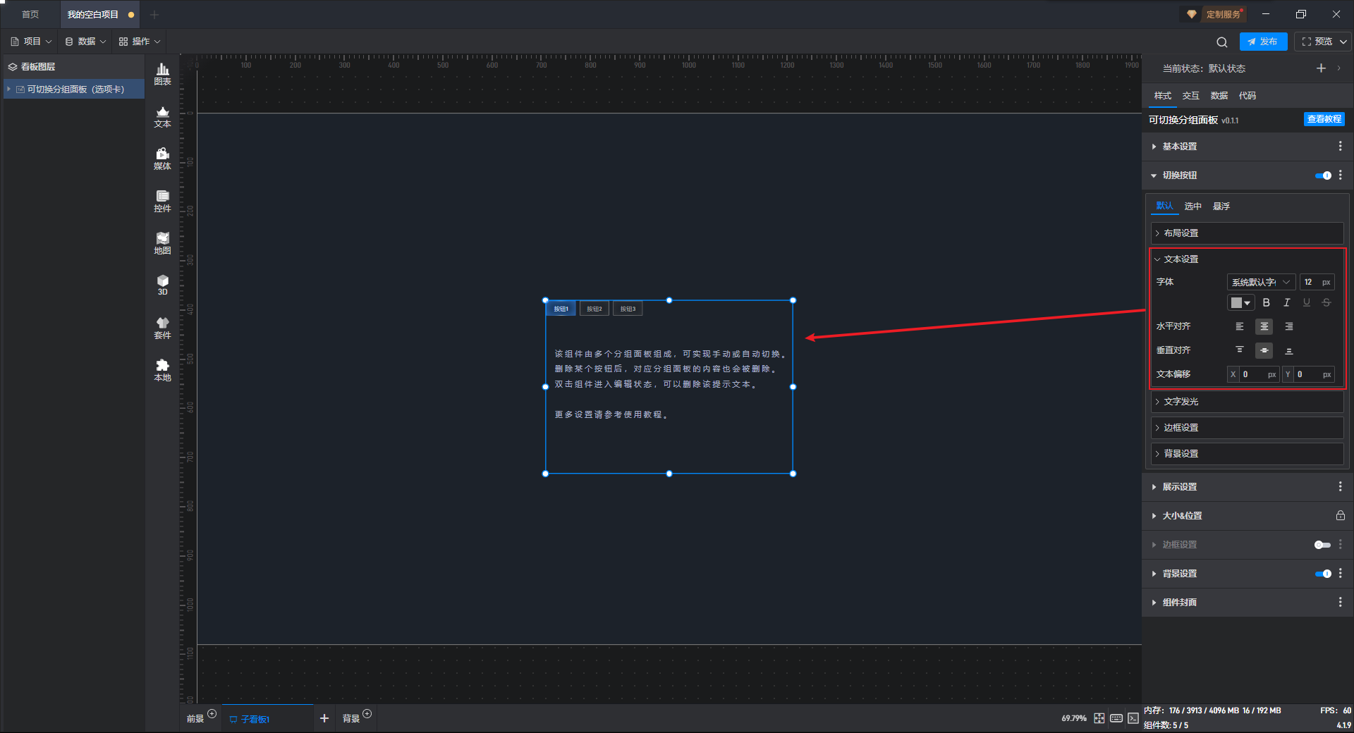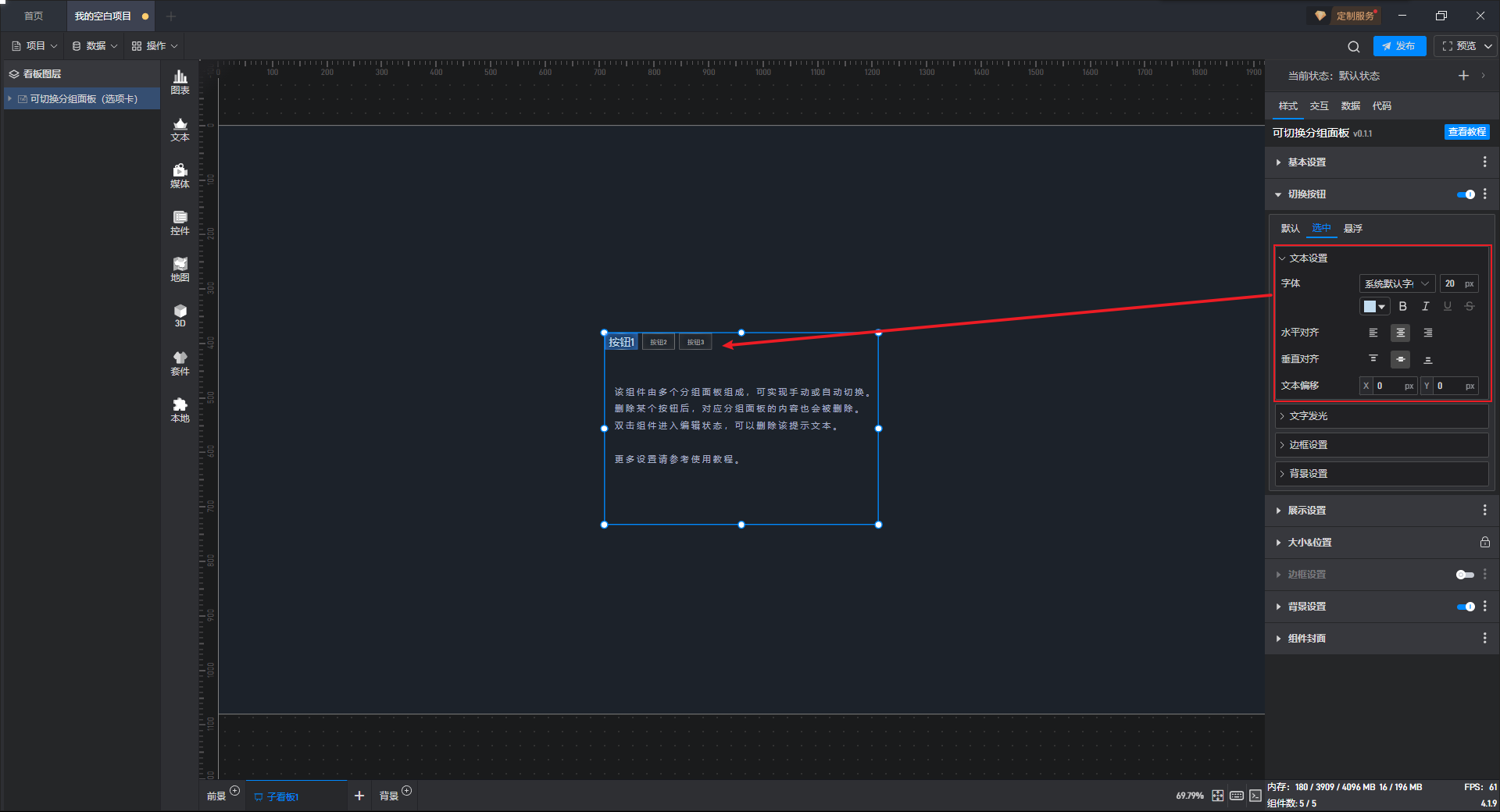 在组件库中,我们给大家提供了丰富的组件,且为了降低大家在项目制作过程中的设计复杂度,对这些组件预设了一些样式,但我们仍可以在此基础上对其样式进行修改。