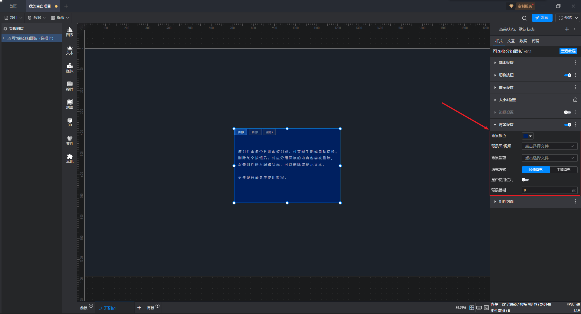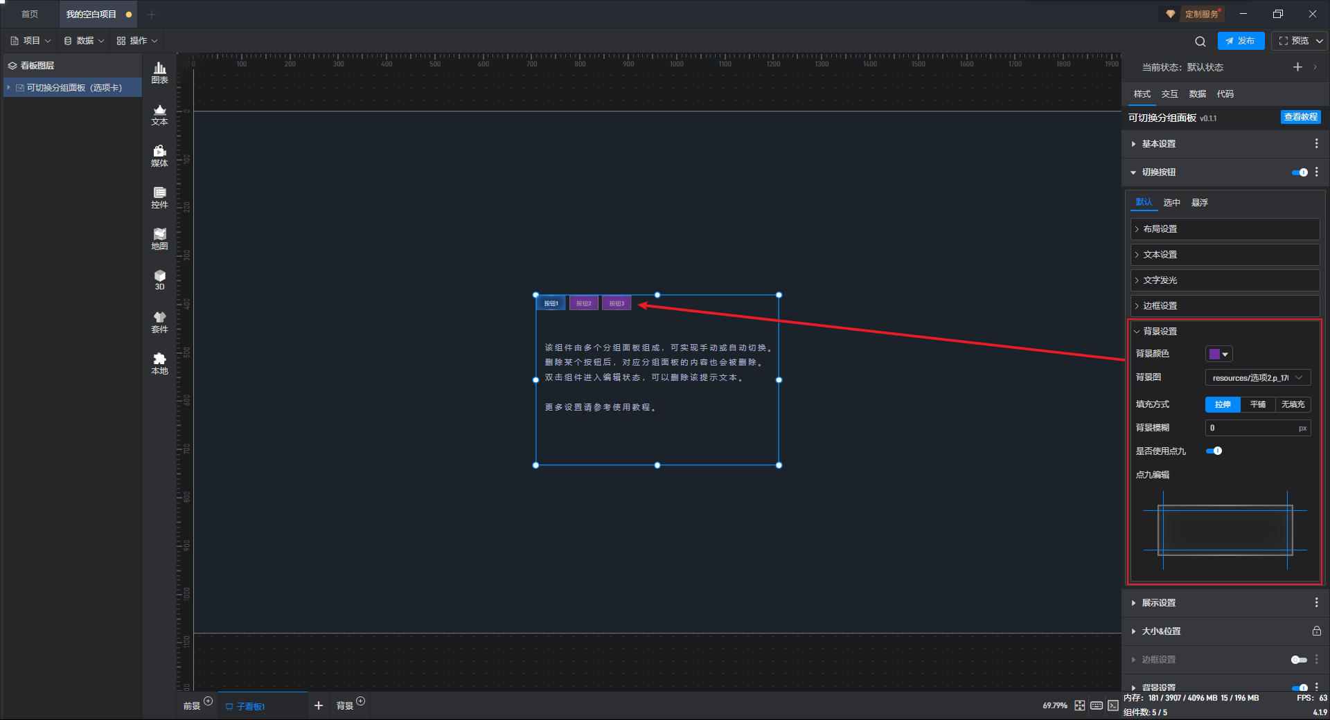组件默认没有背景颜色,如果需要设置背景颜色,需要先开启“背景设置”项按钮。