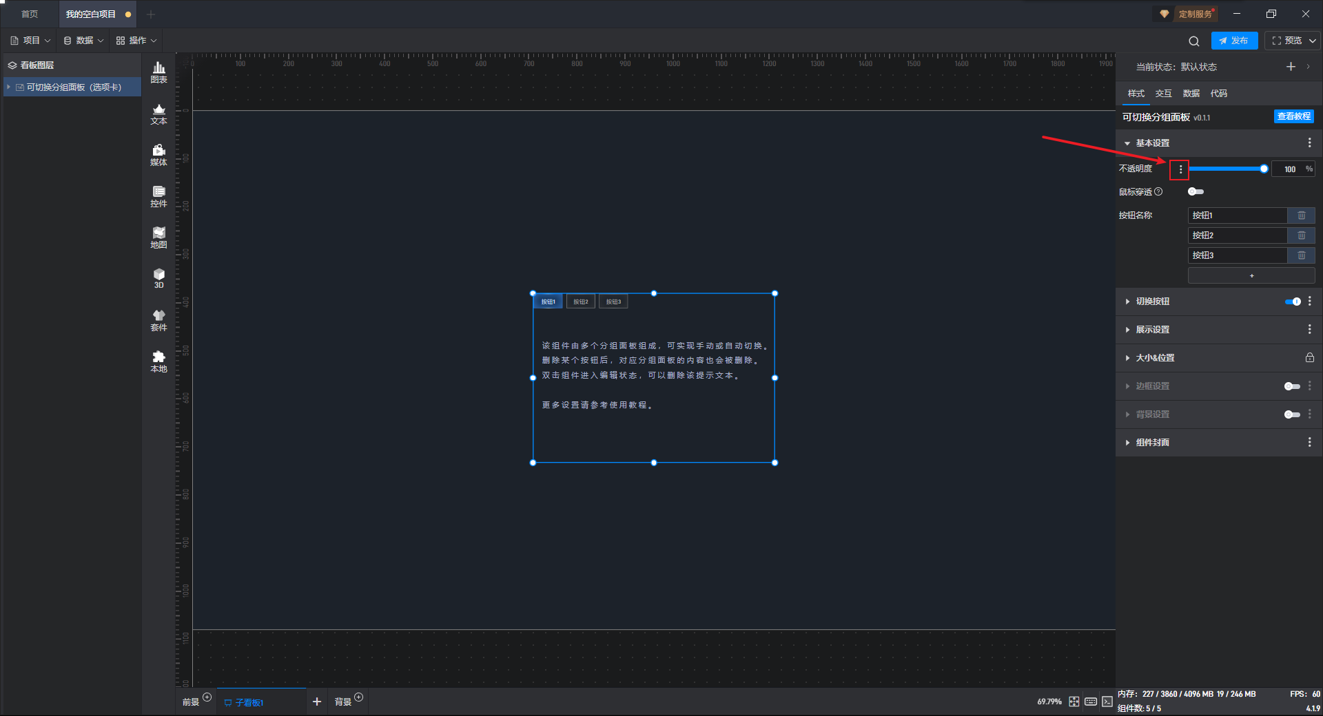 点击选中组件,将鼠标移动到该设置项上,就可以看到设置项名称右侧会出现三个点(扩展设置按钮)。