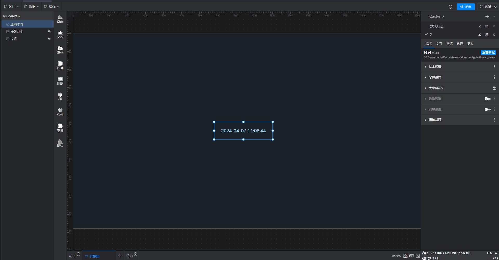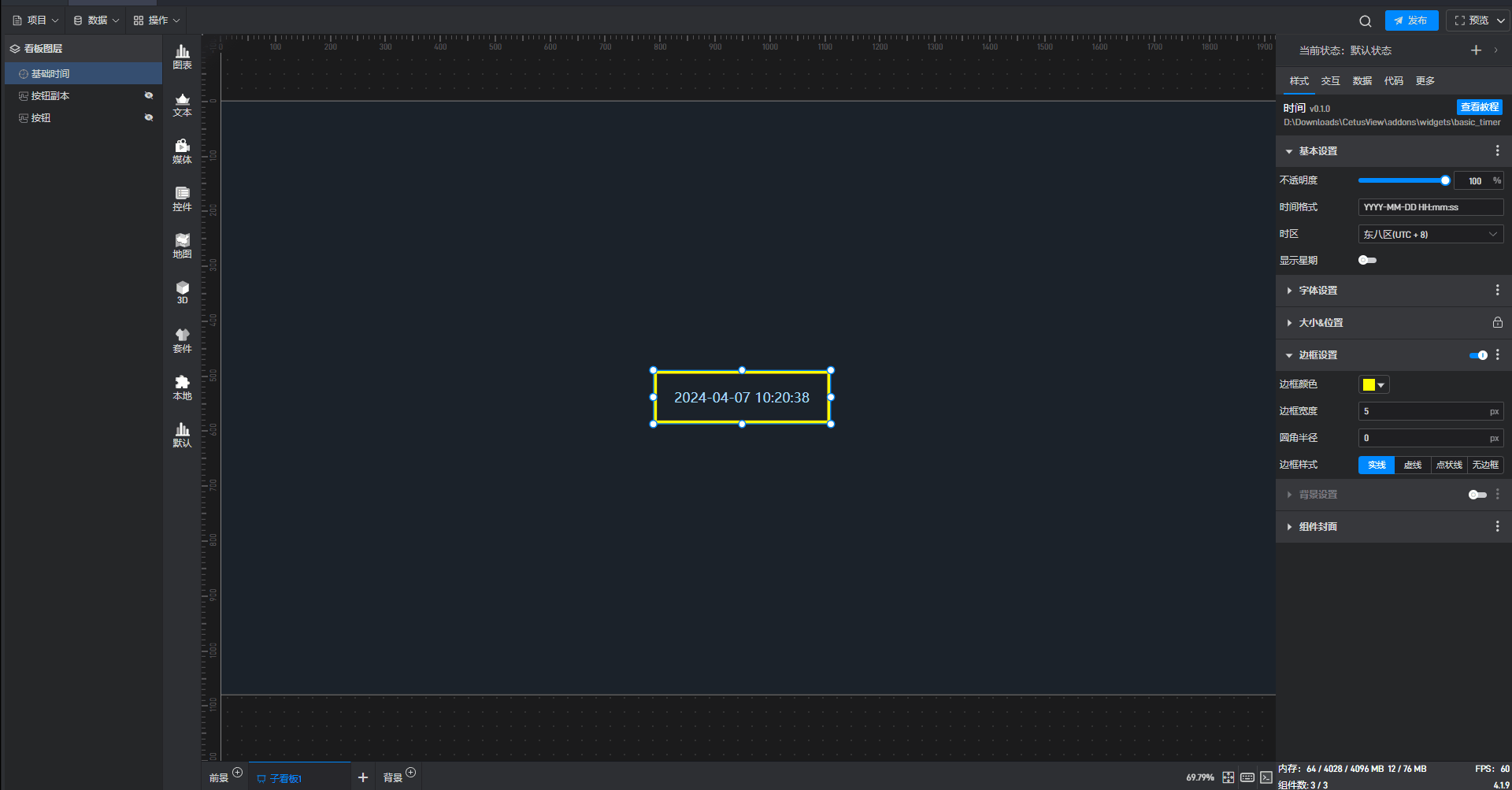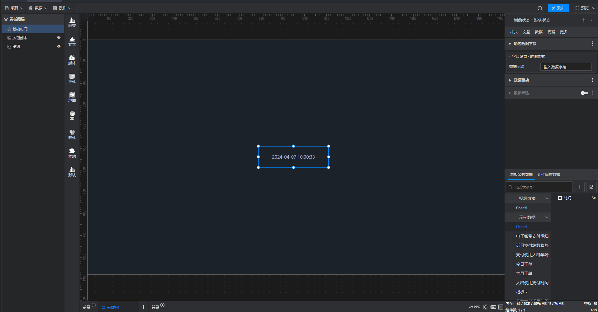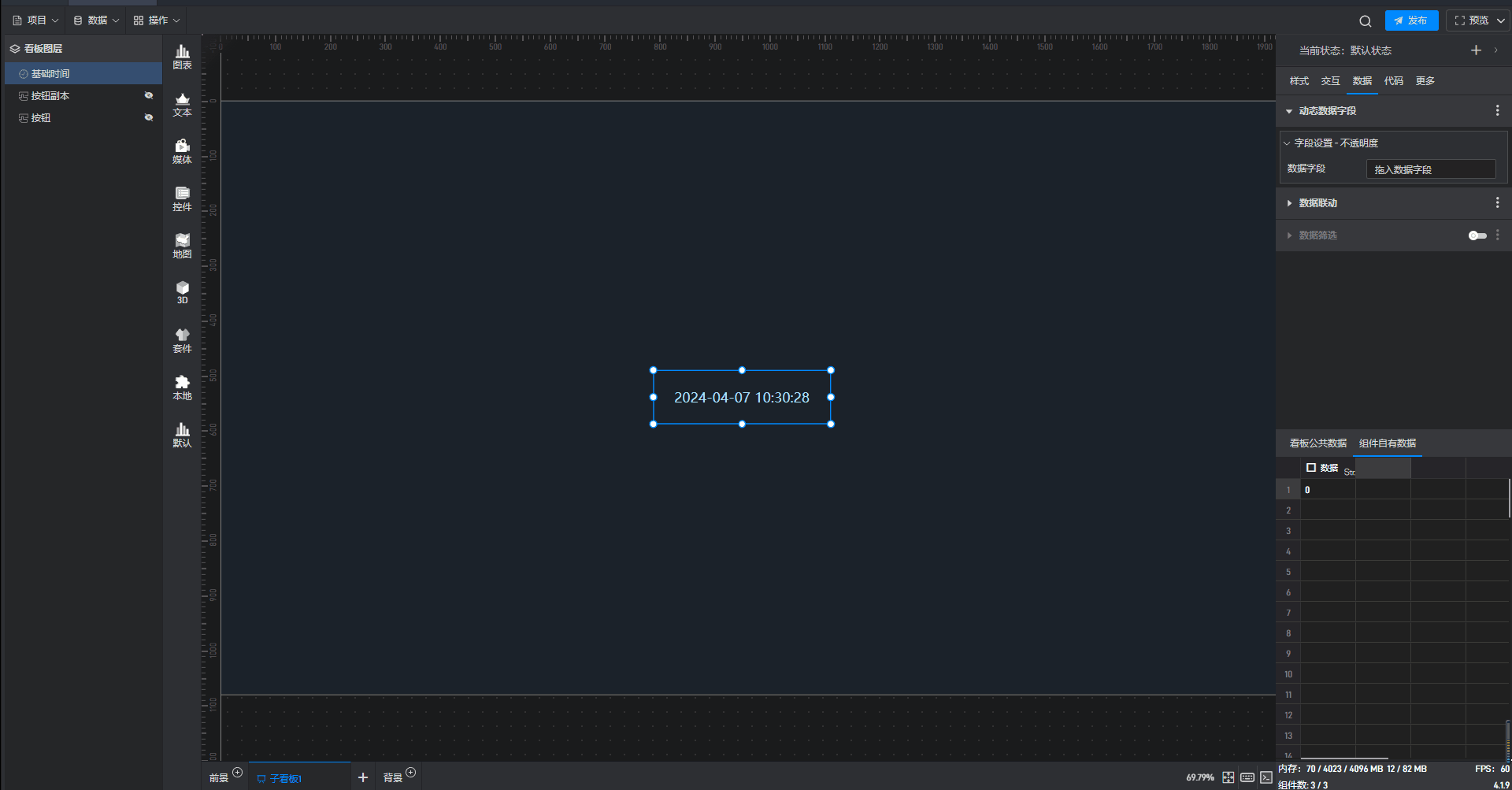 基础时间组件可直接使用软件自带时间系统,也可以通过数据字段控制时间。