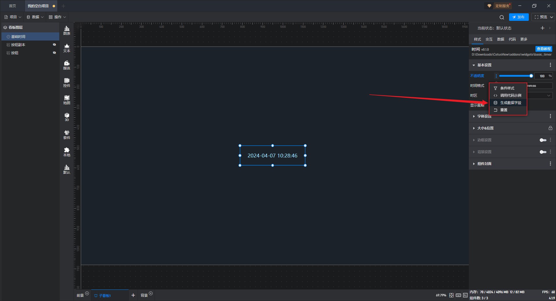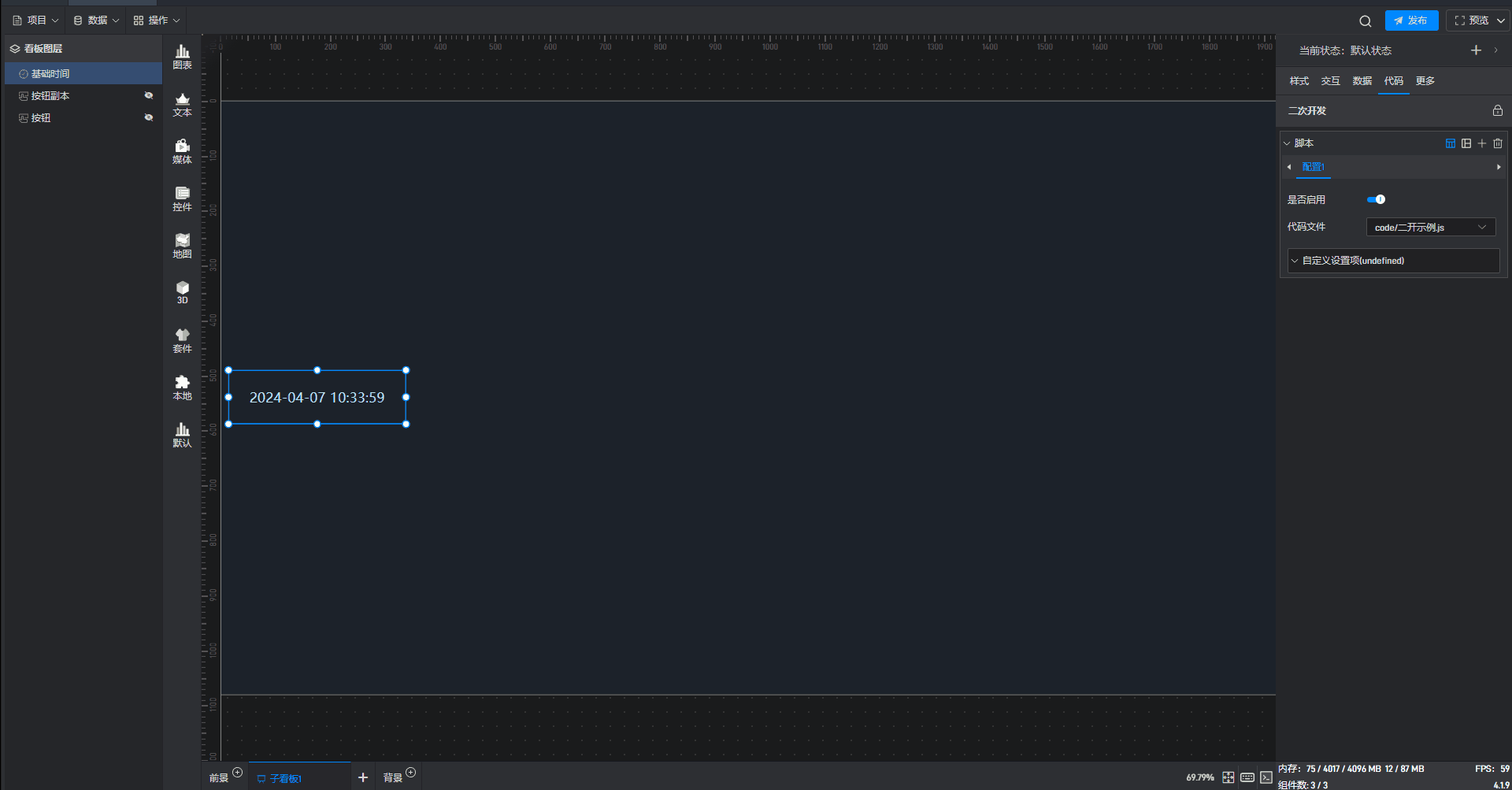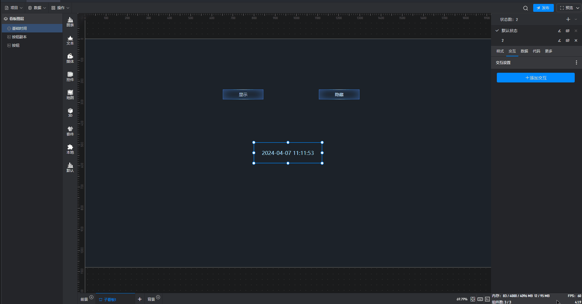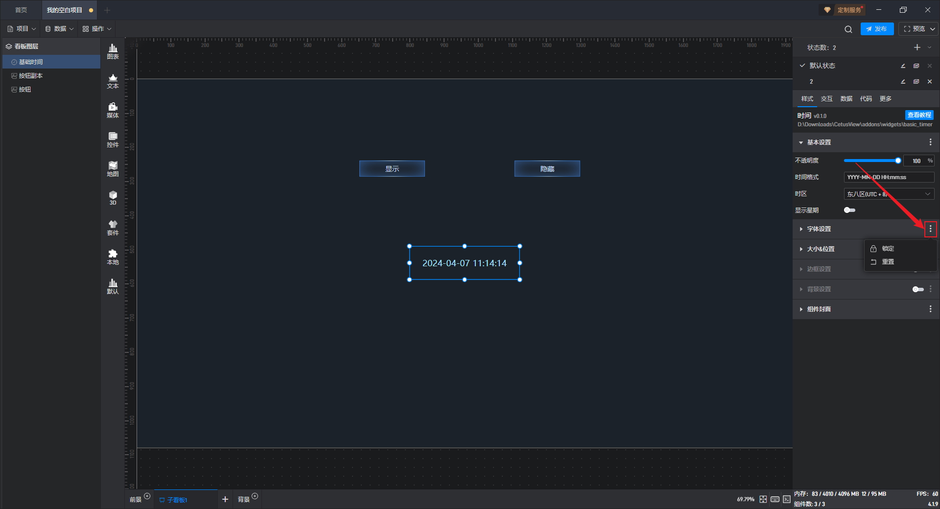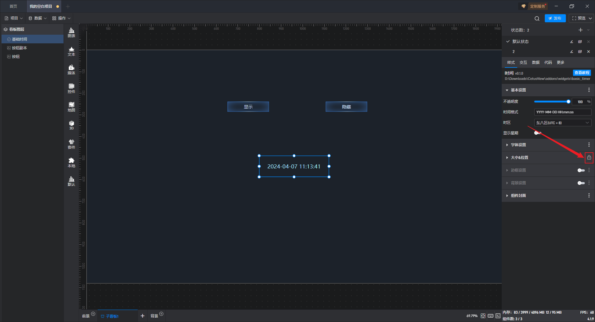 基础时间组件可直接使用软件自带时间系统,也可以通过数据字段控制时间。