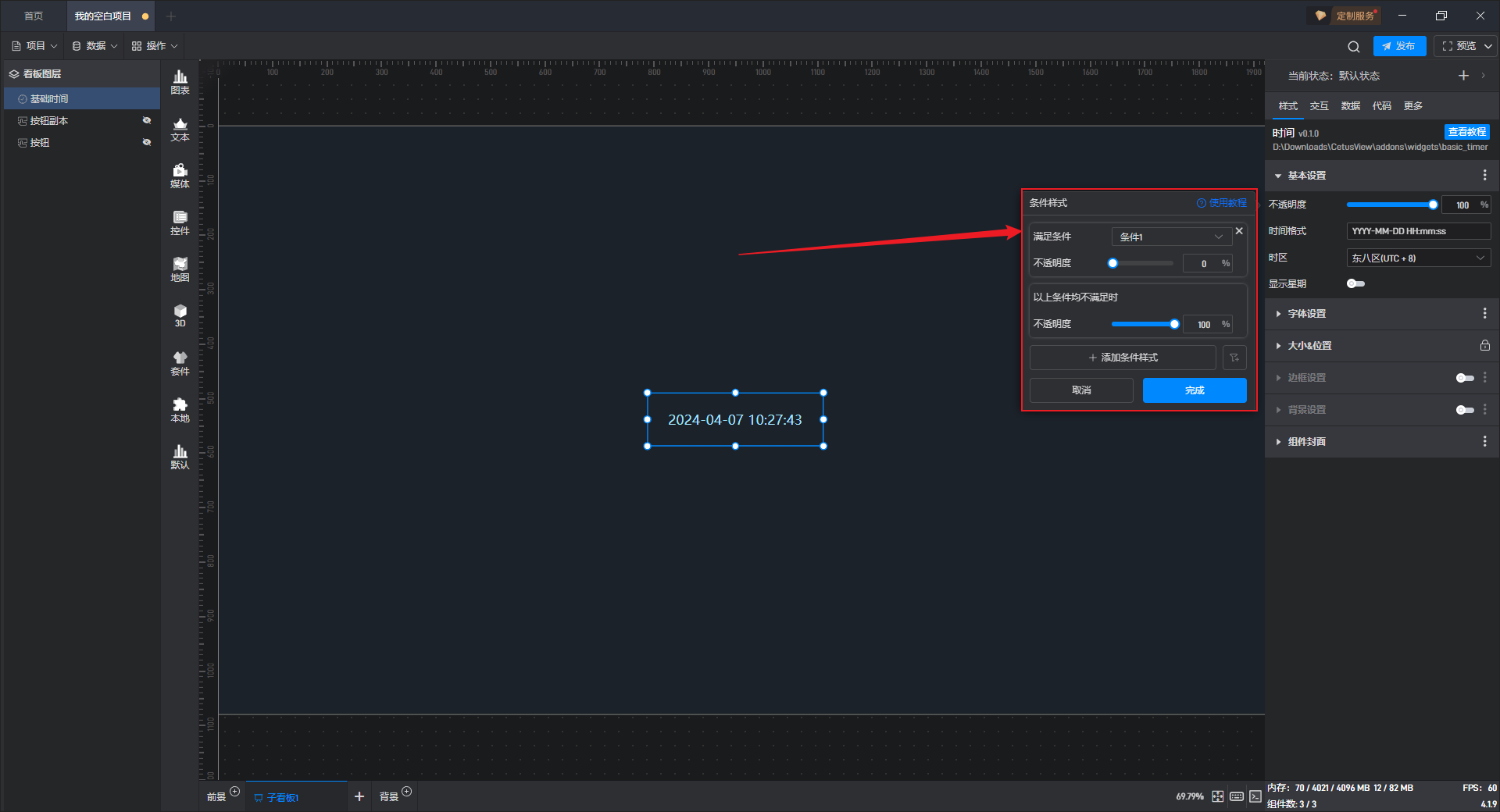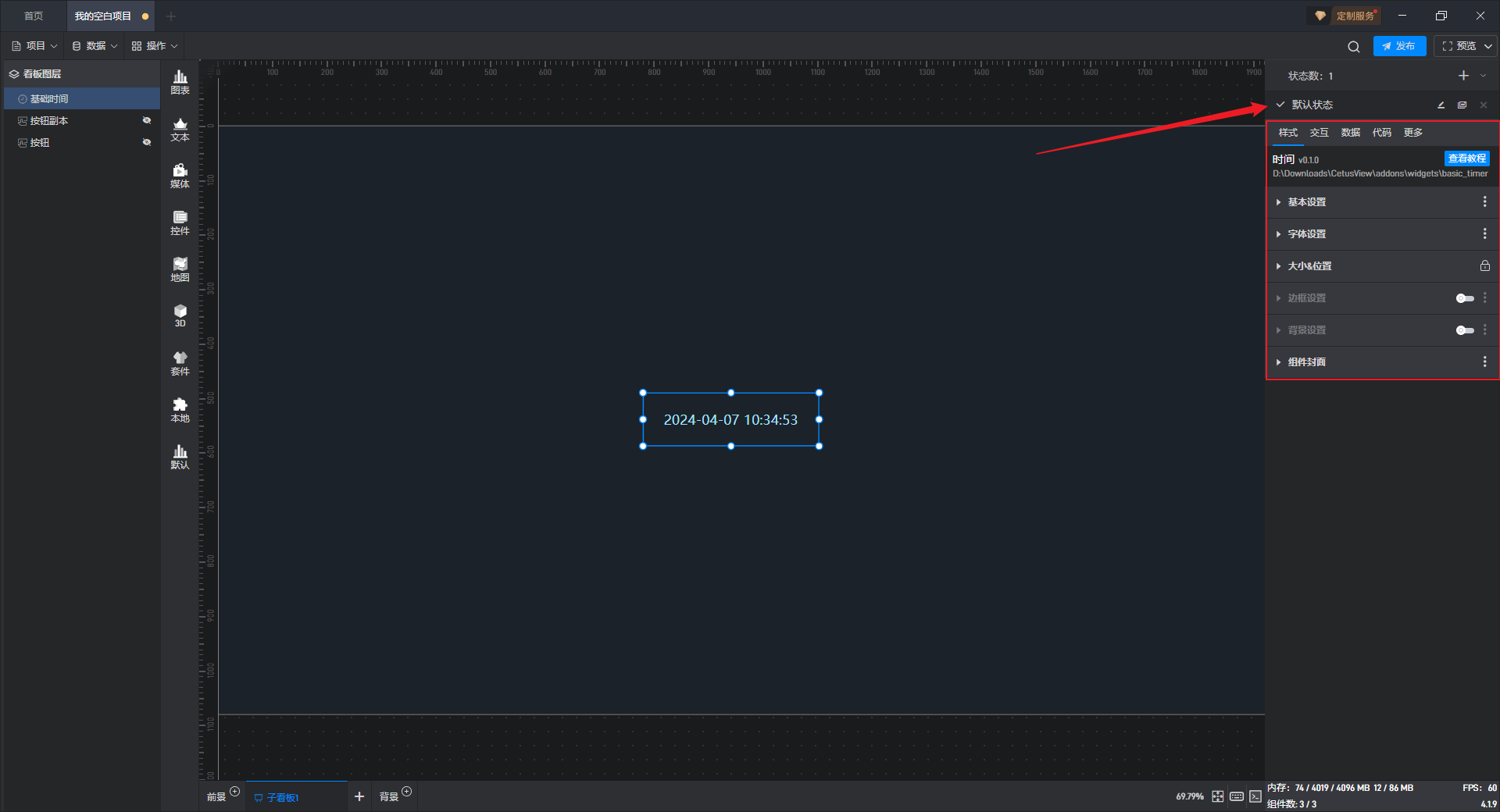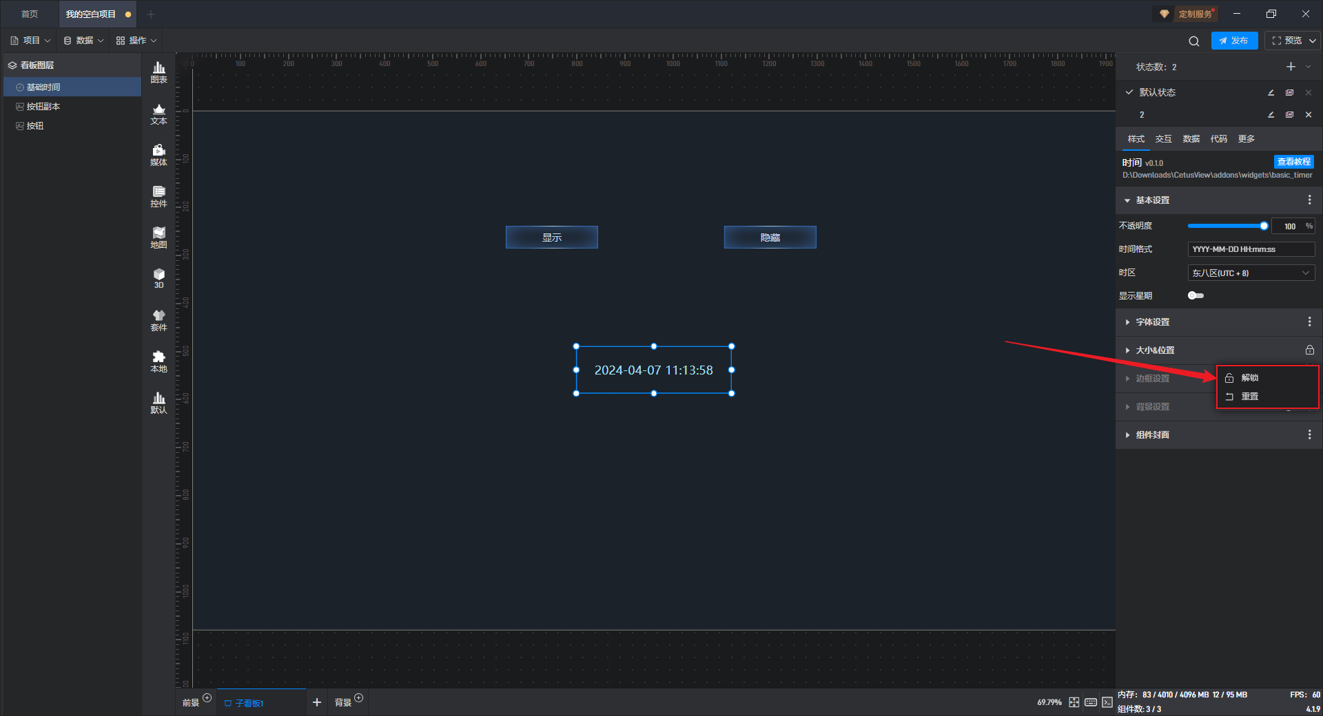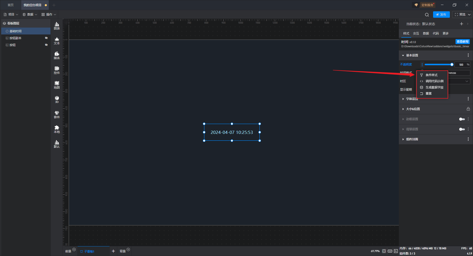 基础时间组件可直接使用软件自带时间系统,也可以通过数据字段控制时间。