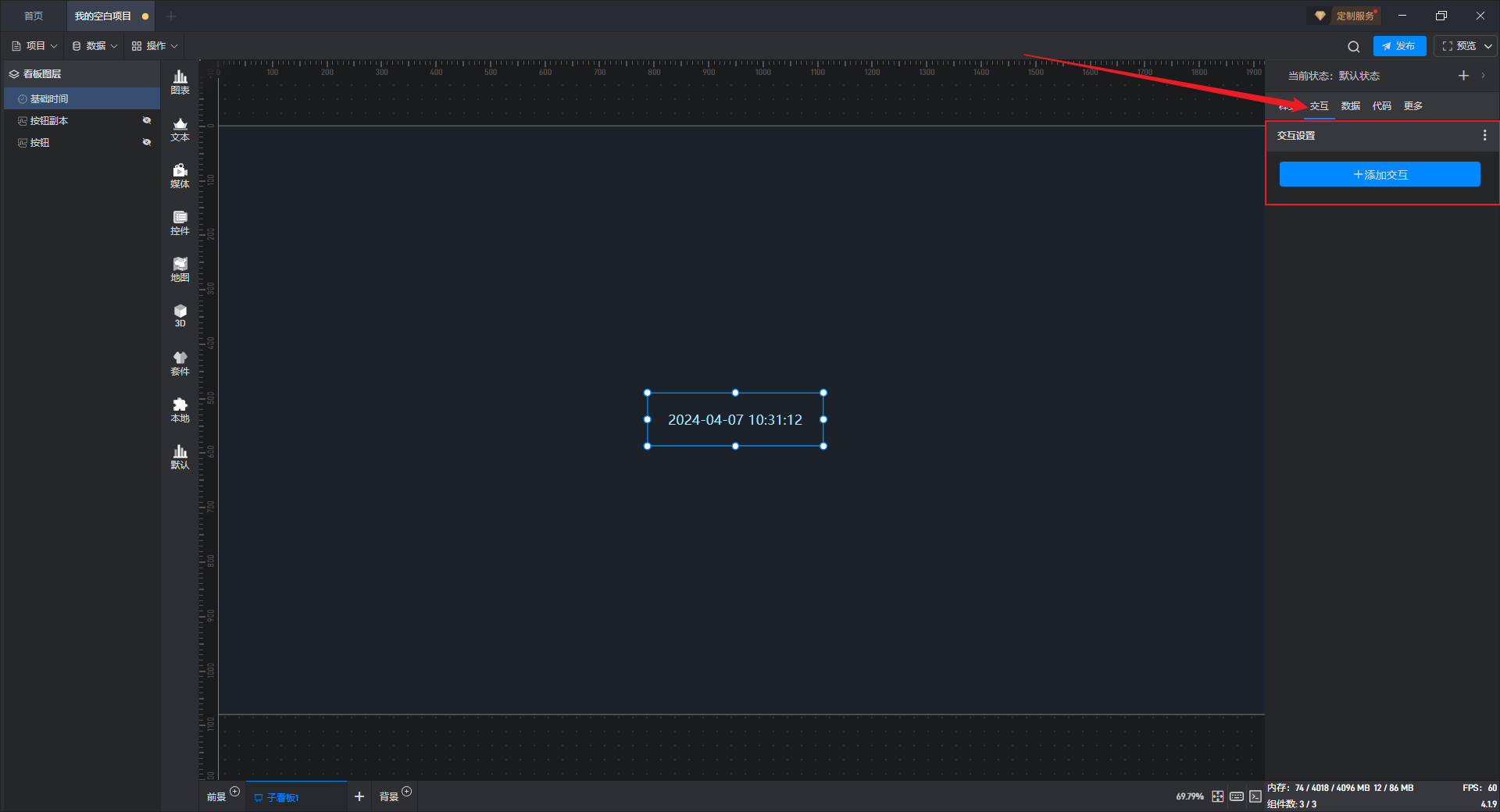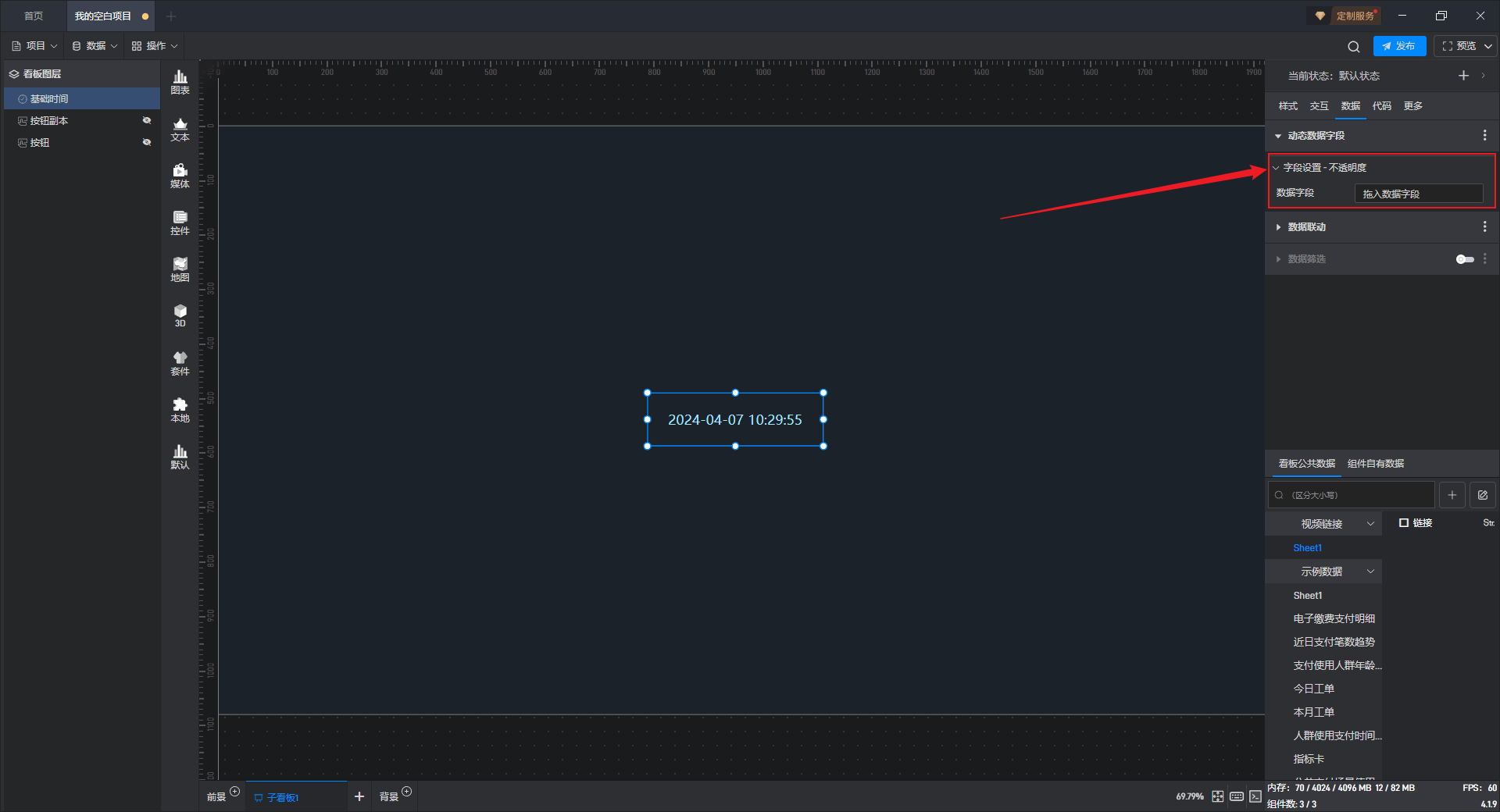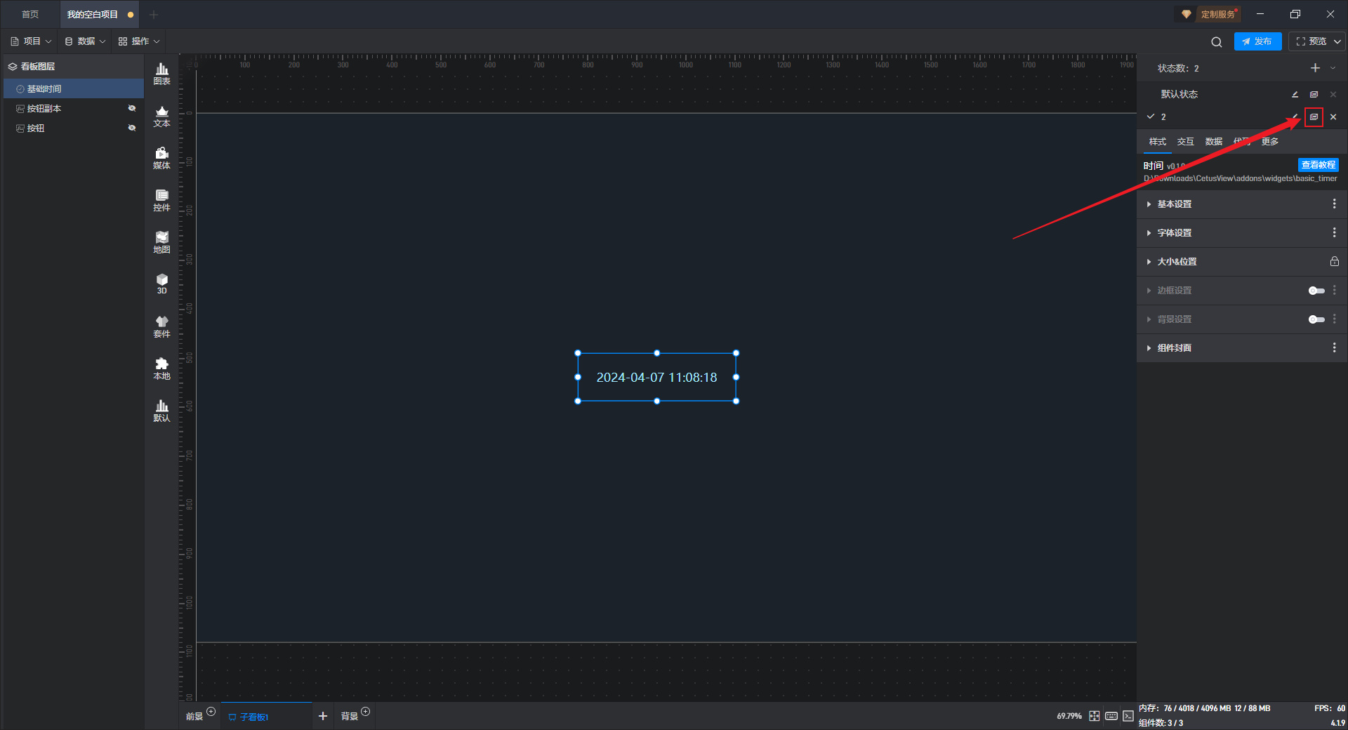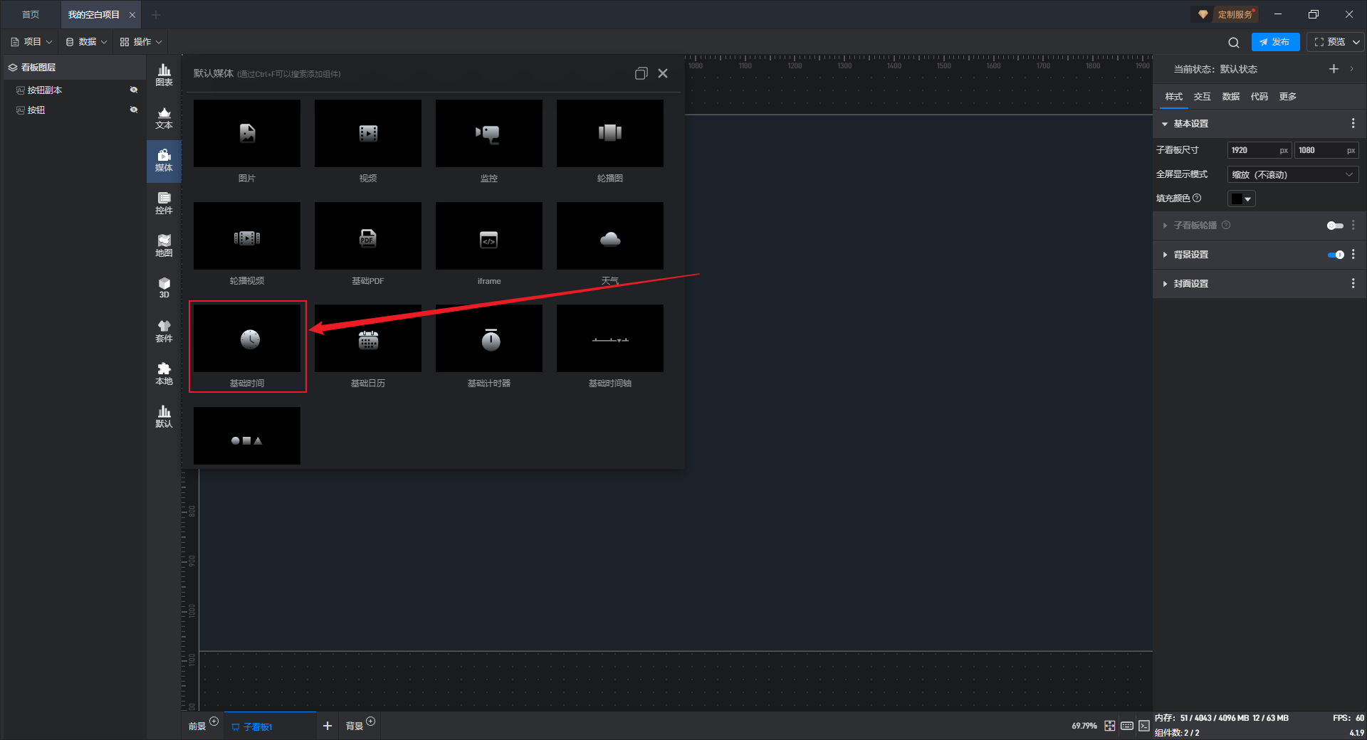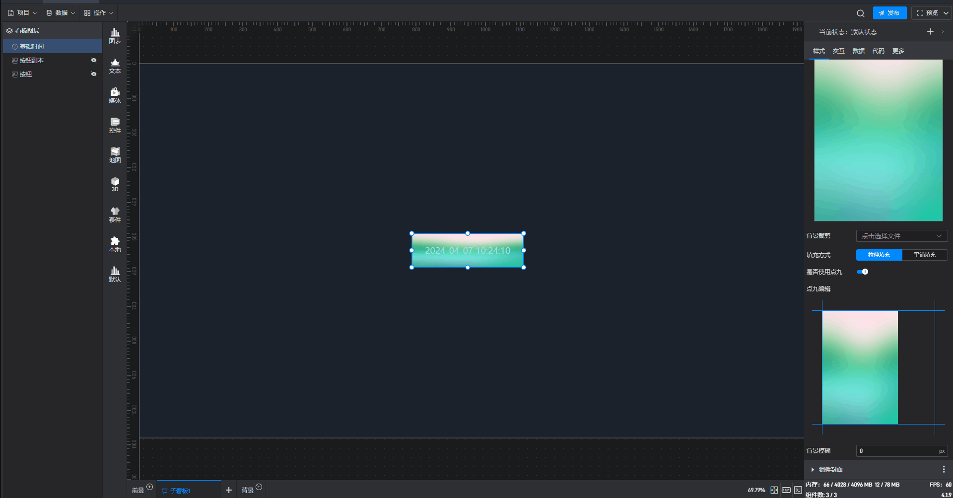 基础时间组件可直接使用软件自带时间系统,也可以通过数据字段控制时间。