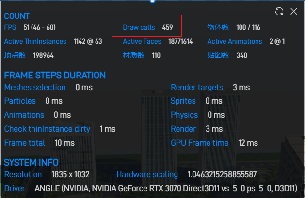一般来说当 drawcall 高于 1000 时则是显著过多了,当然对于性能比较差一些的电脑,可能几百也是很多,所以我们第一步就是优化 drawcalls 的数量