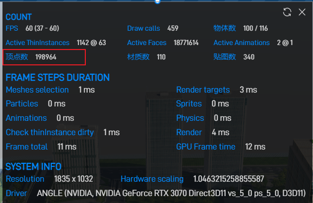 顶点数对于 FPS 的影响要比 drawcalls 的影响小很多,但当顶点数过多,如超过 100 万时,也会显著影响运行速度,此时我们就要对当前的模型进行减面。