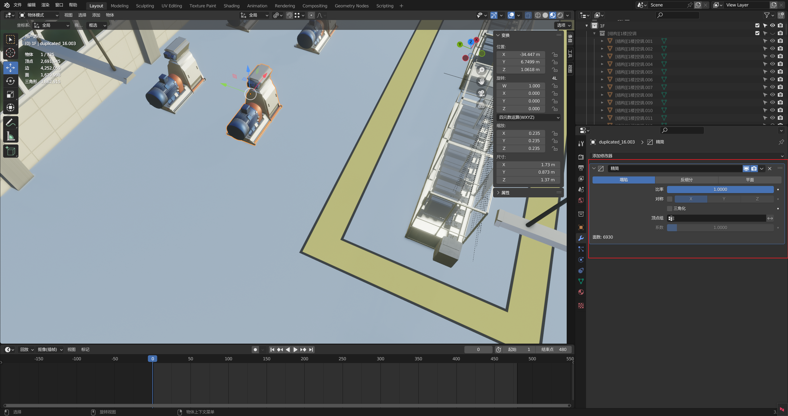 在 blender 中我们可以直接使用精简修改器(Decimate Modifier)对模型进行修改,调整好参数后,应用修改器即可实现减面操作。
