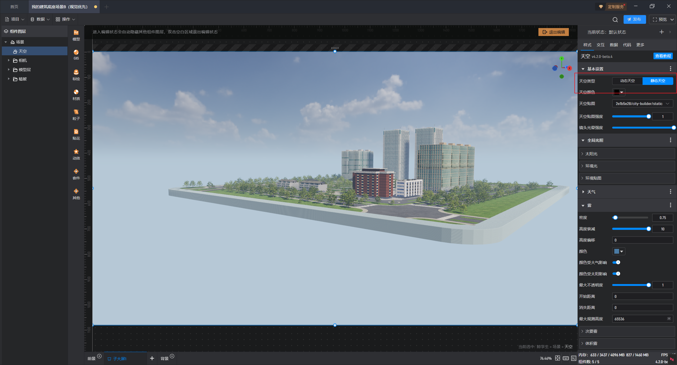 同时也可以进一步将整个天空由动态天空改为静态天空:
