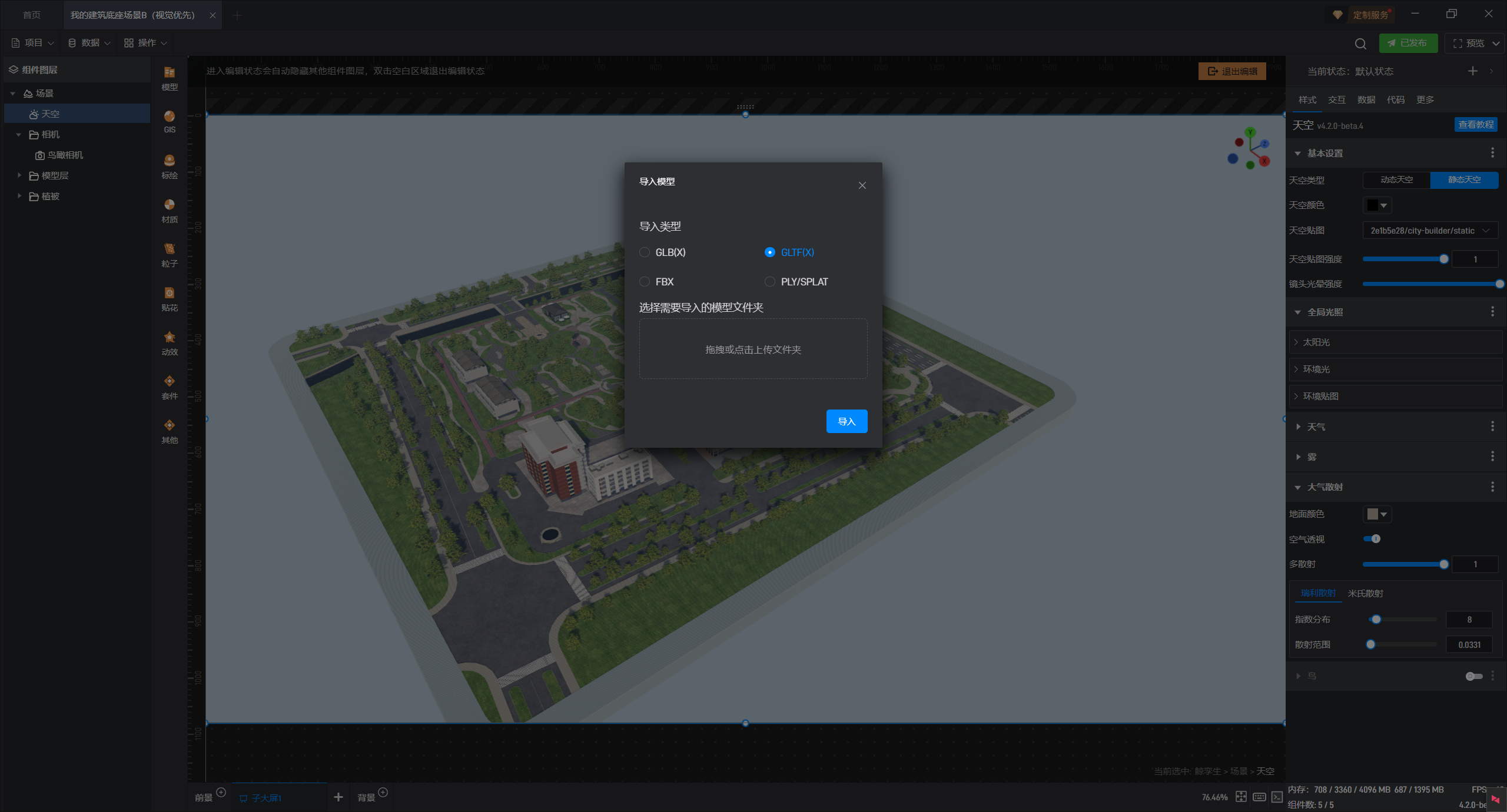 由于 3D 元素中的顶点数过多,或者材质贴图过大,导致最终模型文件较大。这样页会显著影响加载速度,此时一方面我们可以如前面章节介绍的减面或者降低贴图分辨率,也可以采用 gltf 代替 glb 来导入外部模型,因为 gltf 是分贴图加载的,同时可以调用浏览器的缓存机制,让第二次加载速度显著提升: