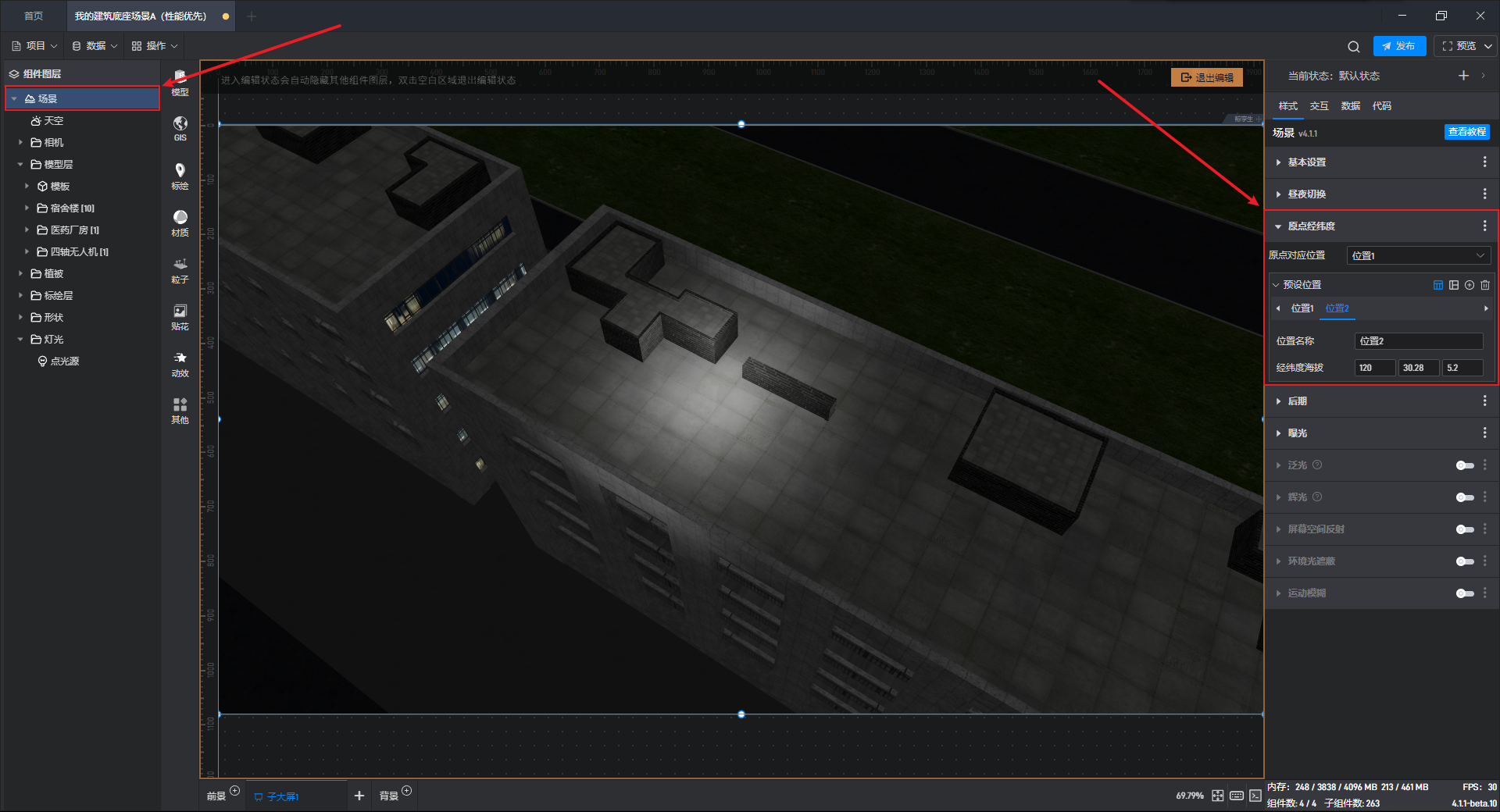 点光源组件是鲸孪生内部的组件之一,需要手动添加,可以删除。每一个鲸孪生组件中可以添加多个点光源组件。