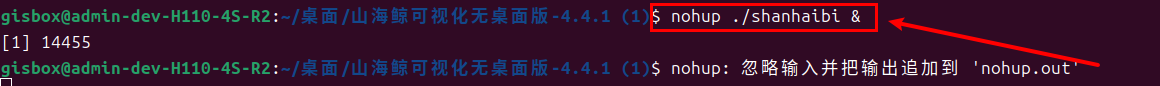 山海鲸可视化无桌面系统版运行成功后会自动生成“nohup.out”日志文件。如需获取服务器的端口号,需输入命令:
