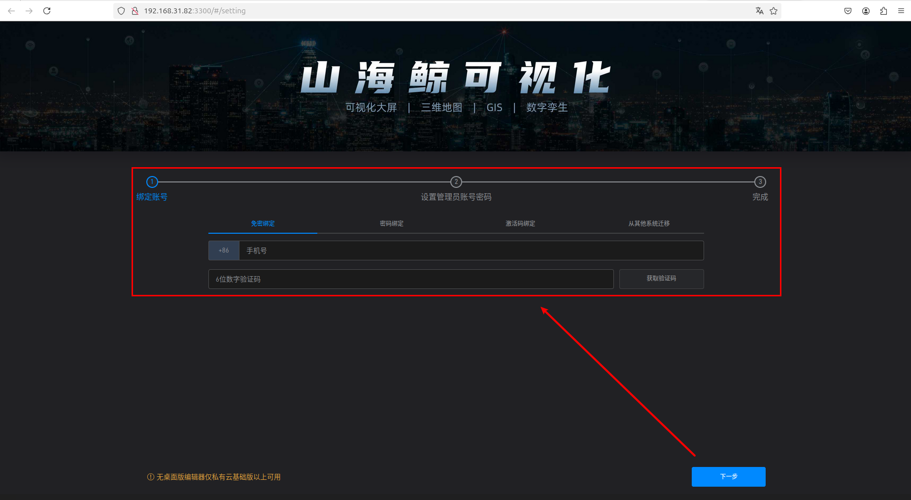 3)在浏览器上输入山海鲸可视化访问链接并点击回车后,可以看到山海鲸可视化的登录界面,我们可以根据需求选择相应的登陆方式,(点击查看教程:网络公开版-账号登录、局域网版-License 激活/迁移)如下图所示: