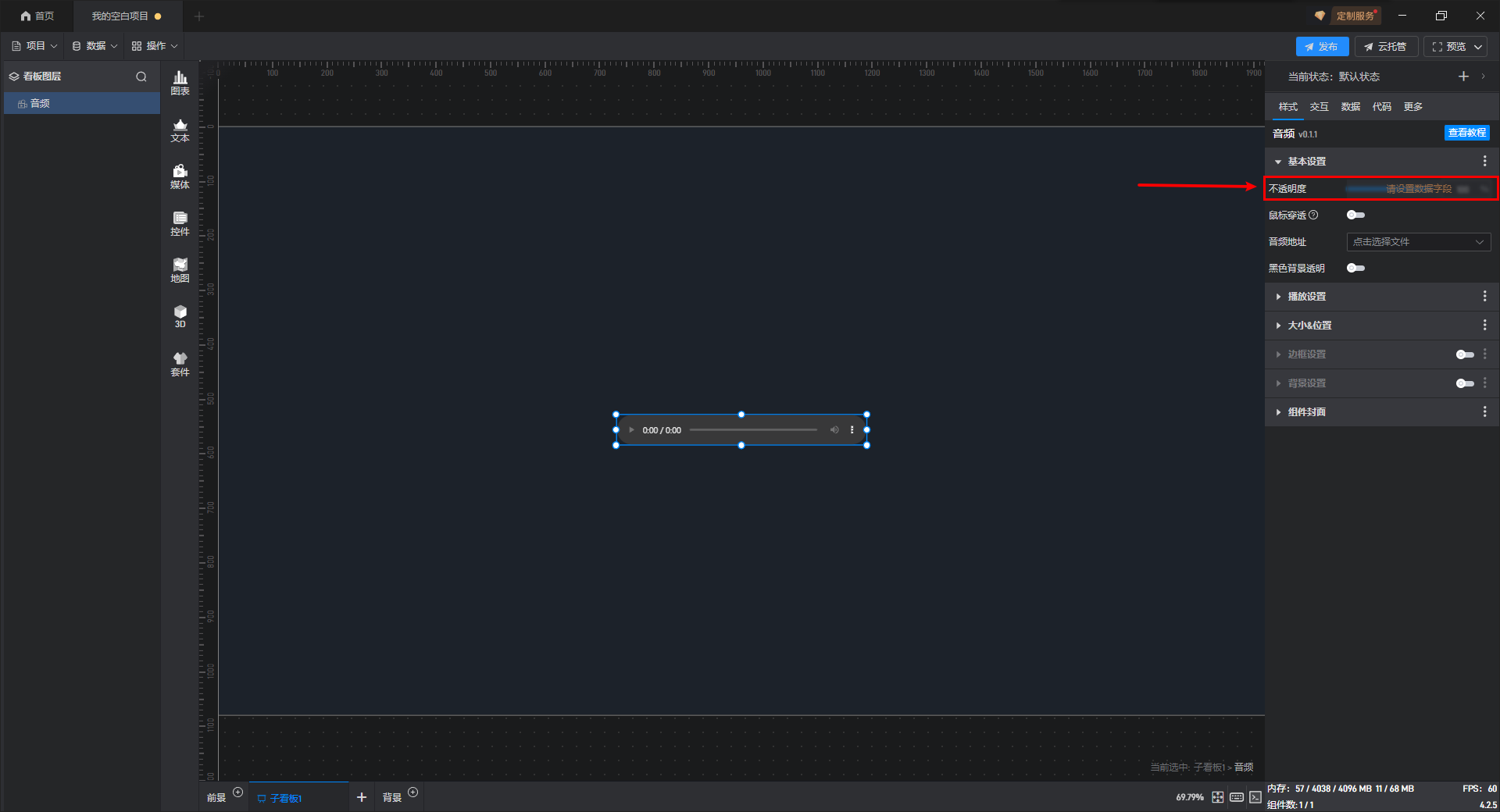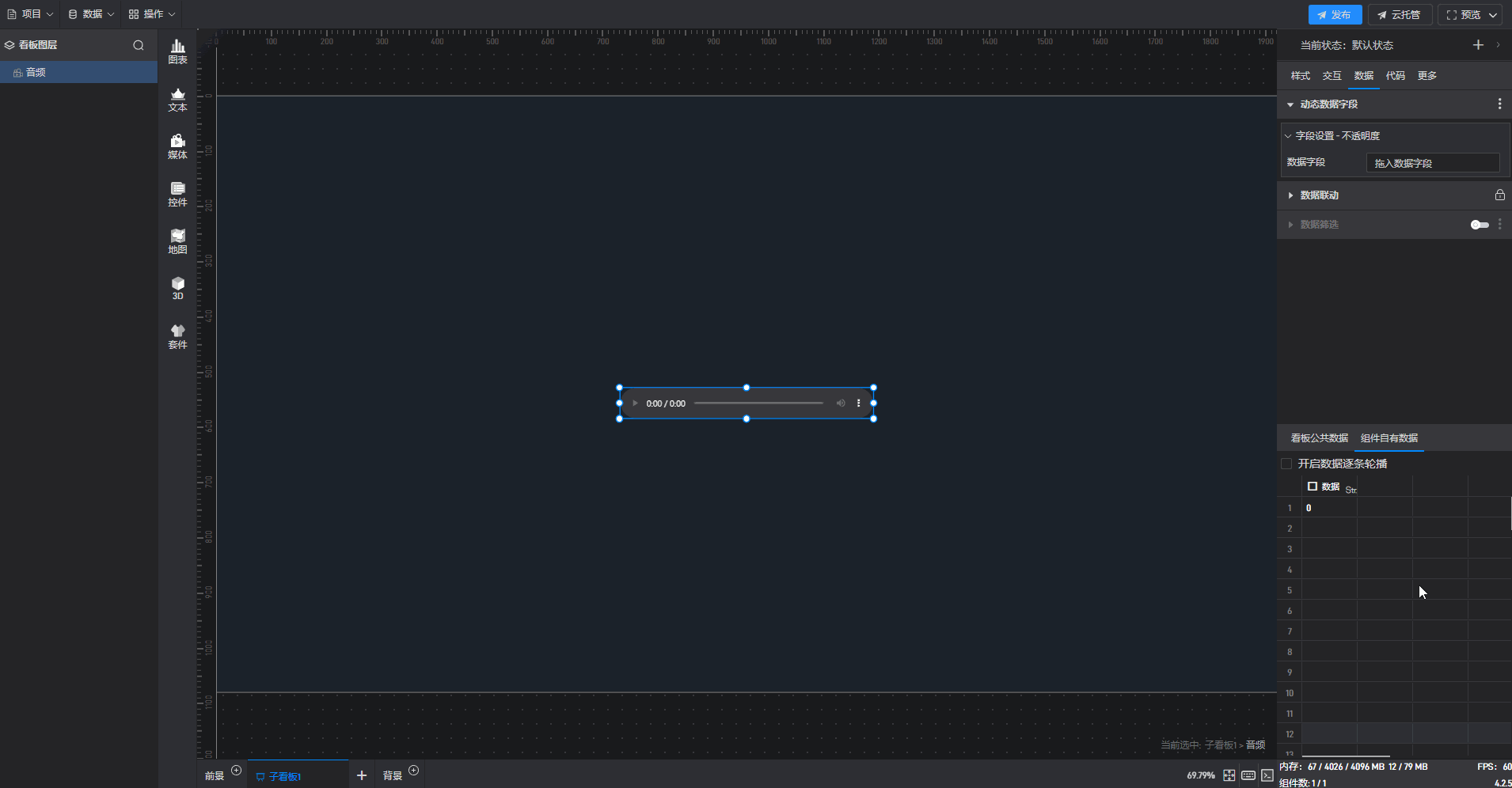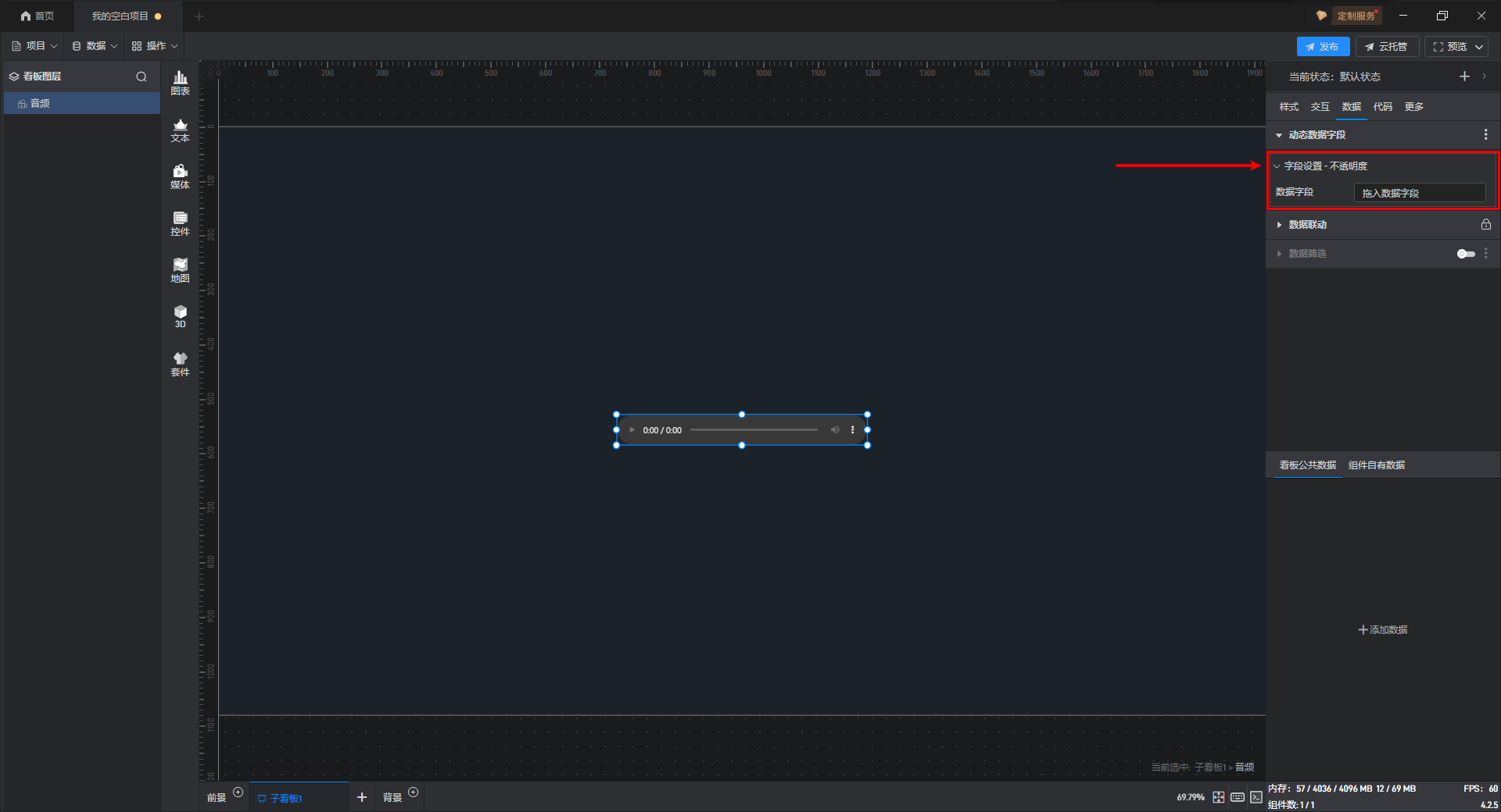 因为音频组件默认没有数据字段,此时我们需要用到“动态数据字段”的功能,这个功能是针对设置项生成一个关联的数据字段,从而可以通过数据字段来对设置项的内容进行控制。