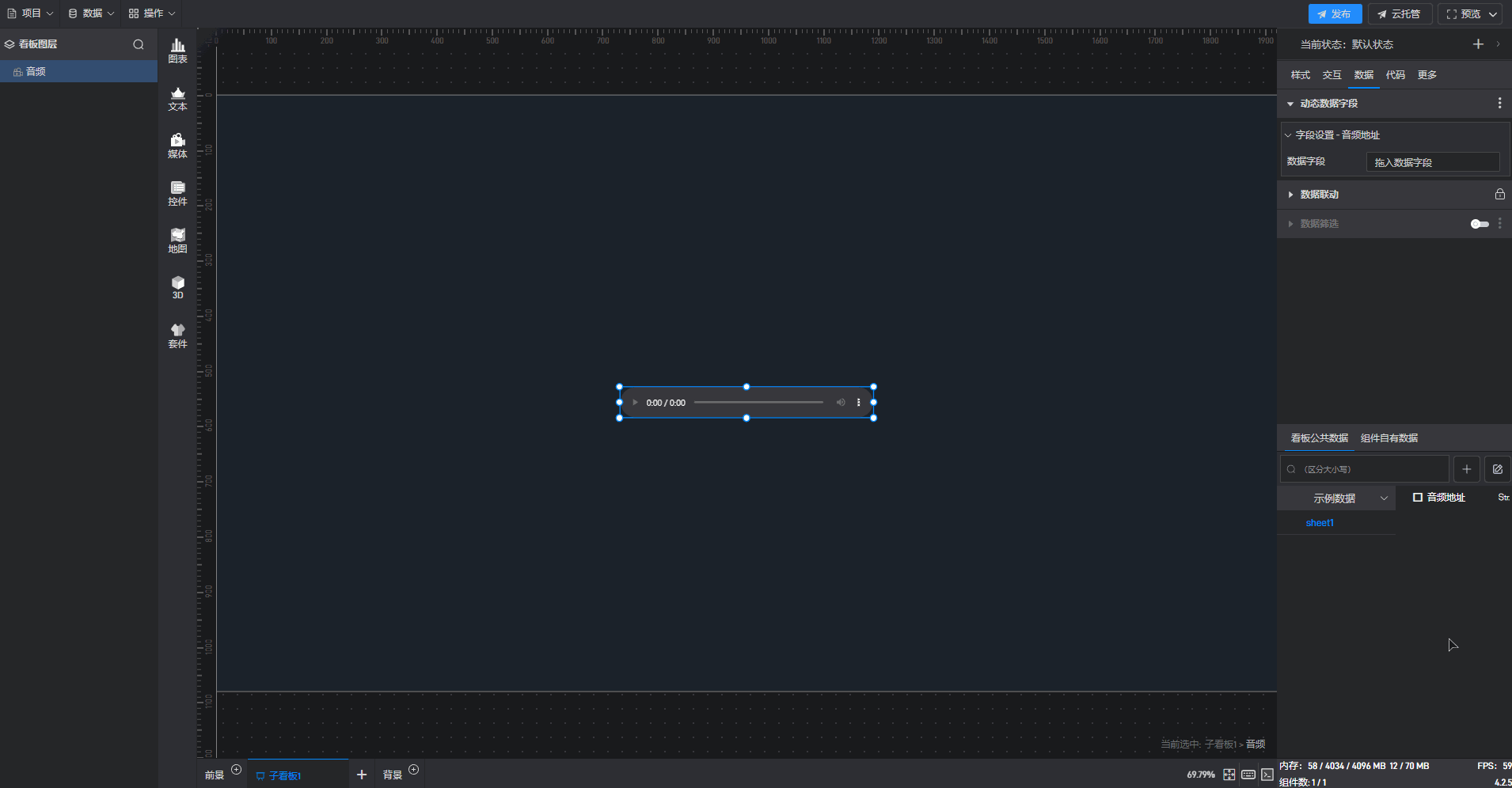 音频组件可直接添加音频地址,也可以通过数据字段设置。