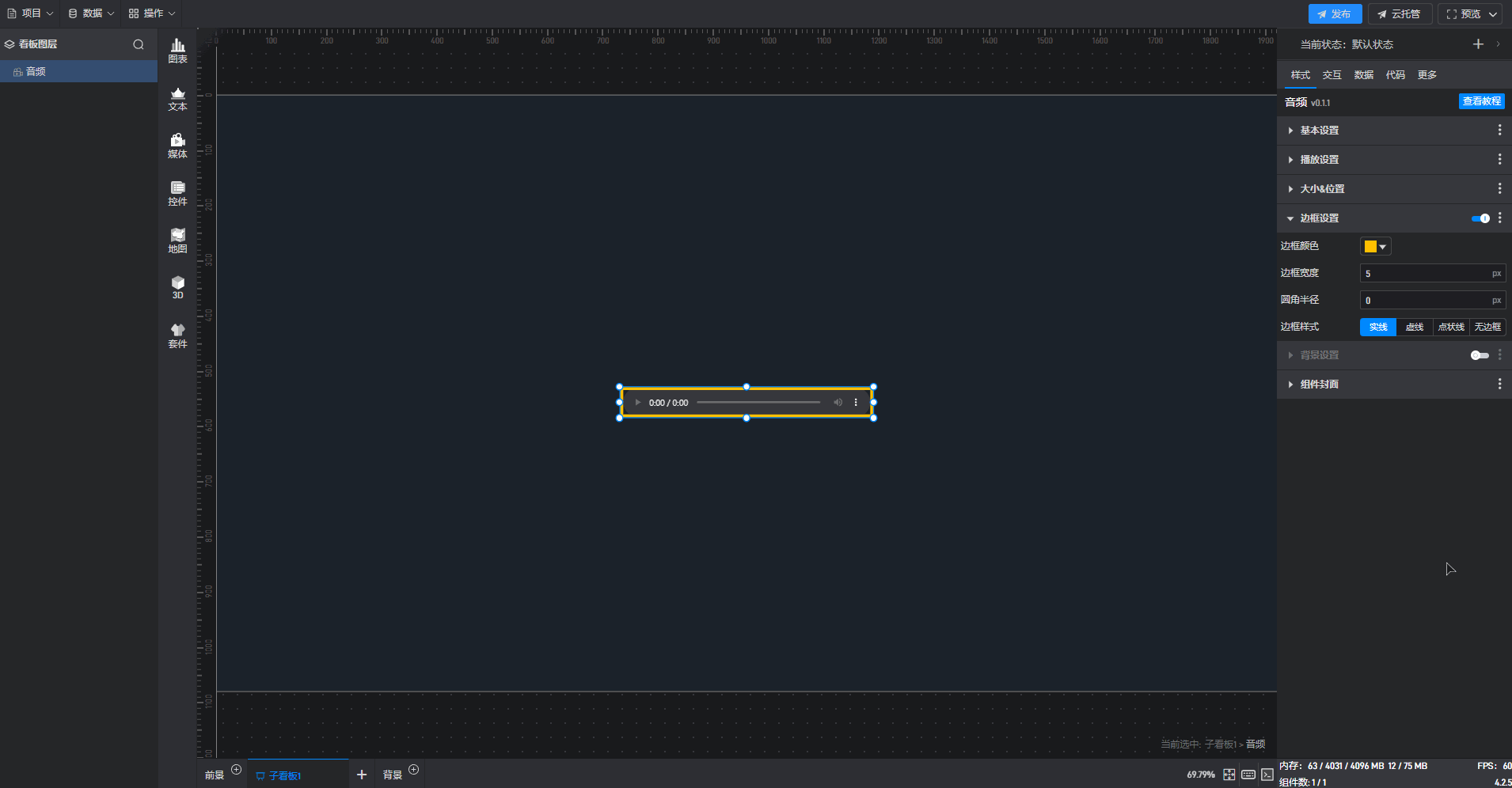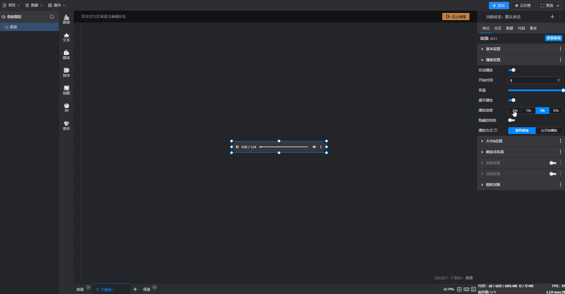 | 自动播放 | 开启后音频在项目发布或部署时将自动开始播放。 |
