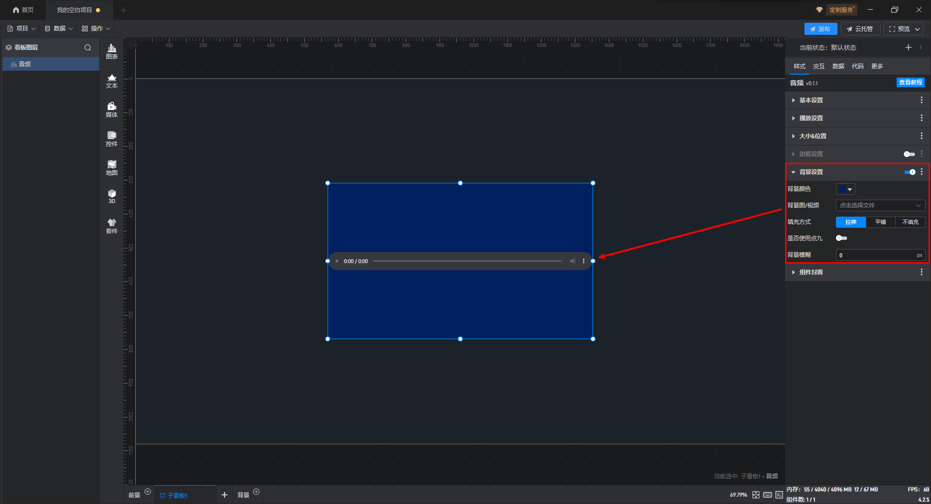 | 背景图/视频 | 可在此处添加本地图片或视频,充当组件背景。 |