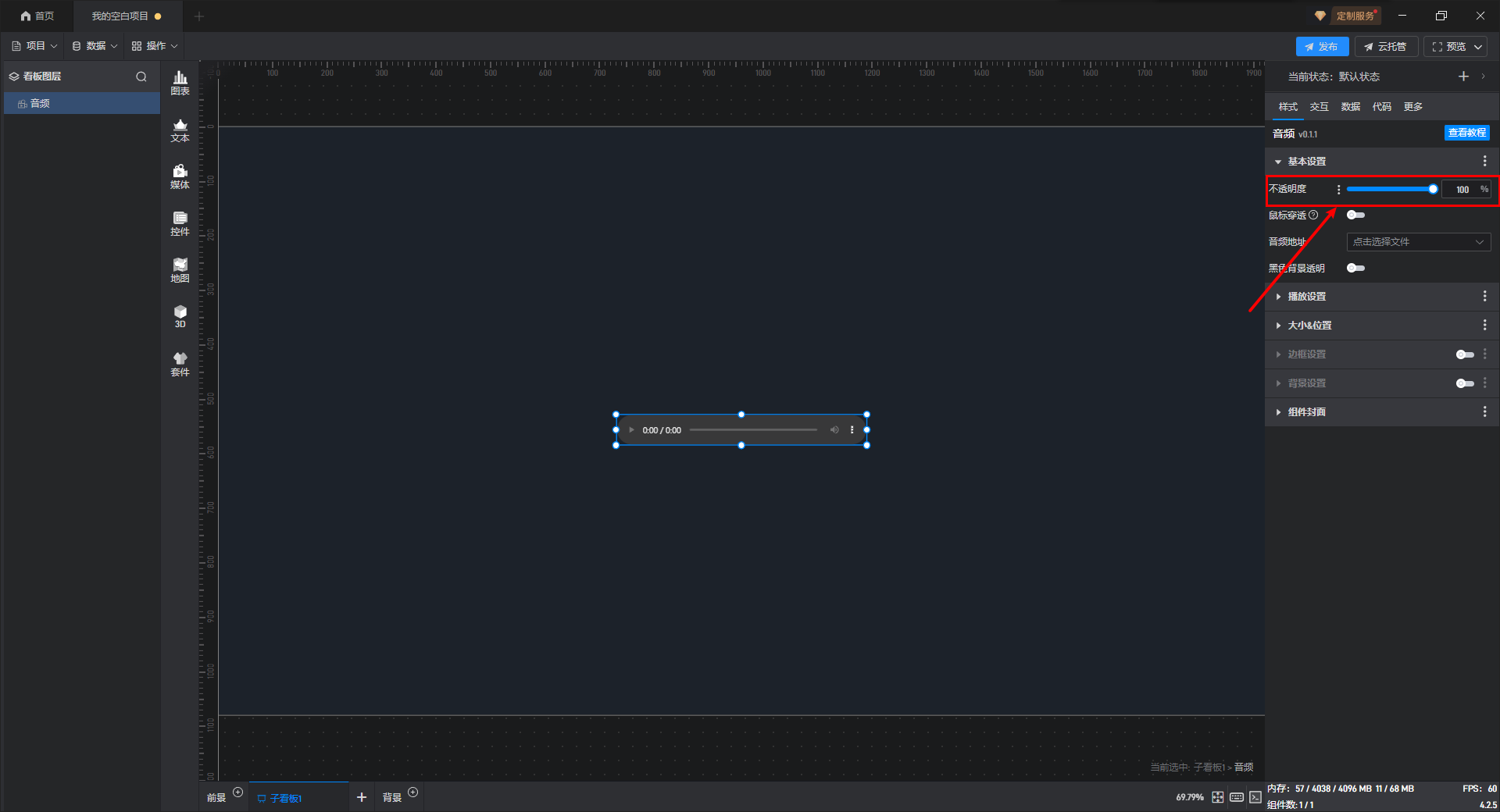 | 鼠标穿透 | 开启后所有鼠标操作全部会穿透音频到下方组件,音频组件不响应鼠标事件。 | |