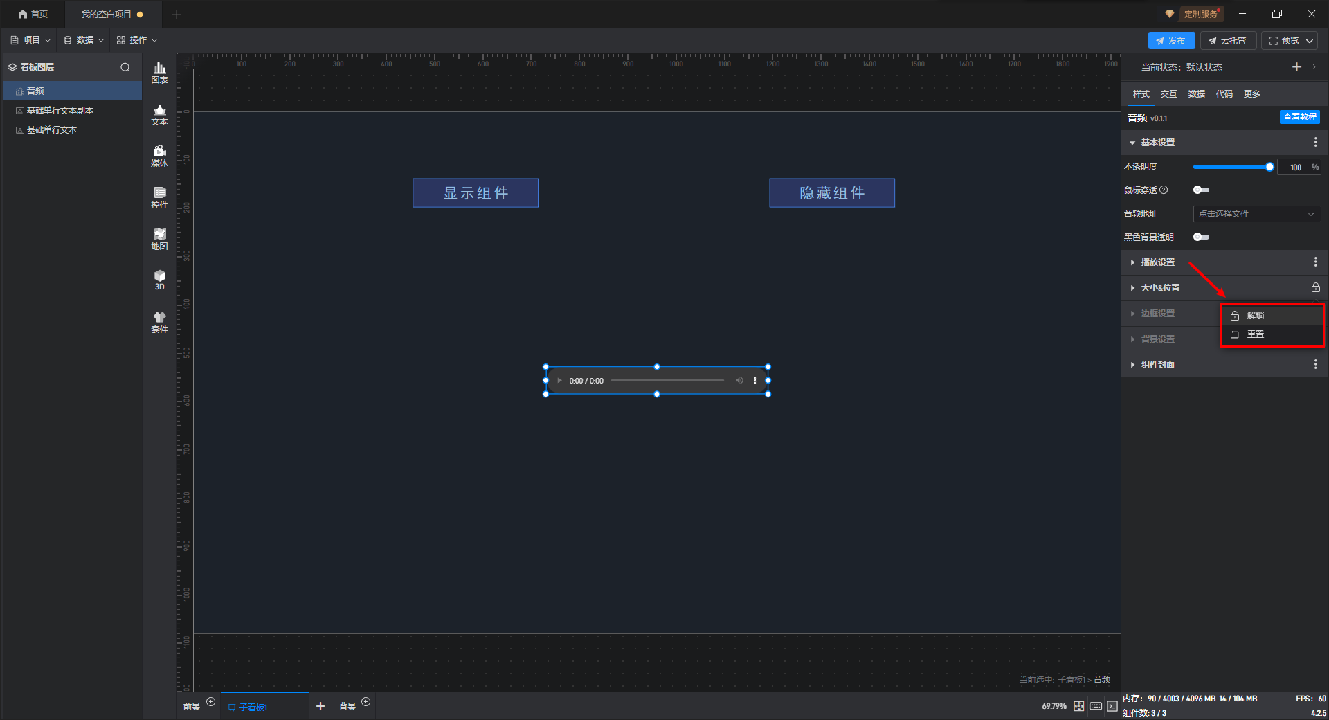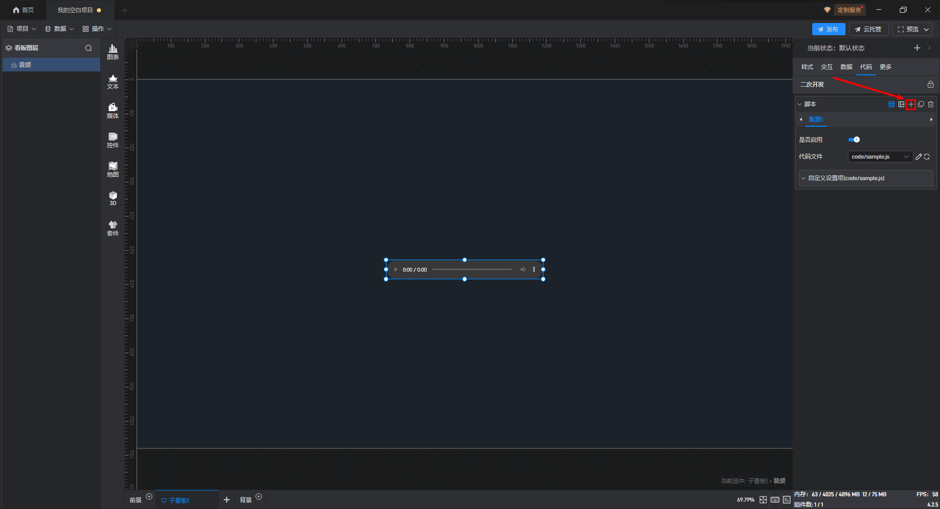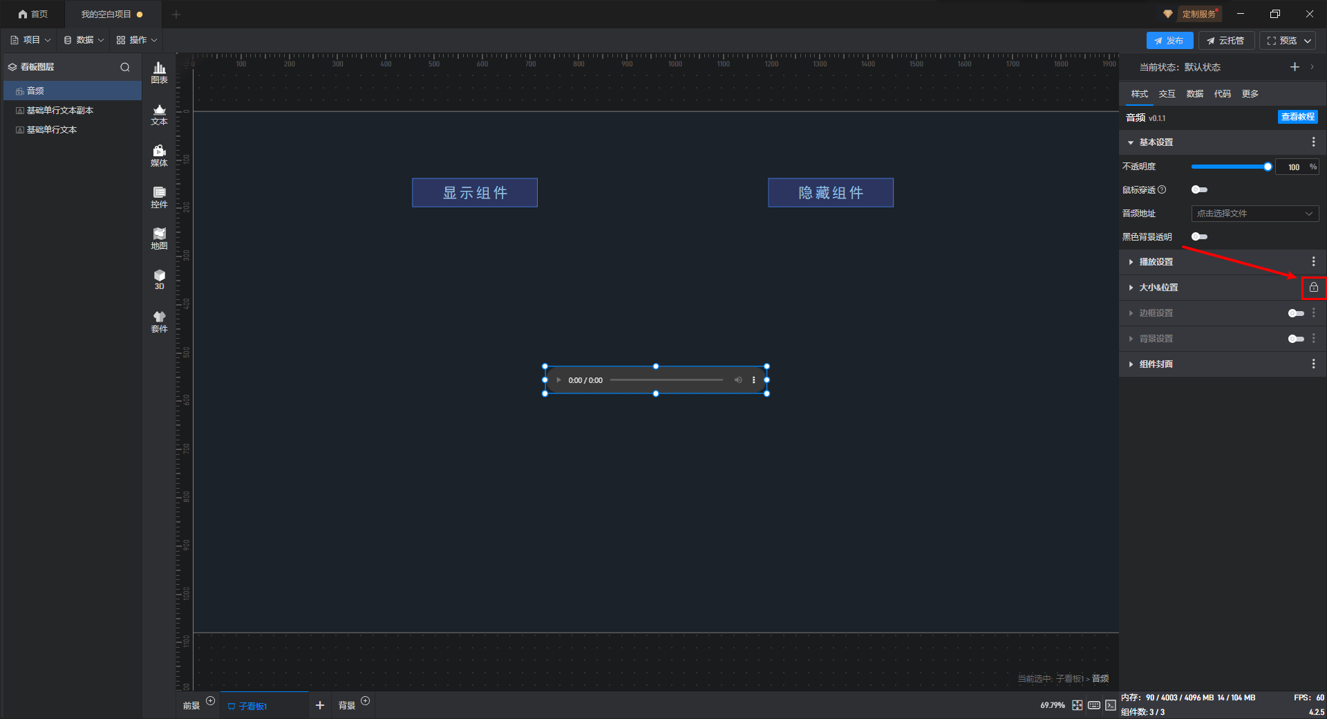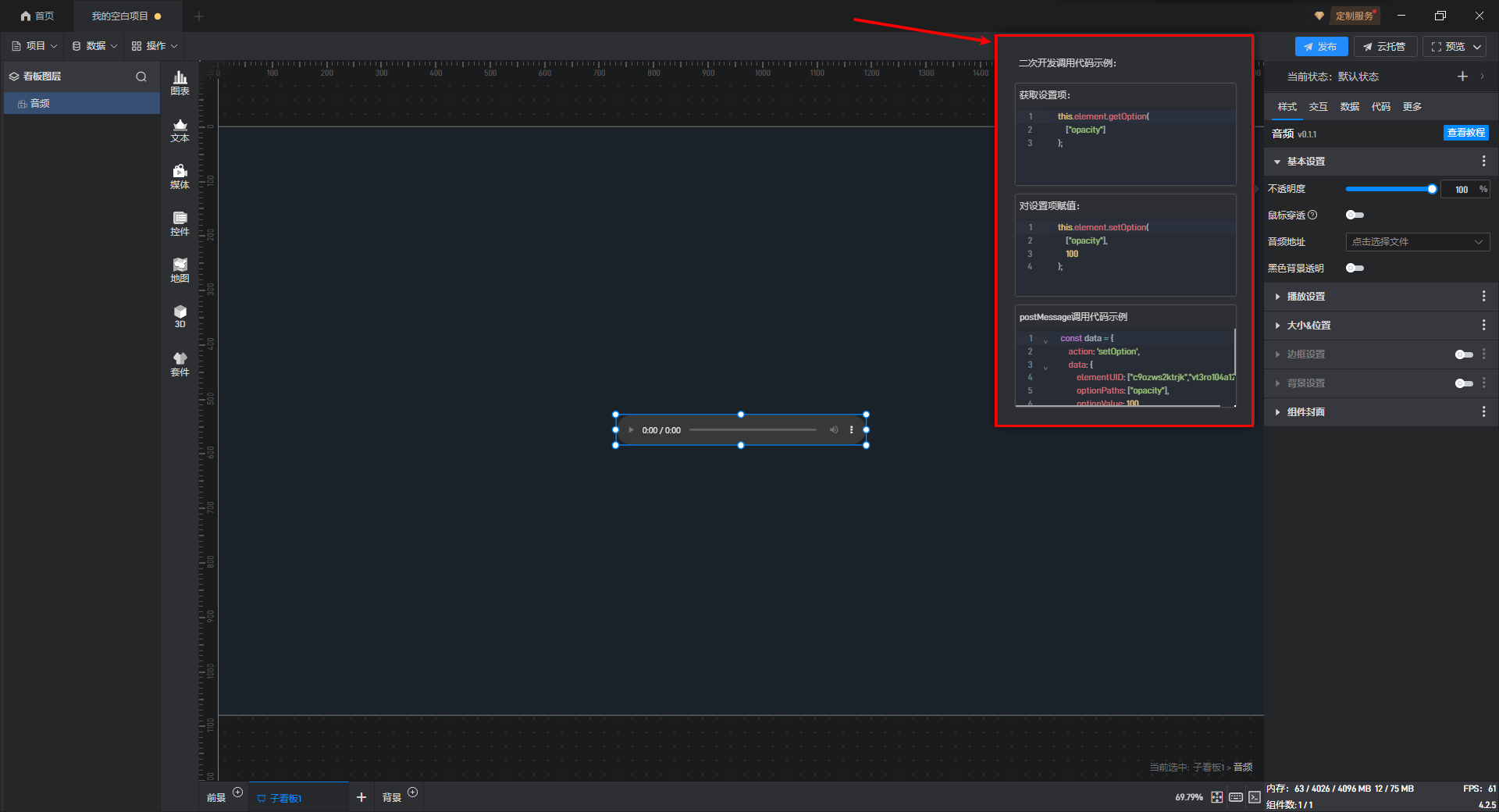 点击选中组件,将鼠标移动到音频地址设置项上,可以看到右侧出现三个点按钮。