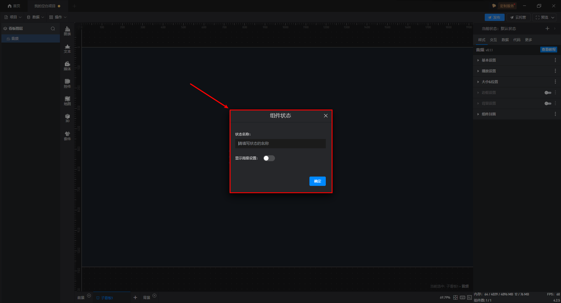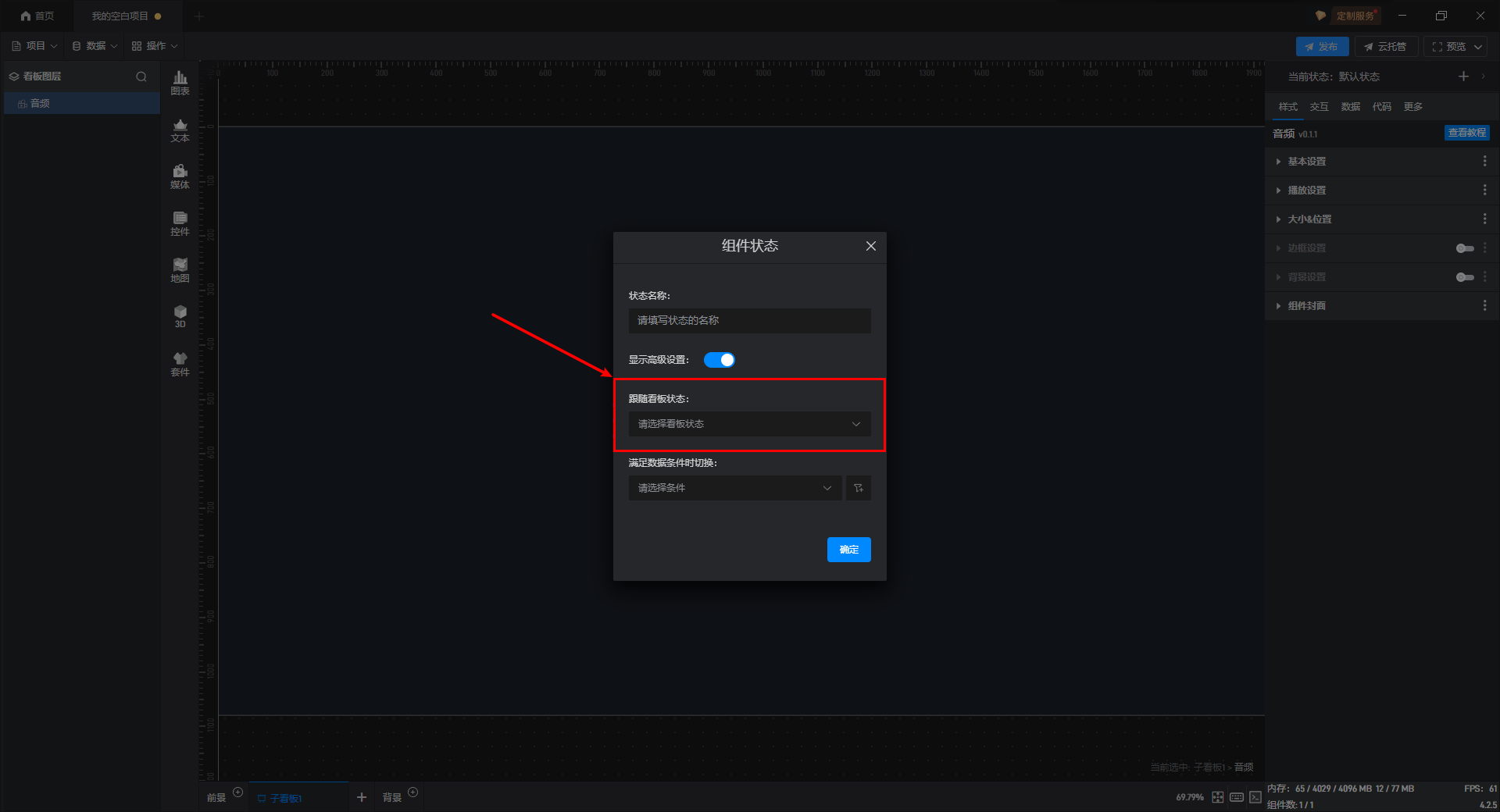 多状态主要用于通过数据条件或是点击交互(通常是点击其他组件来触发本组件的状态切换)来切换组件设置项的场景,这里的设置项包括组件的样式、交互、数据和代码。