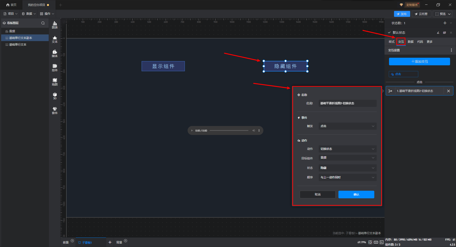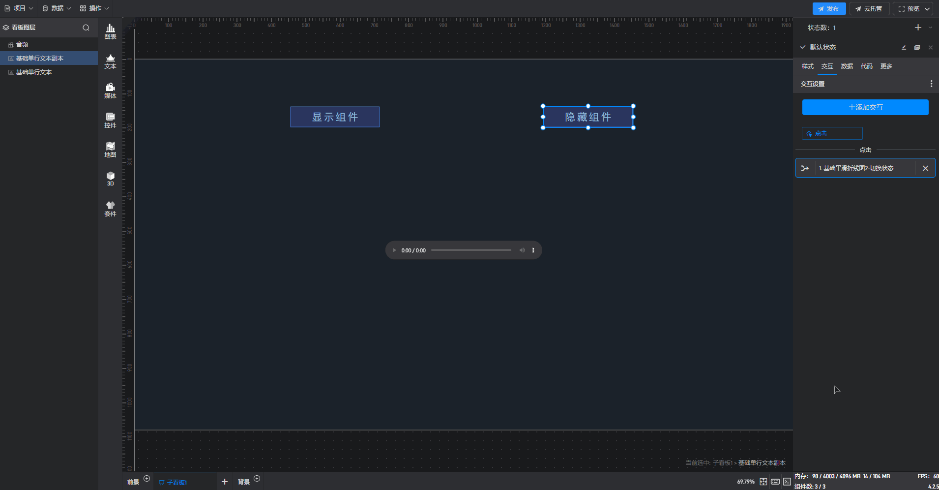 给隐藏按钮组件添加一个交互,点击后切换数据变化组件到隐藏状态。
