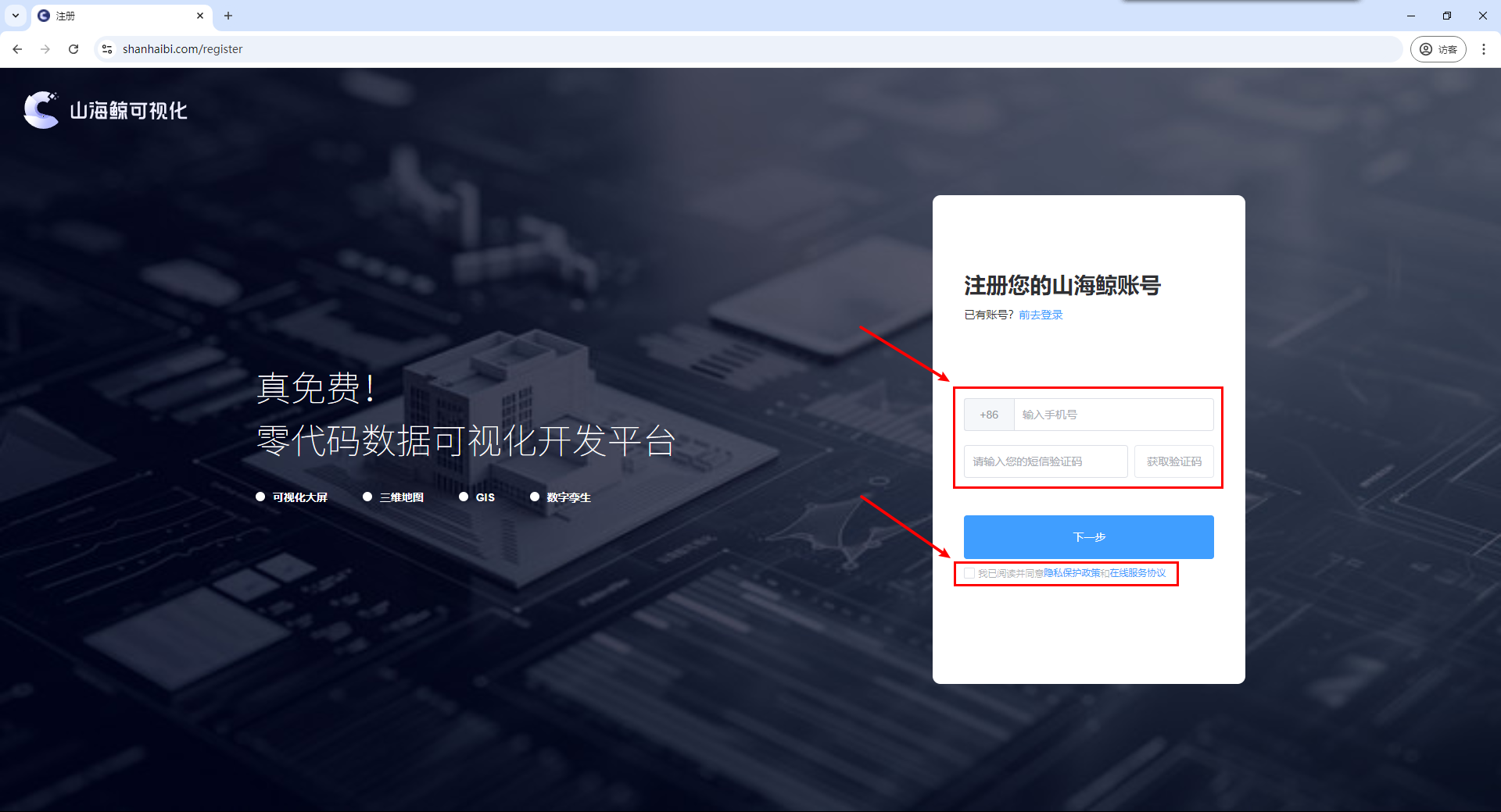 下面我们为大家介绍一下,山海鲸可视化网络公开版的登录步骤: