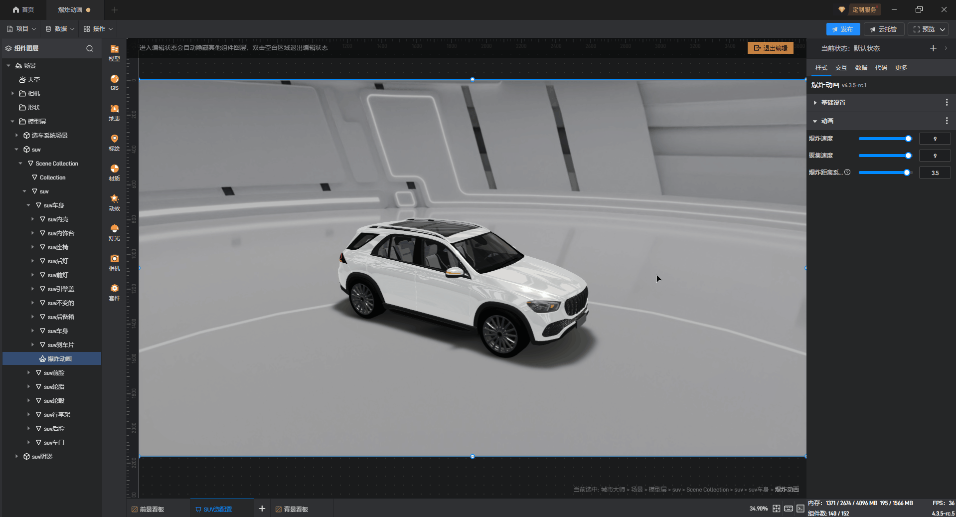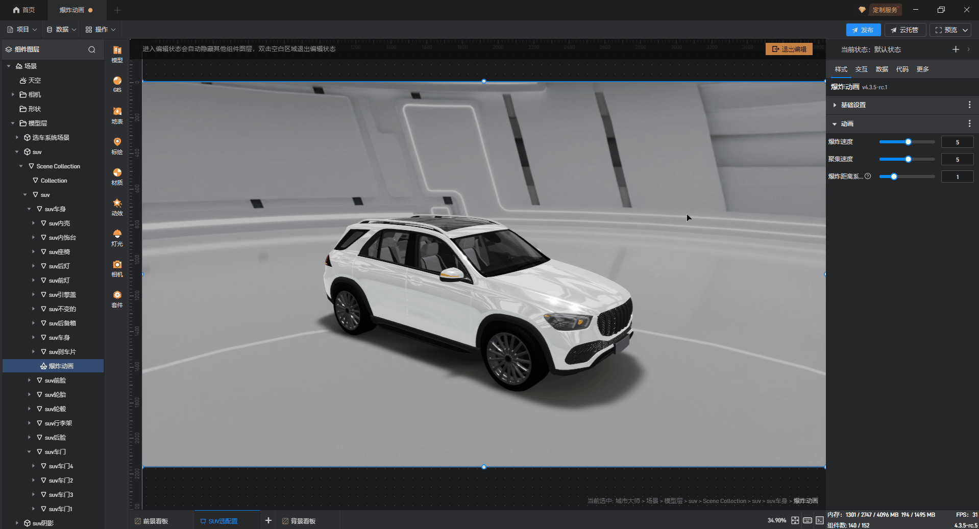 添加完成之后,在左侧组件图层对应模型组下会多出一个“爆炸动画”的图层。