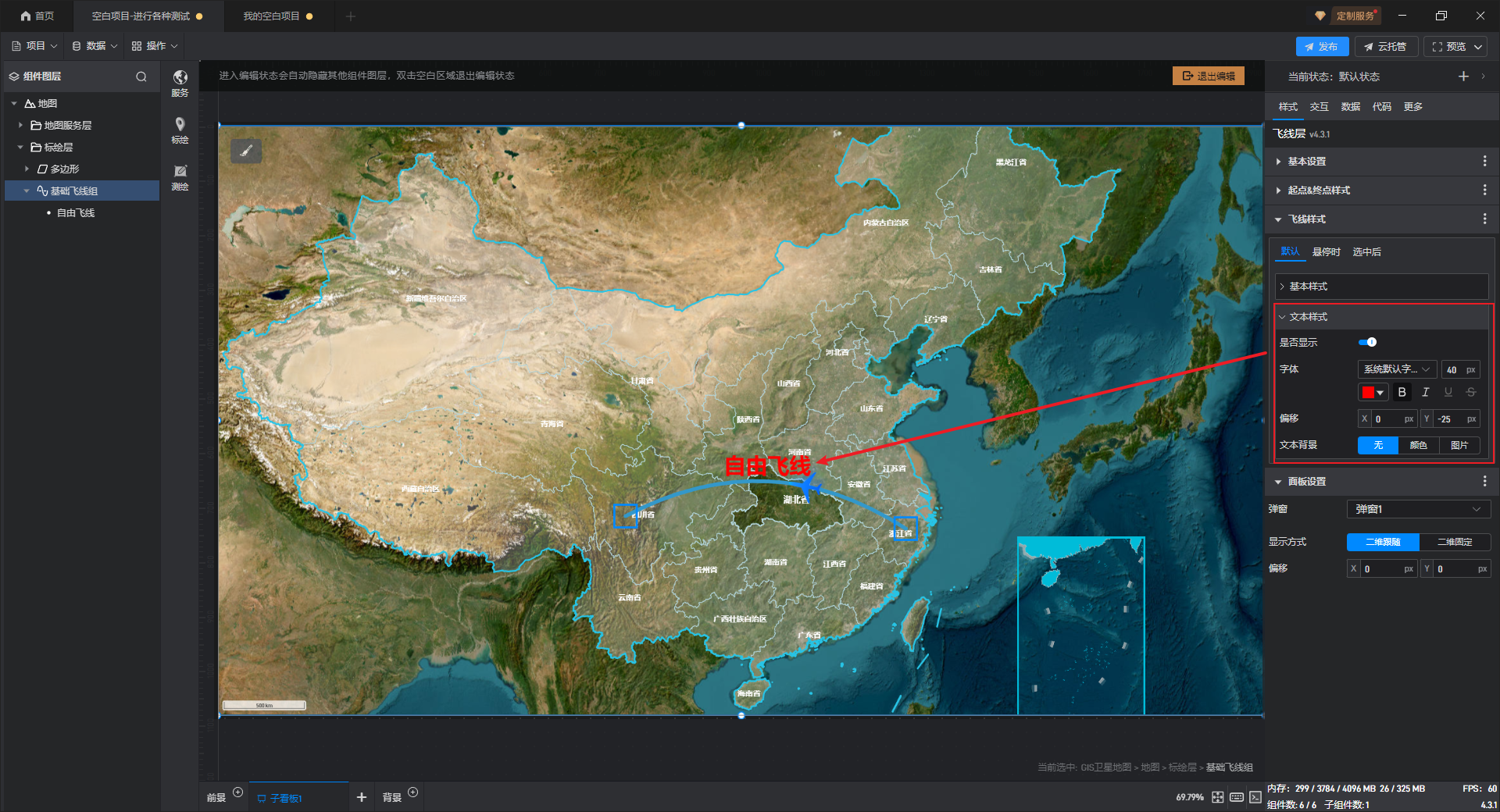 | 偏移 | 自定义设置飞线文本的偏移值,X 和 Y 方向的默认值都为“0px”。 |