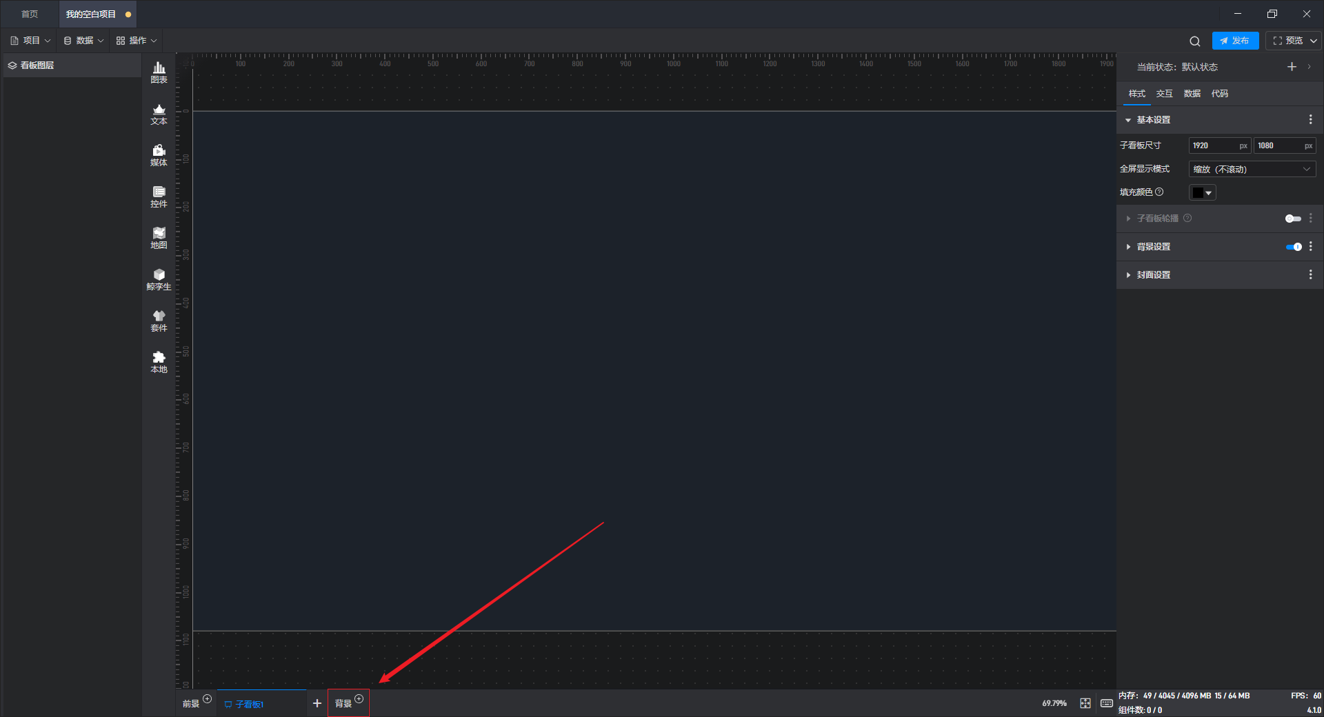 在山海鲸可视化编辑界面,可以通过点击界面下方的按钮创建背景看板。