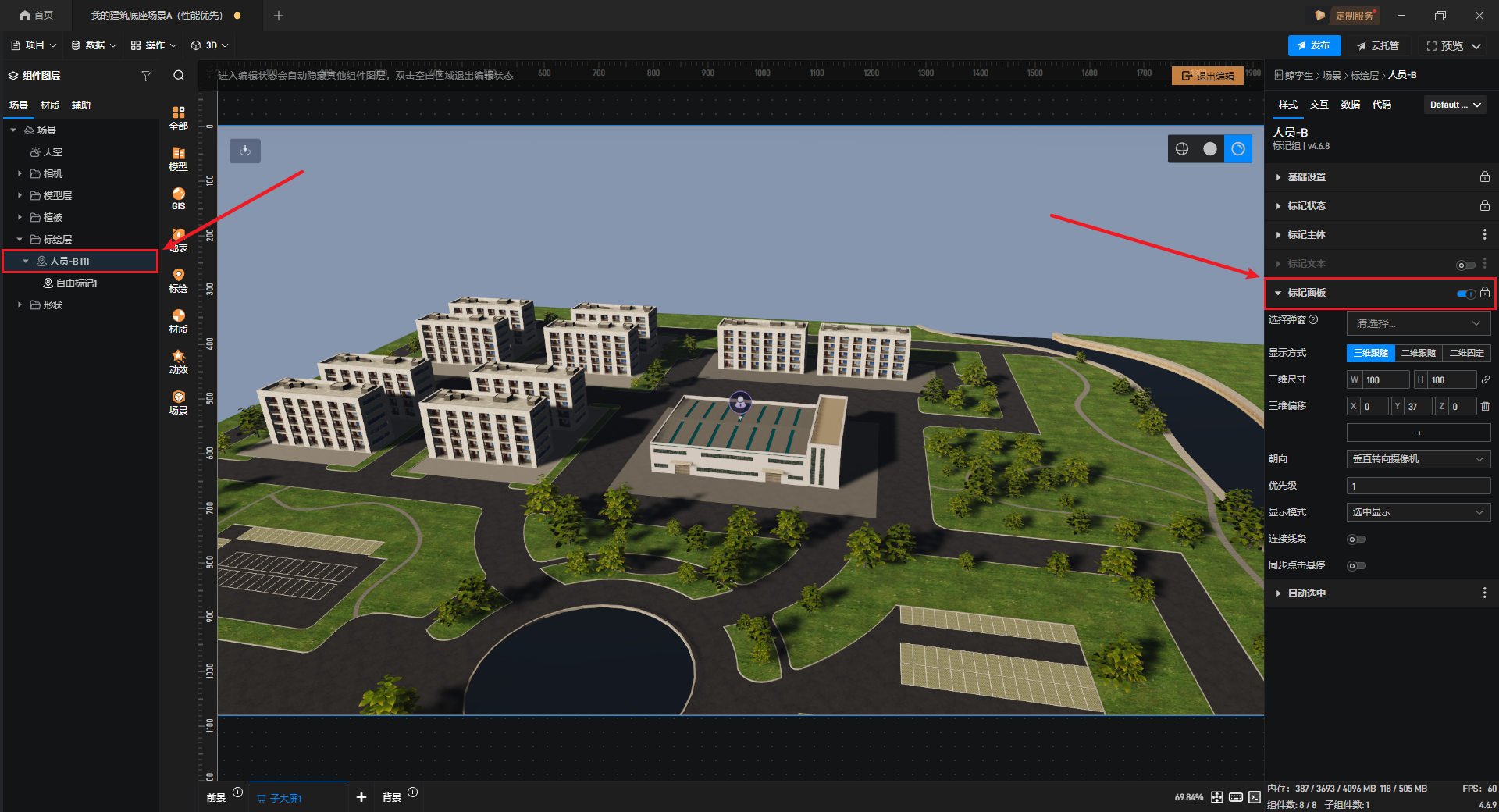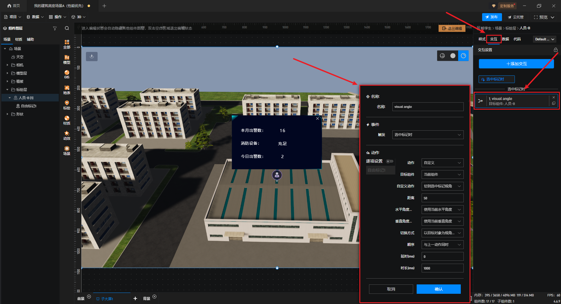 添加的部分标记点会自带点击后切换视角的交互设置,我们可以手动进行删除或修改。