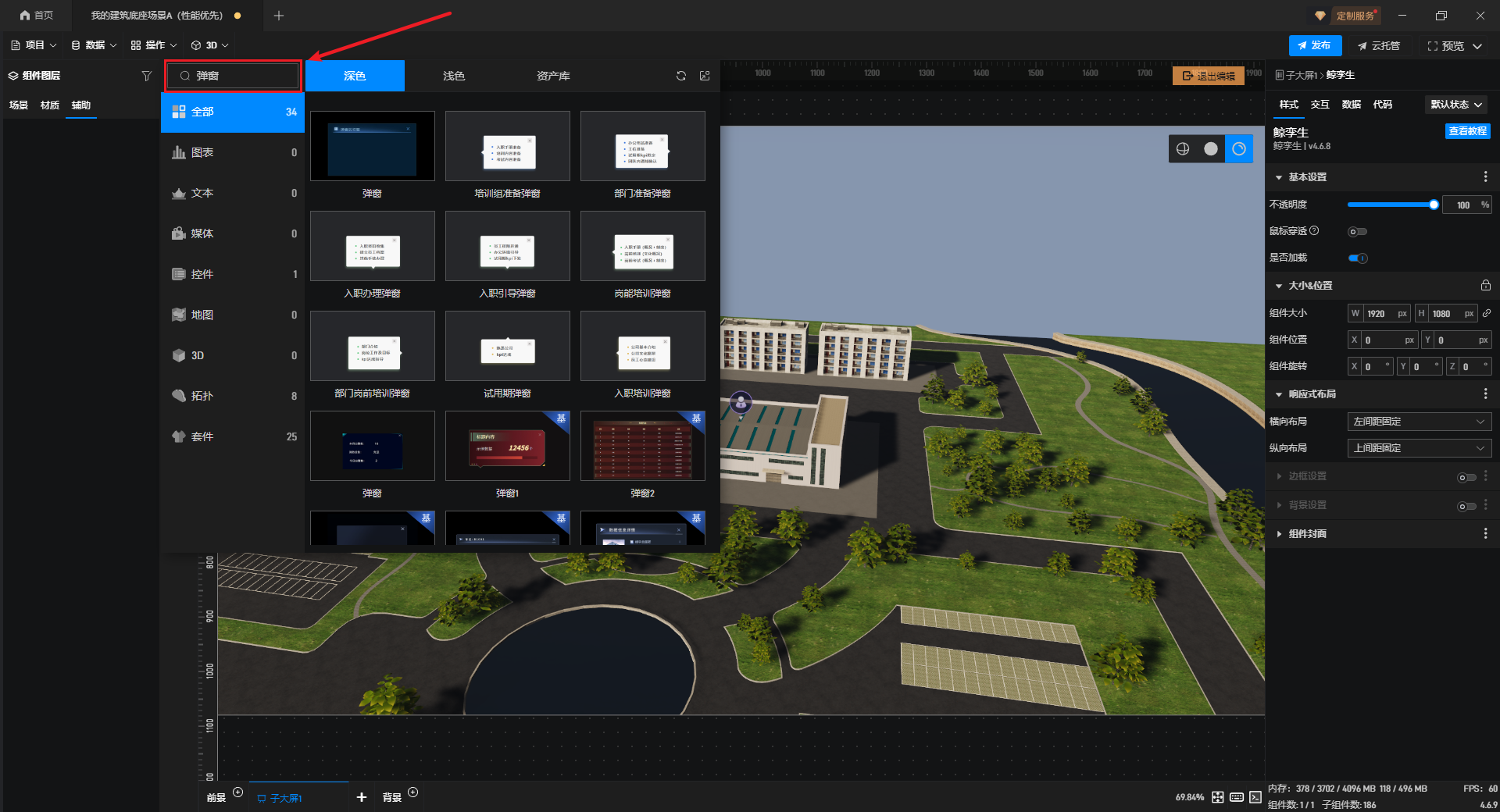 我们也可以在左上方搜索“弹窗”,选择更多种类的弹窗样式。