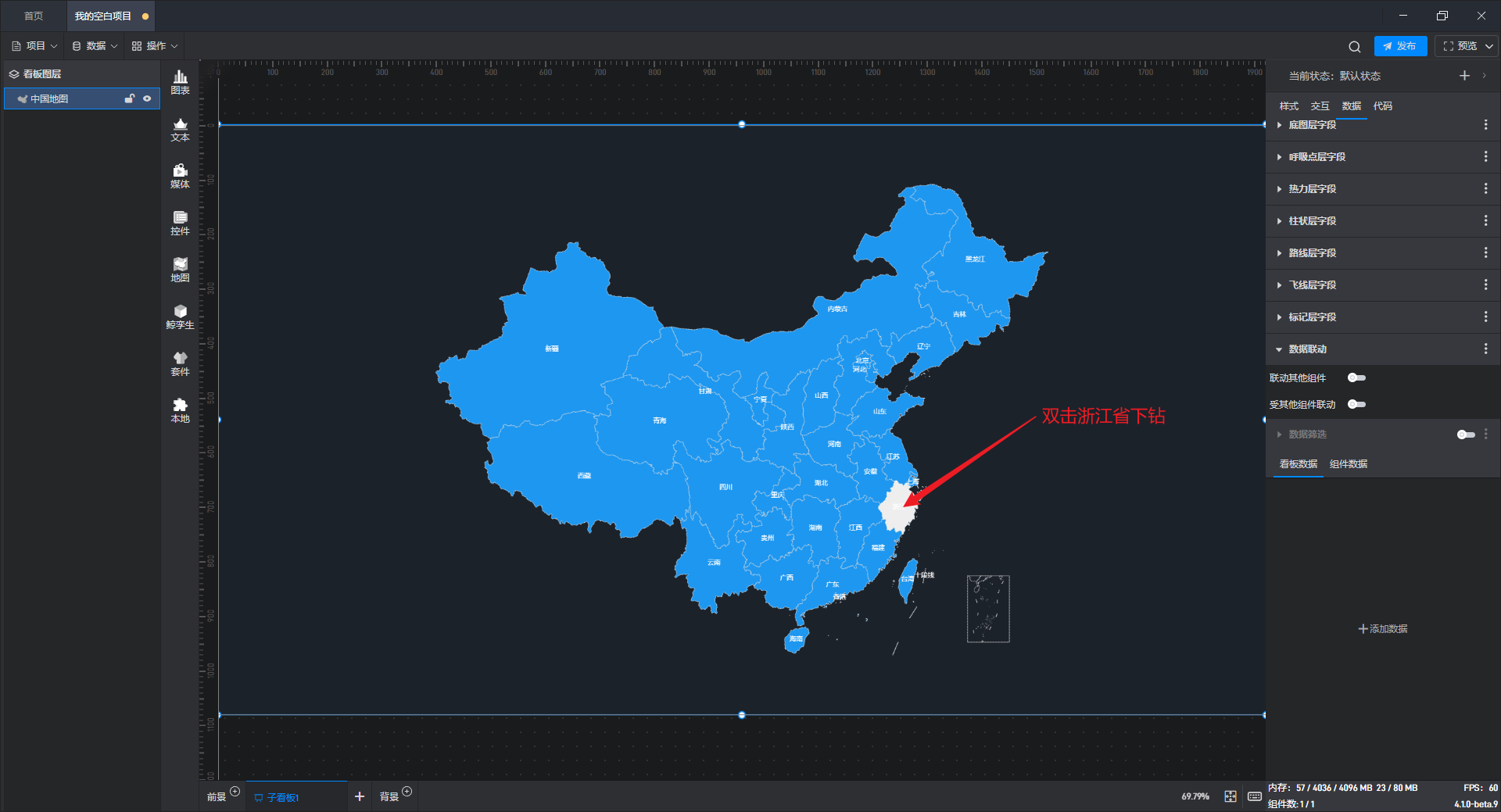 在中国地图组件的教程中,我们介绍了地图组件的详细设置,本文主要介绍地图组件的数据联动和下钻功能。