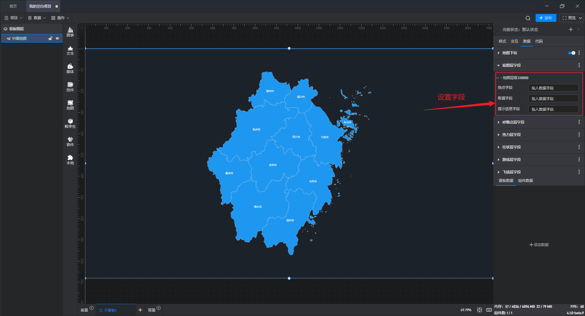 在地图下钻过程中,每一级地图都需要单独进行字段和属性设置,否则该级地图将无法显示数据和对应的样式。