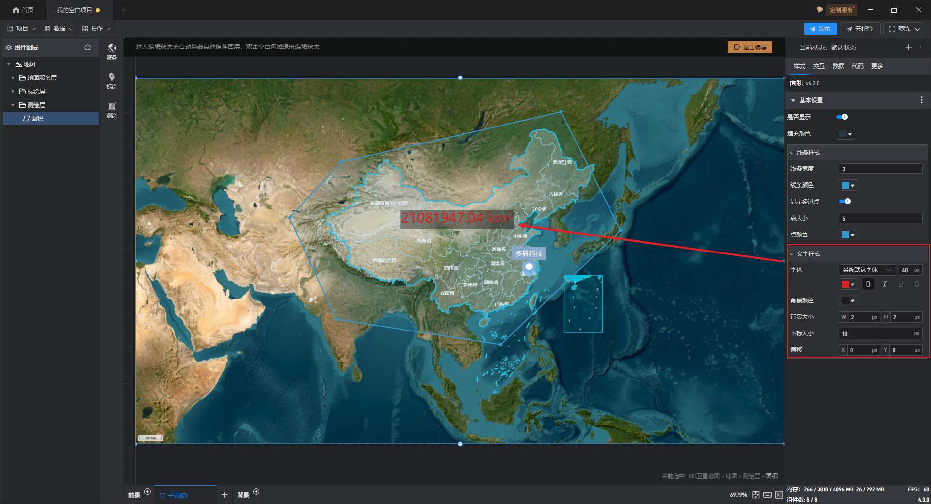 面积** 文字样式**,如下图所示: