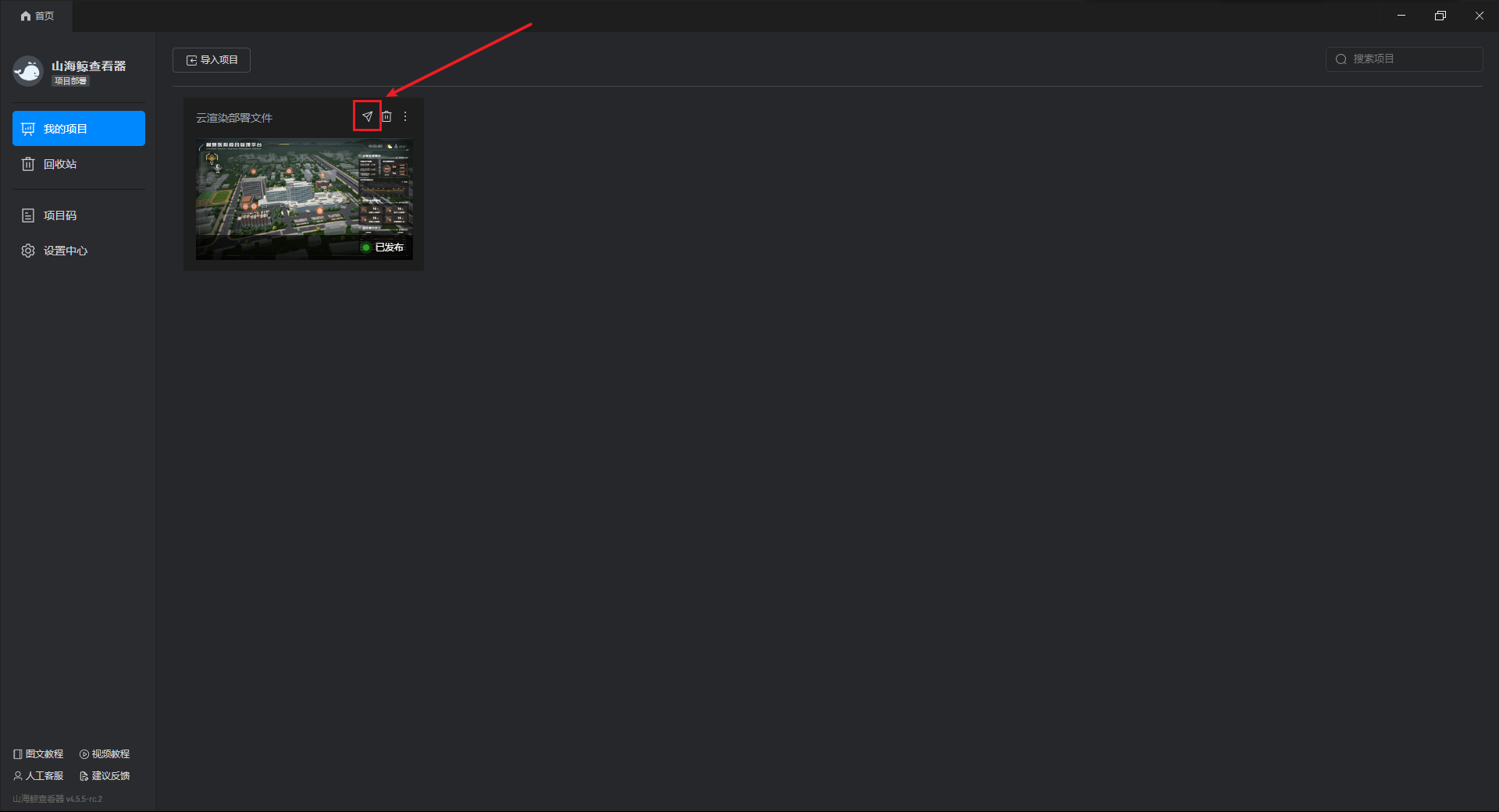 打开山海鲸查看器,对需要进行云渲染的项目进行发布设置。