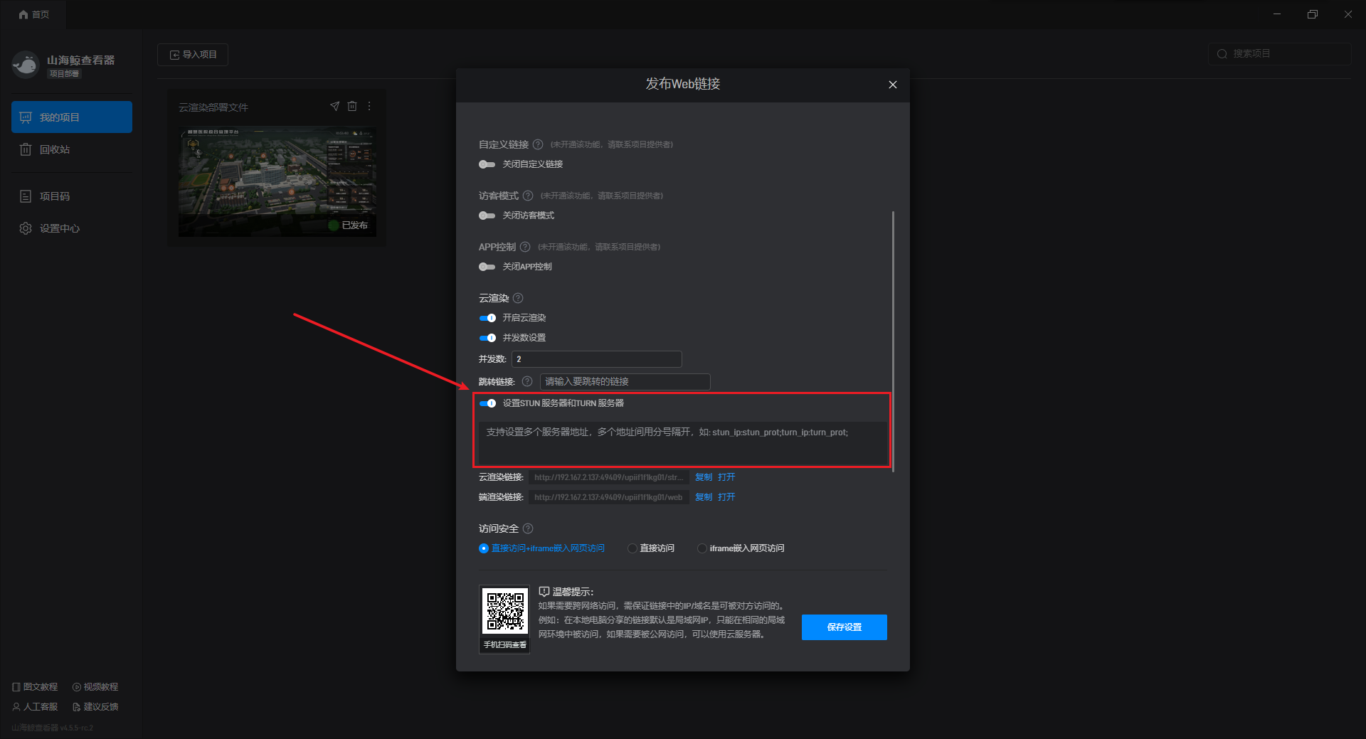 开启“设置 STUN 服务器和 TURN 服务器”,根据文字提示输入服务器地址。